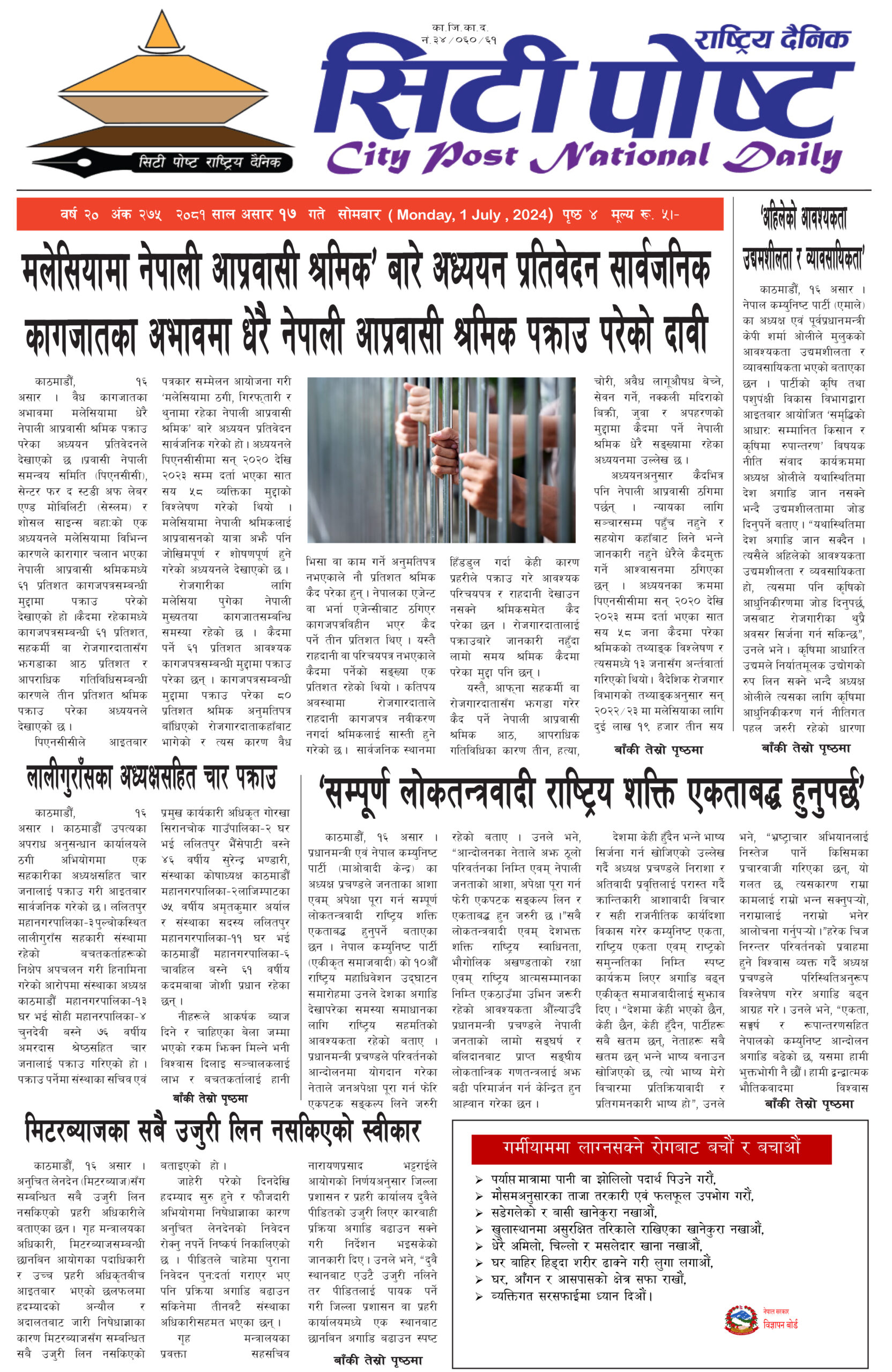 सिटीपोष्ट राष्ट्रिय दैनिक २०८१ असार २४