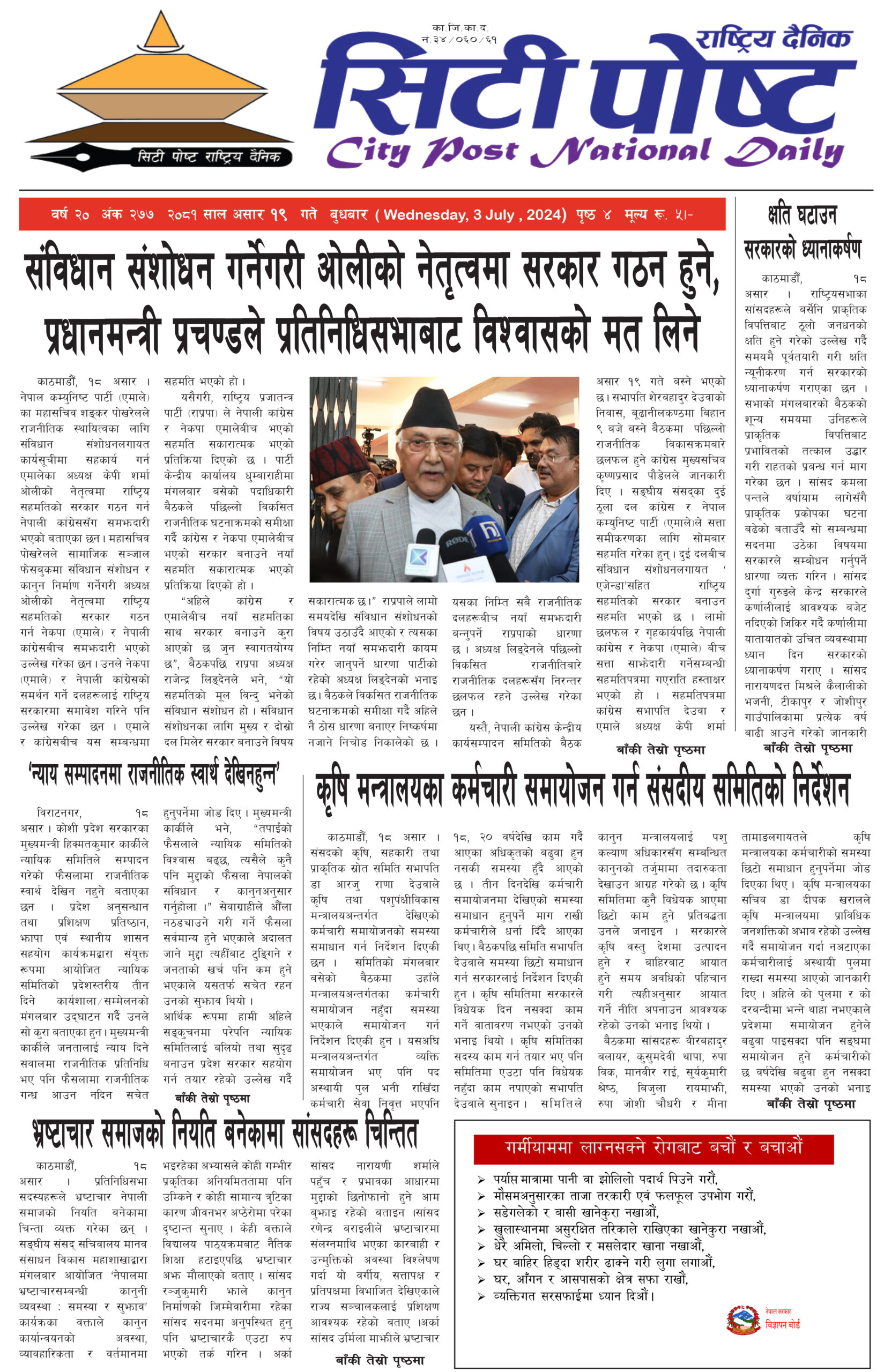 सिटीपोष्ट राष्ट्रिय दैनिक २०८१ असार २६