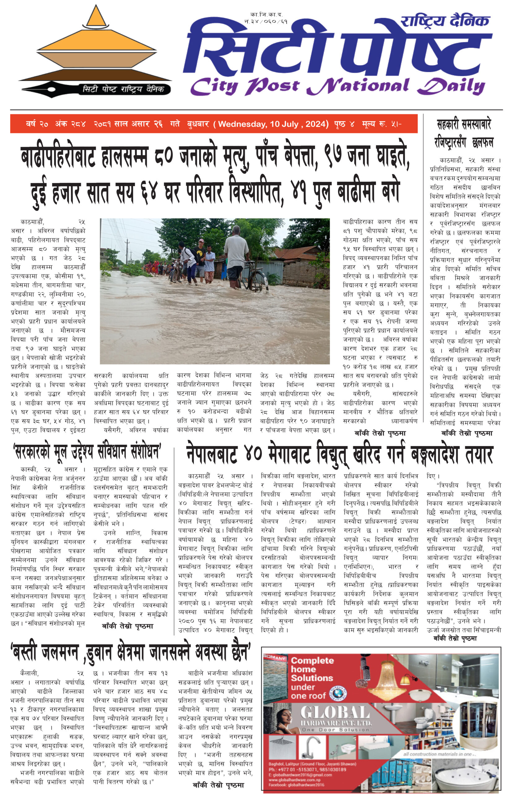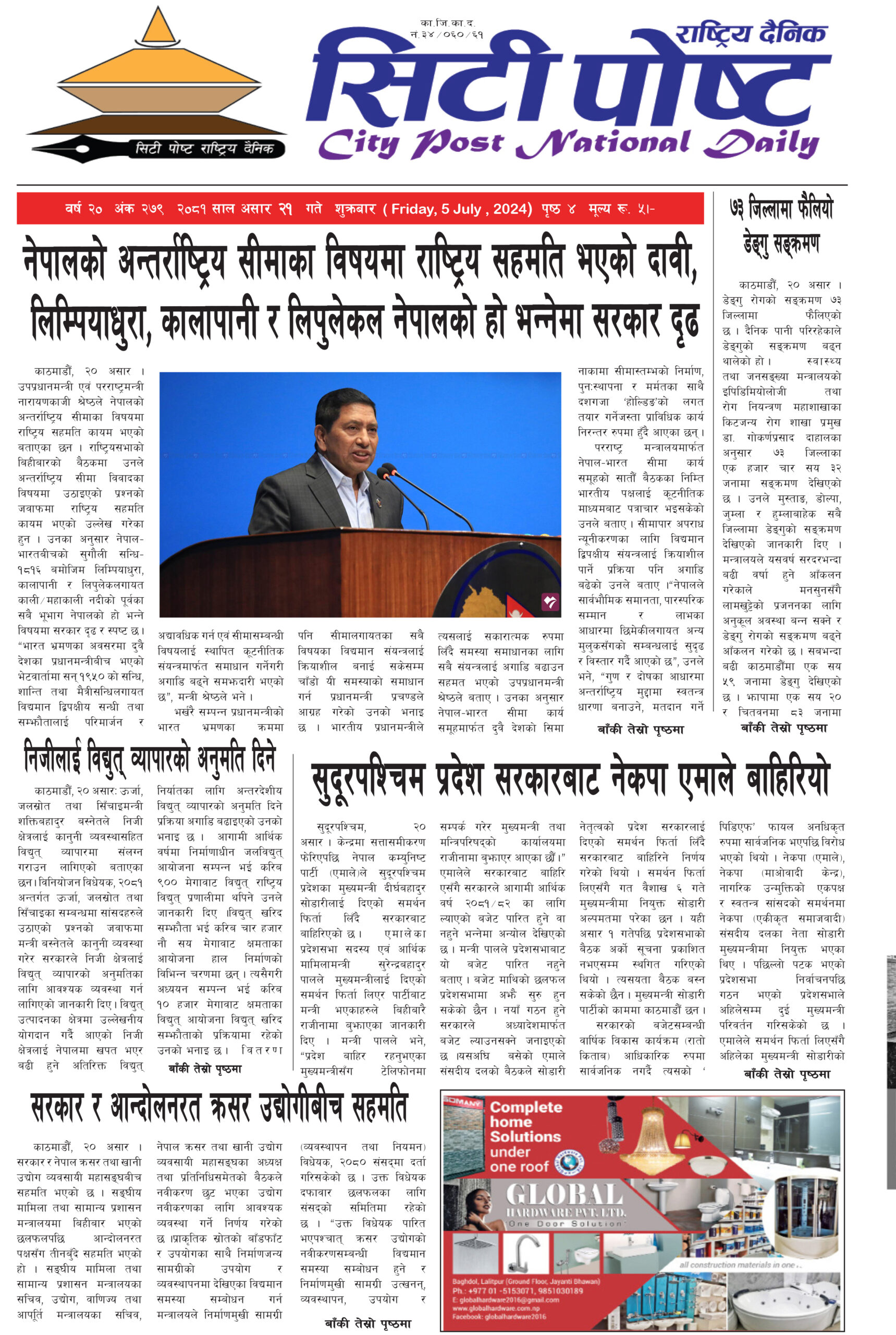 सिटीपोष्ट राष्ट्रिय दैनिक २०८१ असार २०