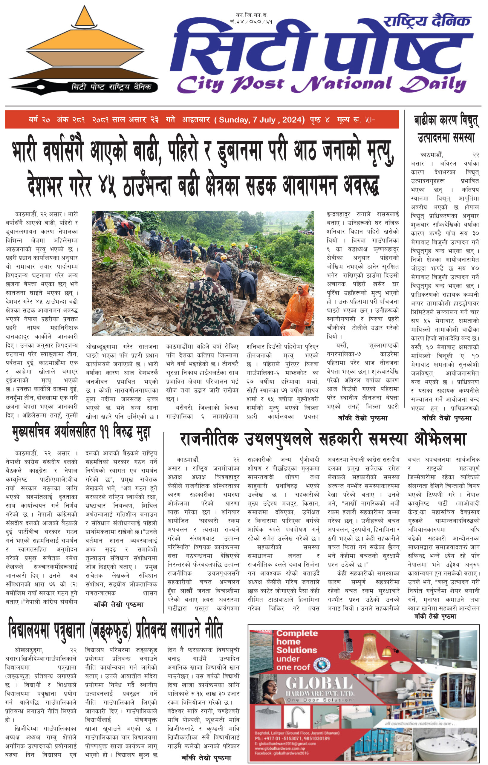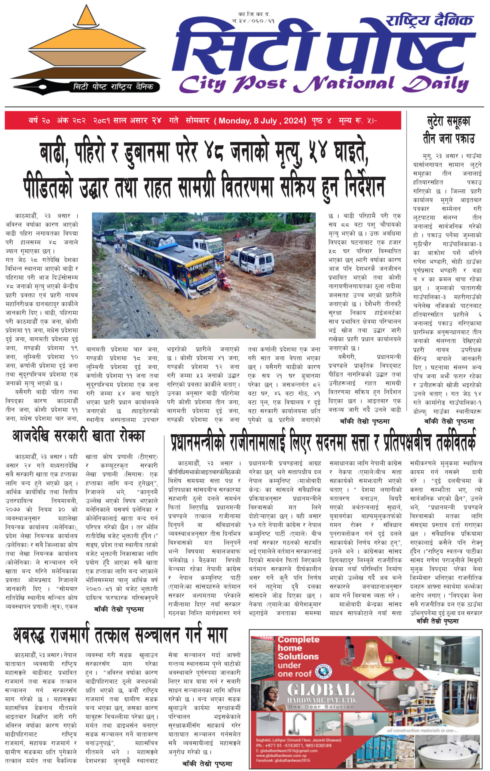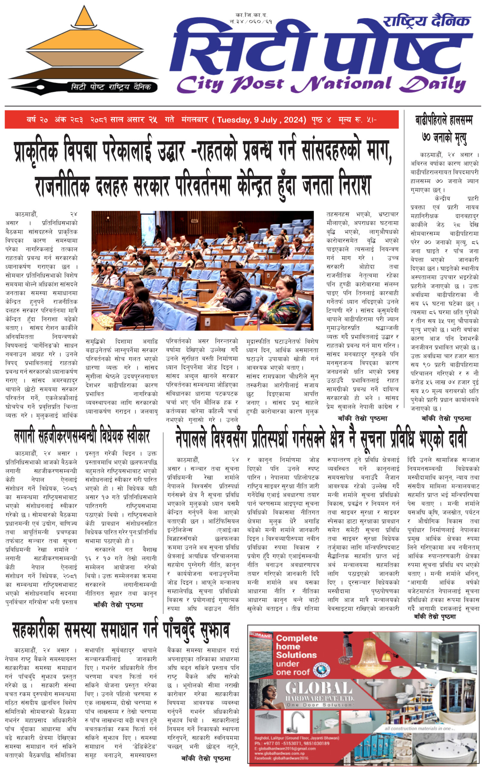 सिटीपोष्ट राष्ट्रिय दैनिक २०८१ असार २३