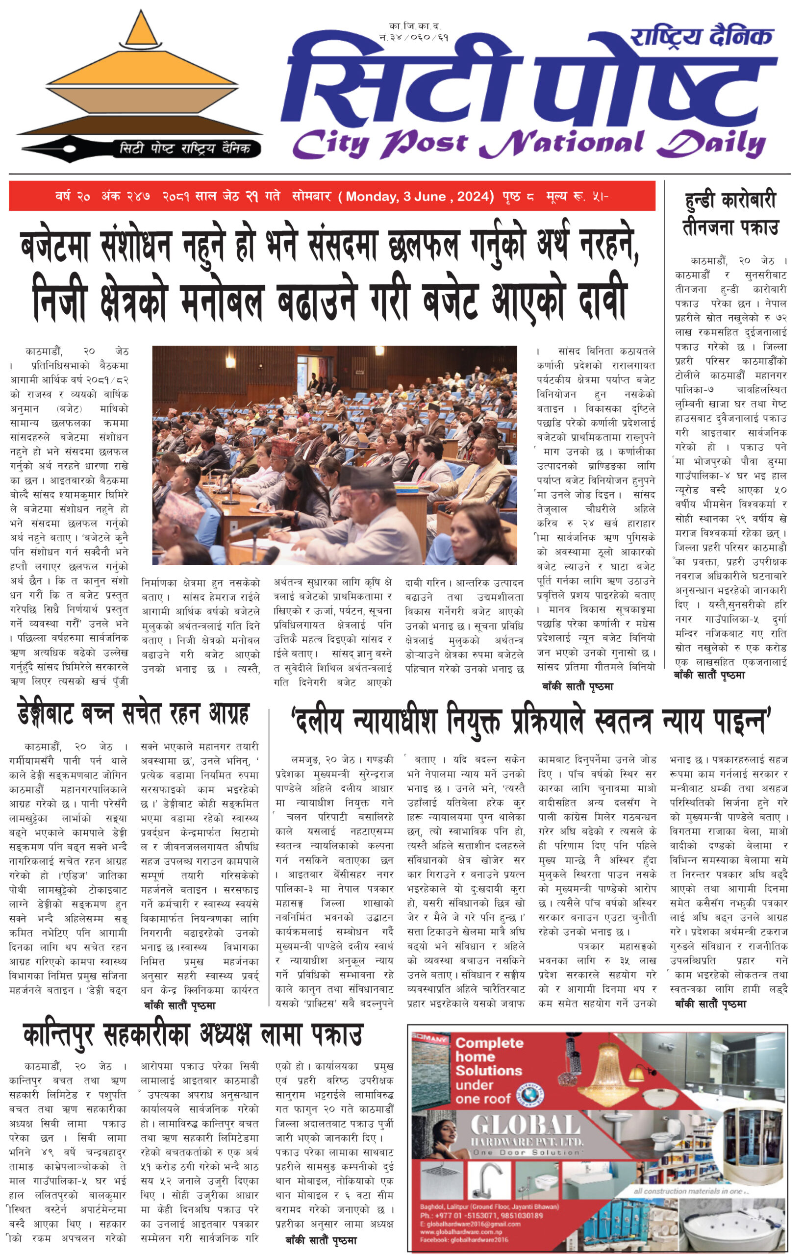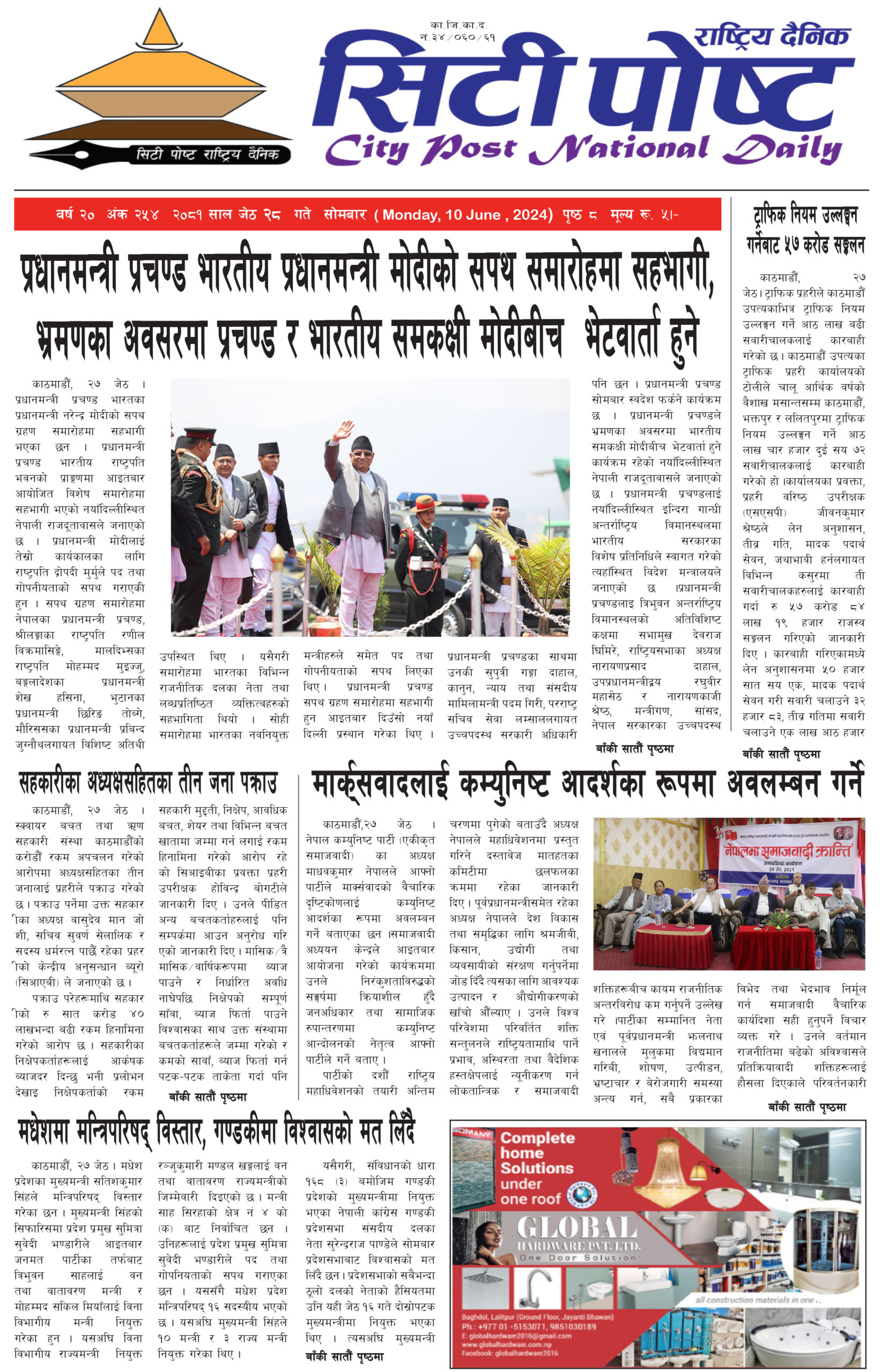 सिटीपोष्ट राष्ट्रिय दैनिक २०८१ जेठ २०