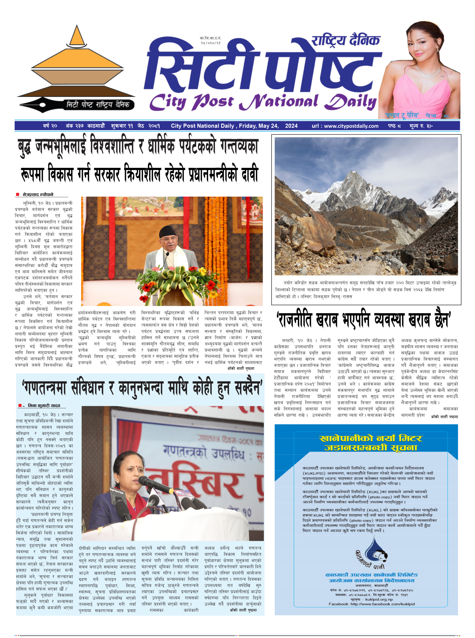 सिटीपोष्ट राष्ट्रिय दैनिक २०८१ जेठ ६