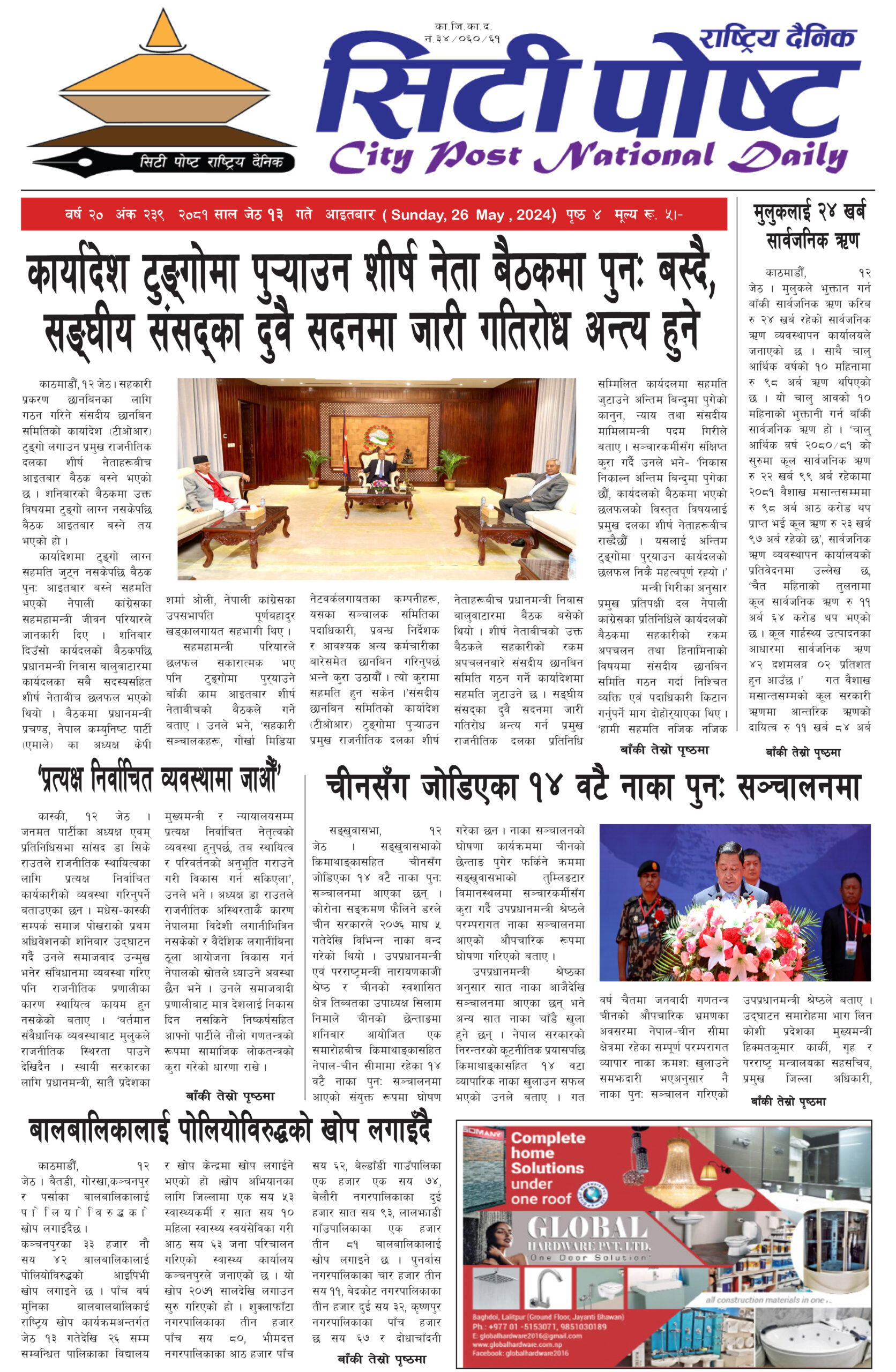 सिटीपोष्ट राष्ट्रिय दैनिक २०८१ जेठ १३