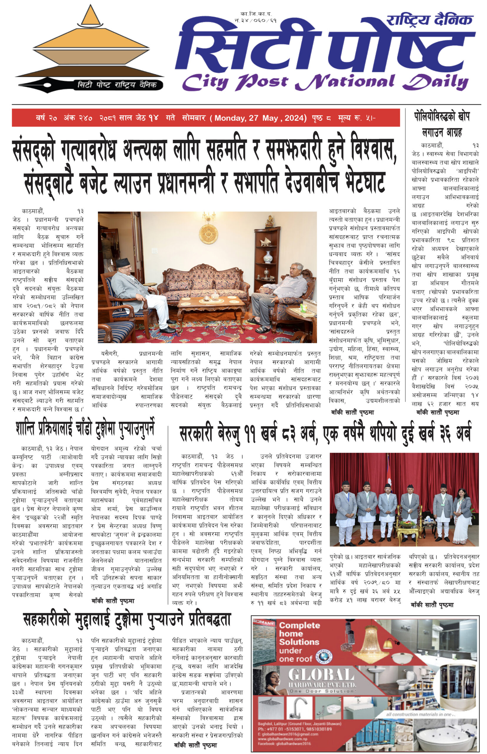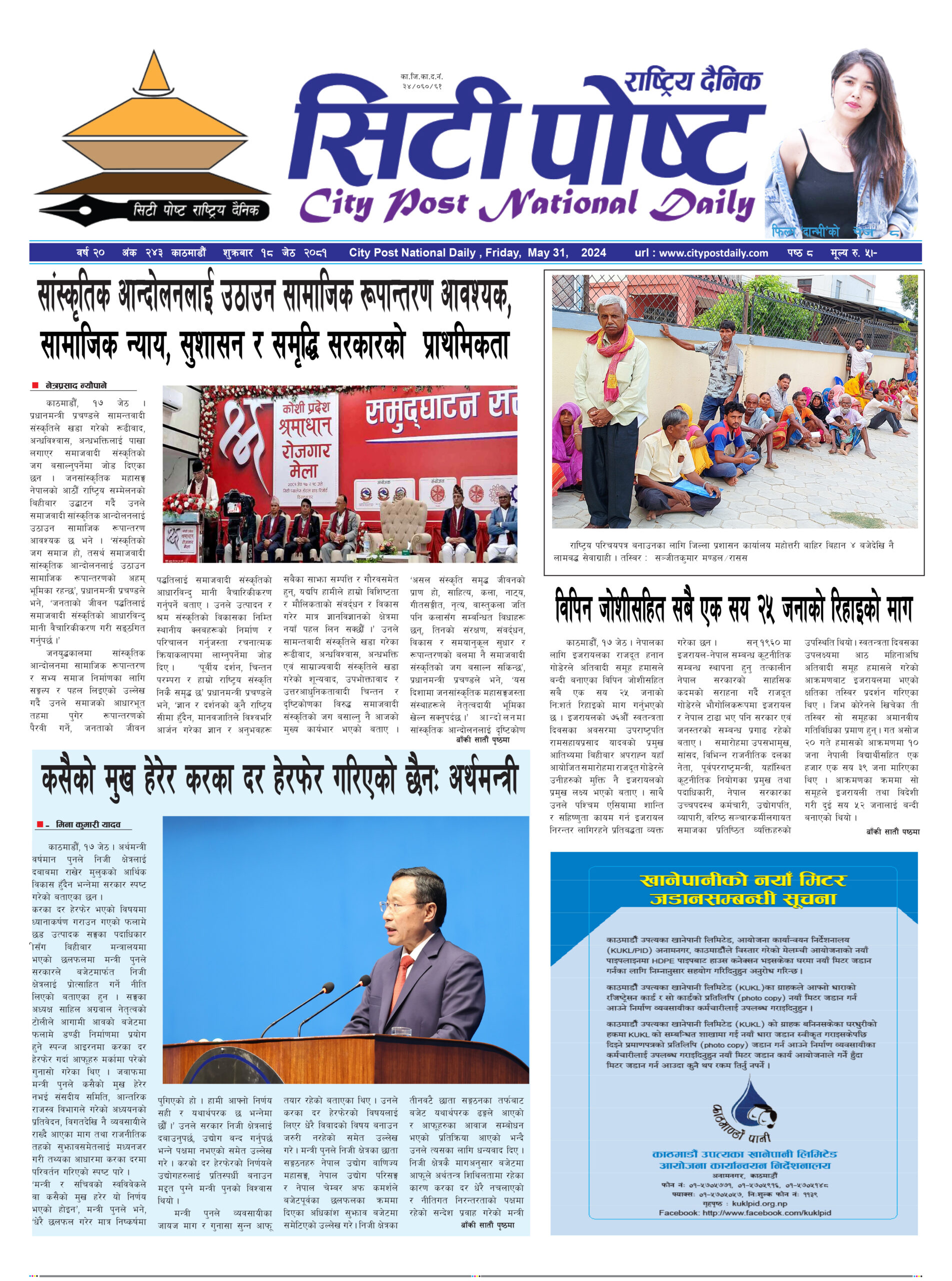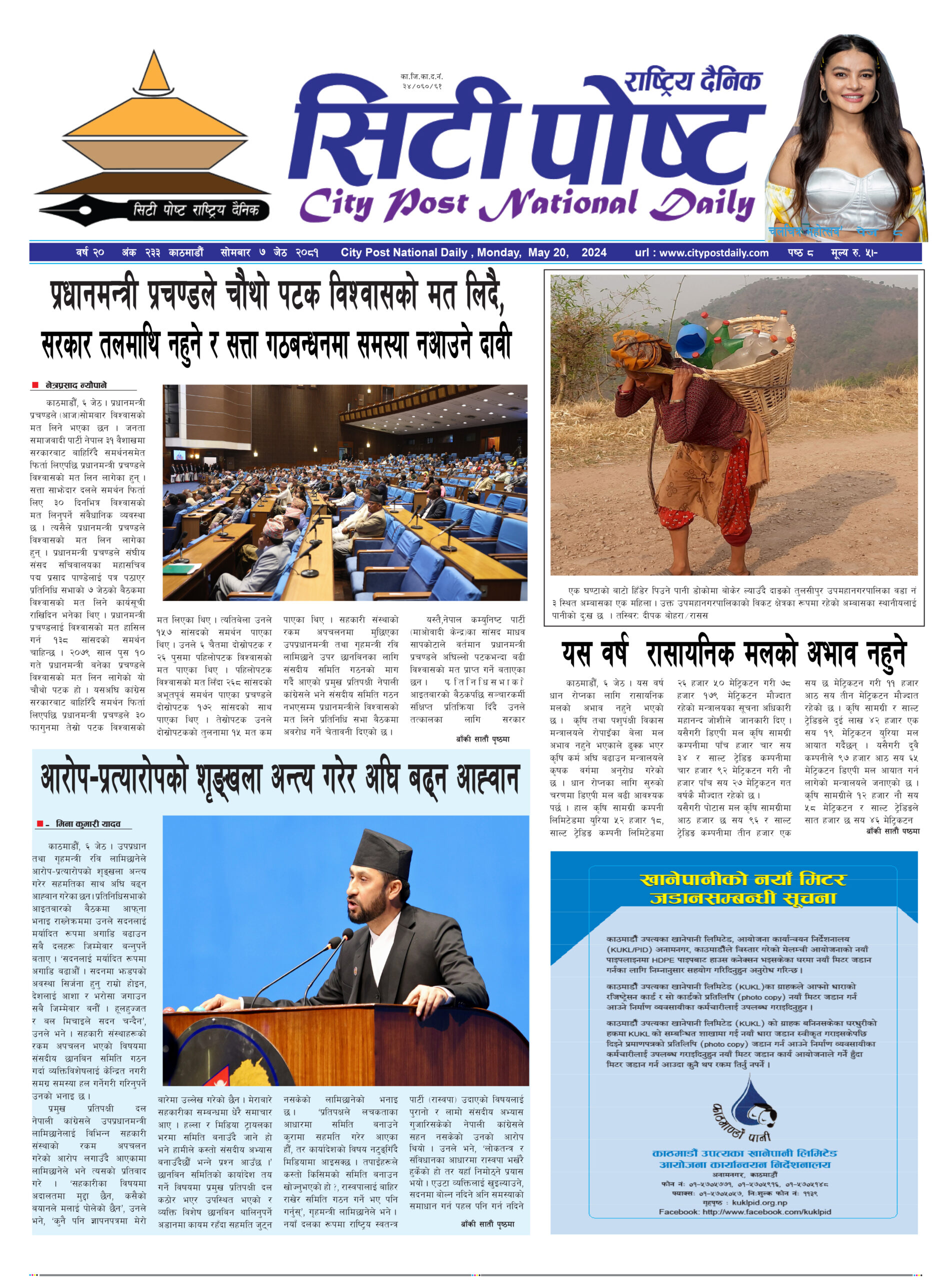 सिटीपोष्ट राष्ट्रिय दैनिक २०८१ जेठ १६