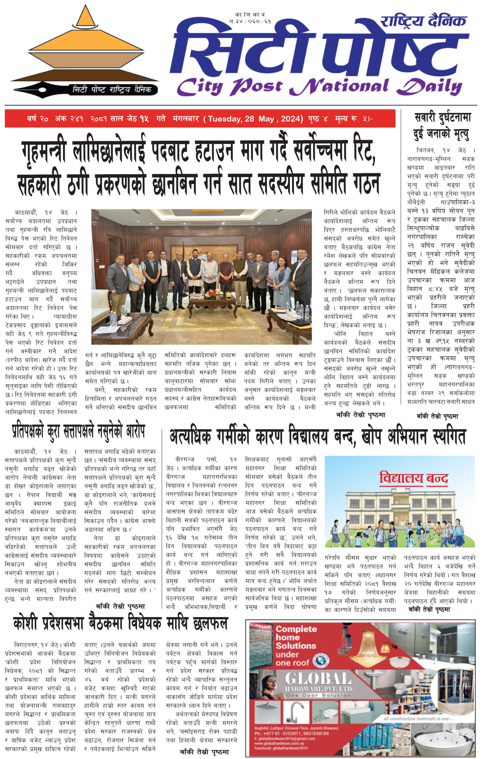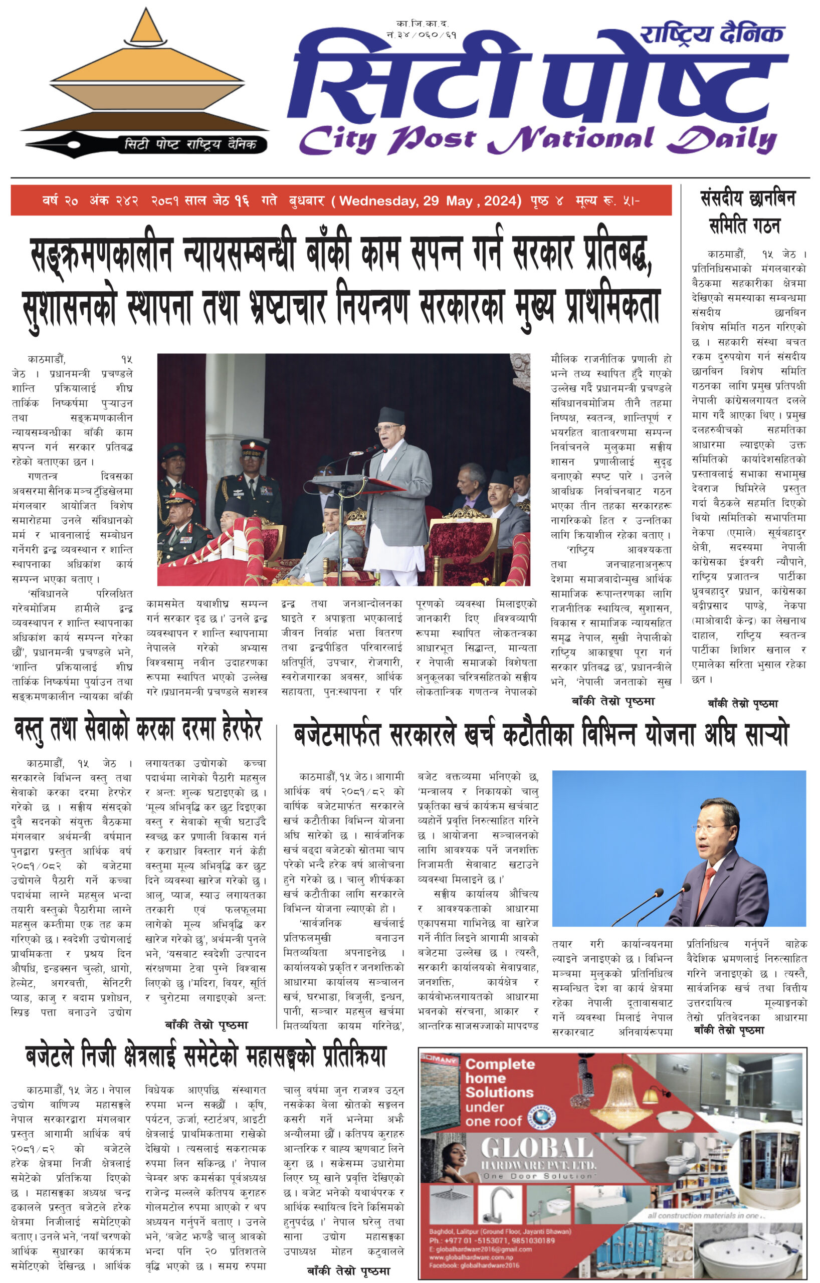 सिटीपोष्ट राष्ट्रिय दैनिक २०८१ जेठ ९