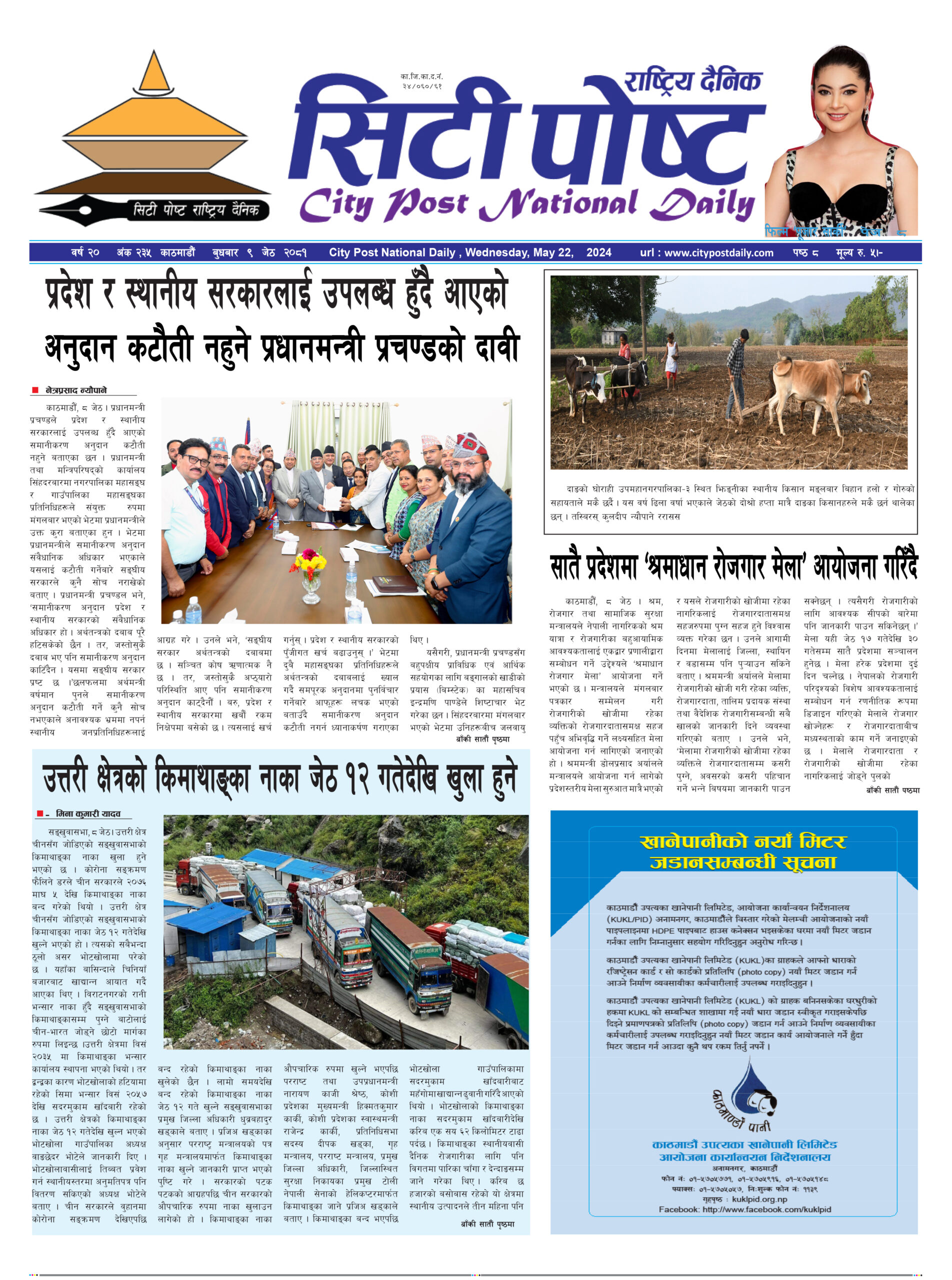 सिटीपोष्ट राष्ट्रिय दैनिक २०८१ जेठ १५