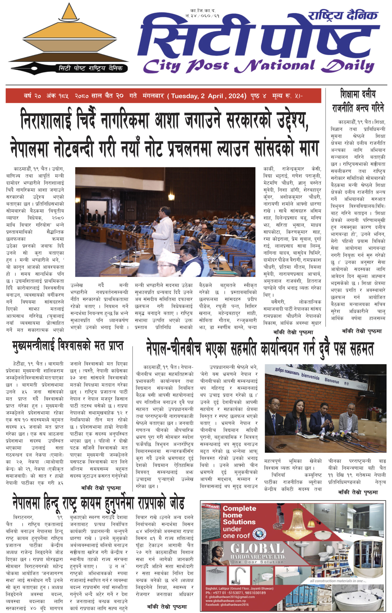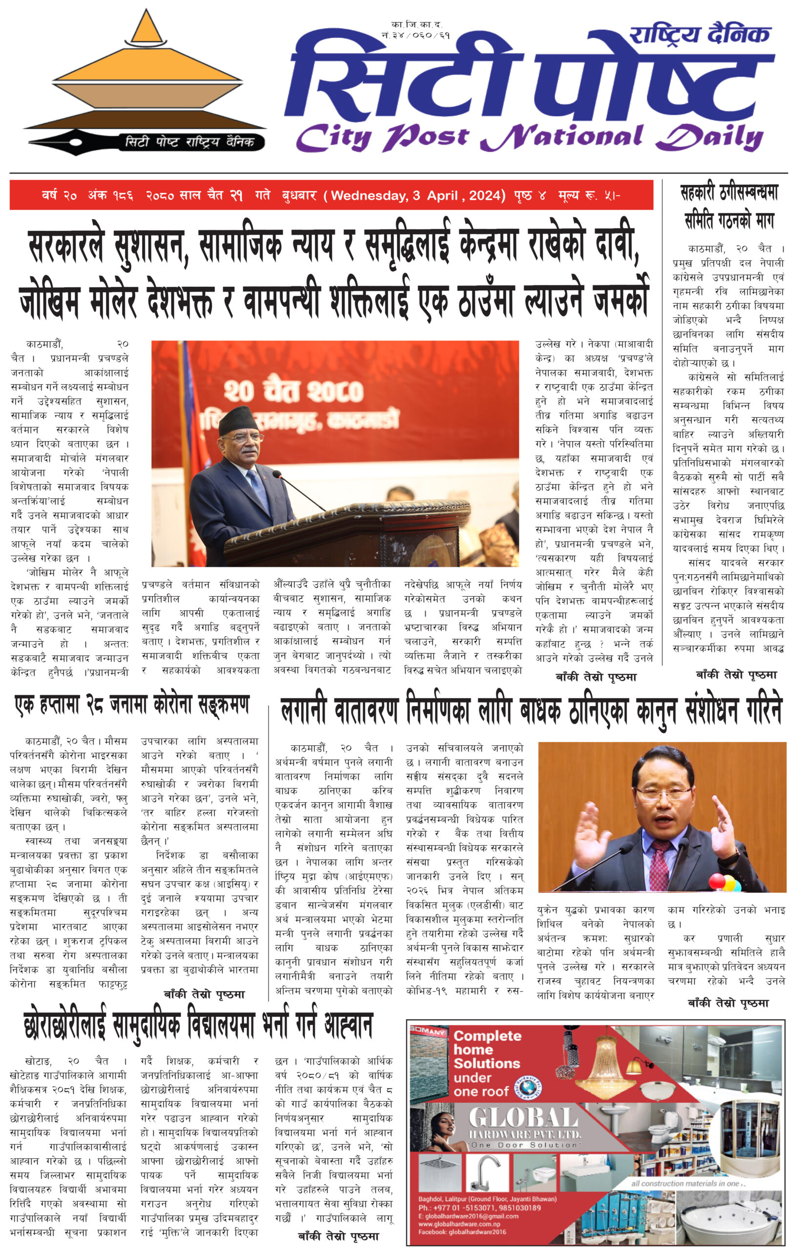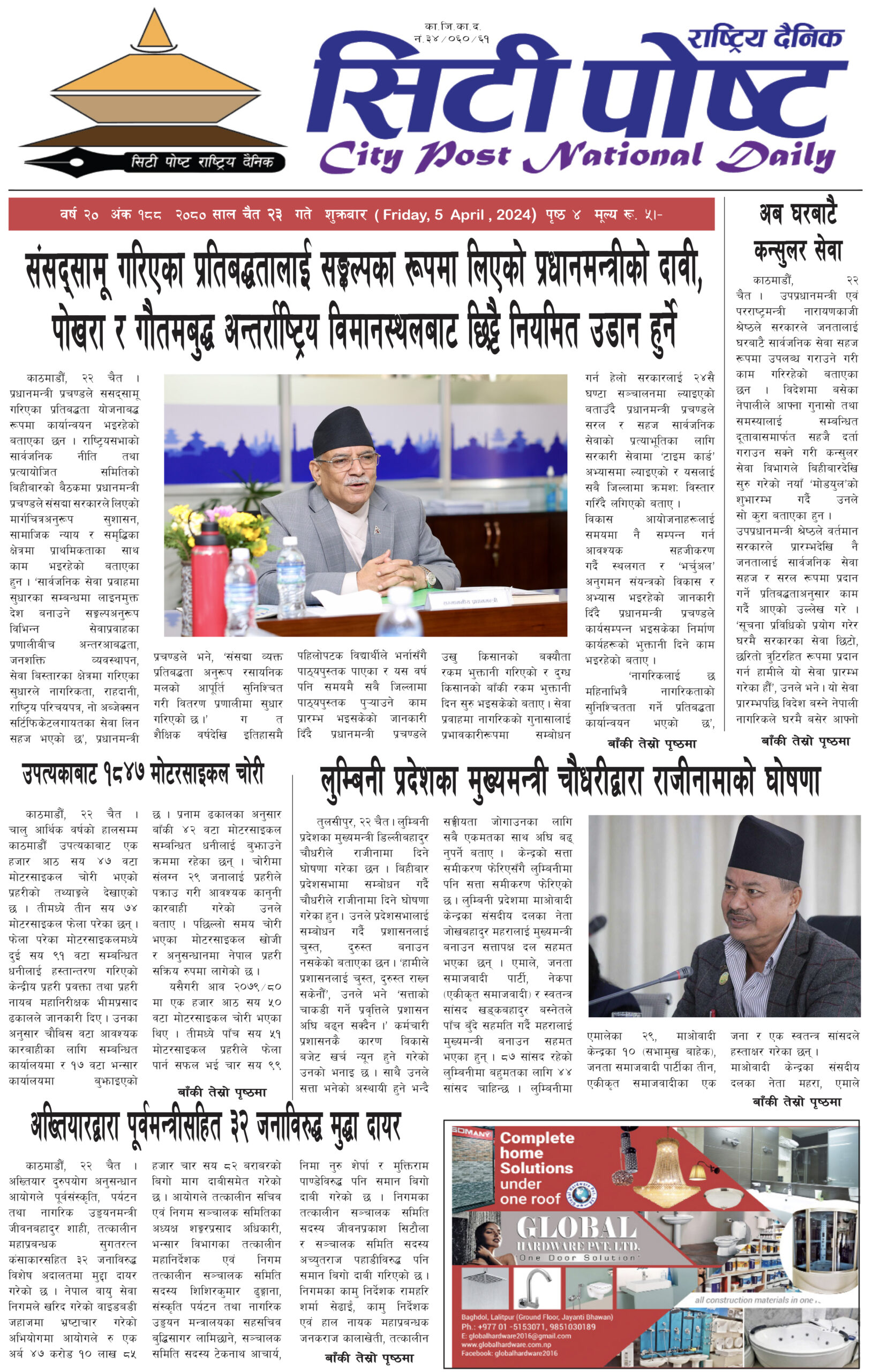 सिटीपोष्ट राष्ट्रिय दैनिक २०८० चैत २०