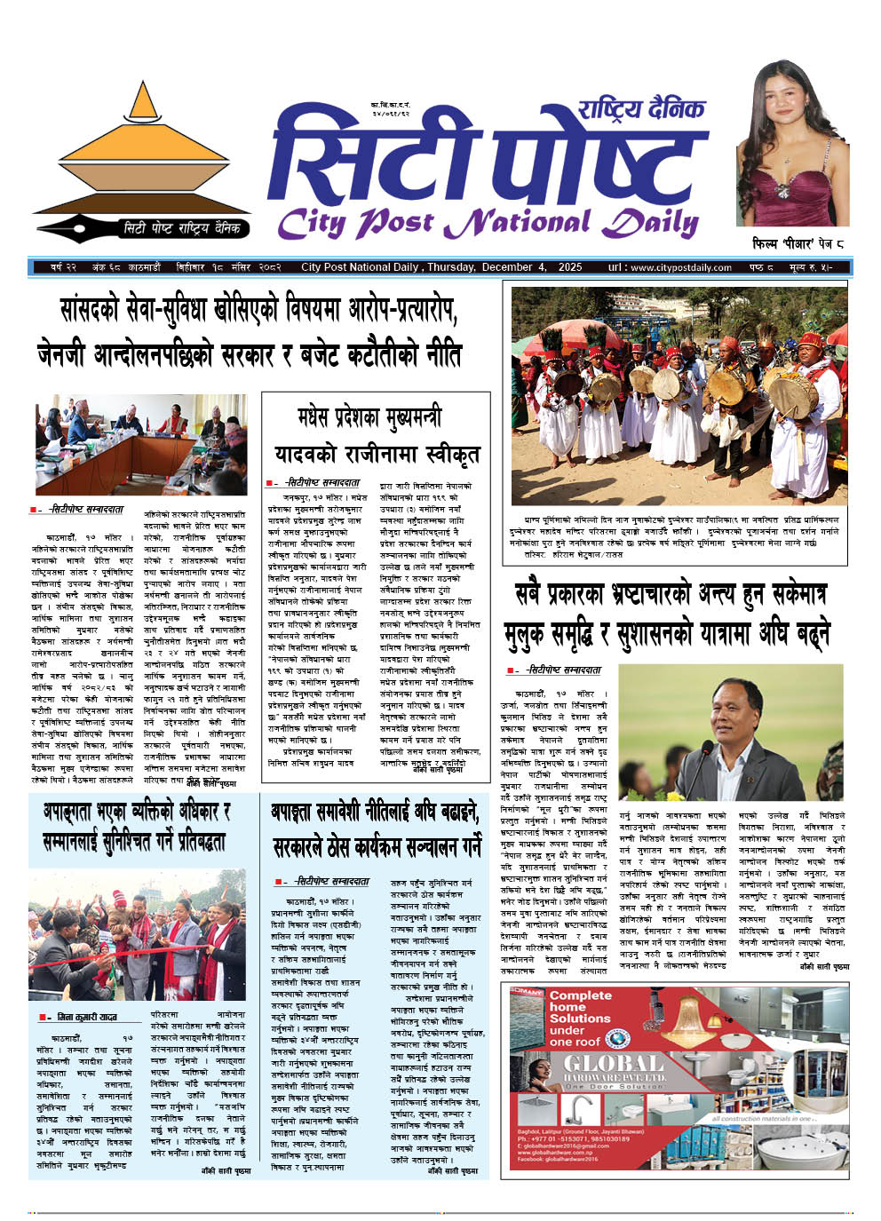 सिटीपोष्ट राष्ट्रिय दैनिक २०८२ मंसिर ९