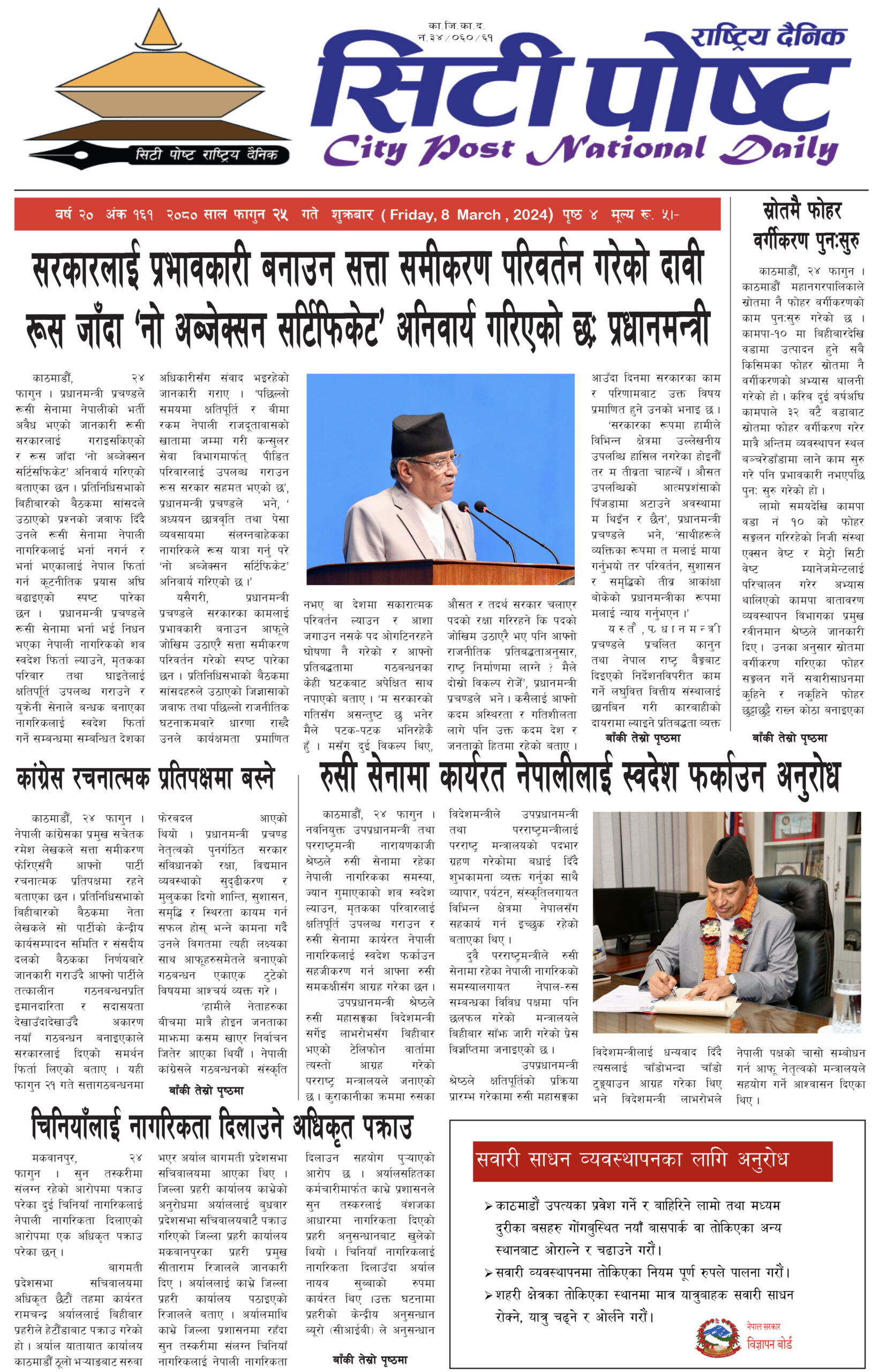 सिटीपोष्ट राष्ट्रिय दैनिक २०८० फागुन २५