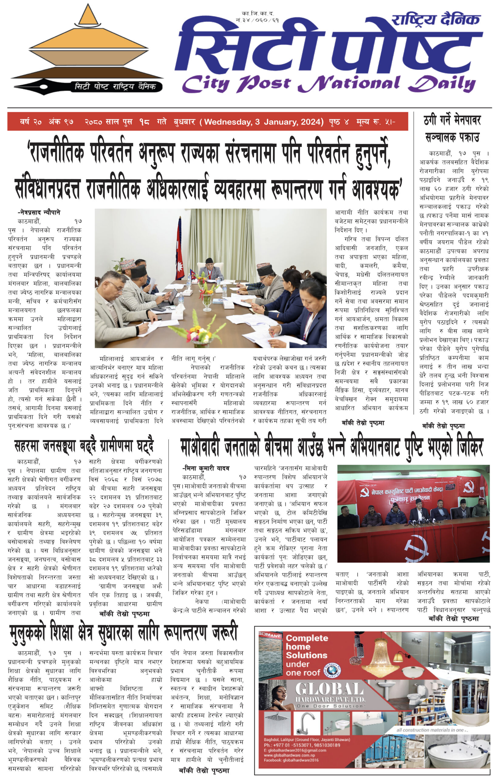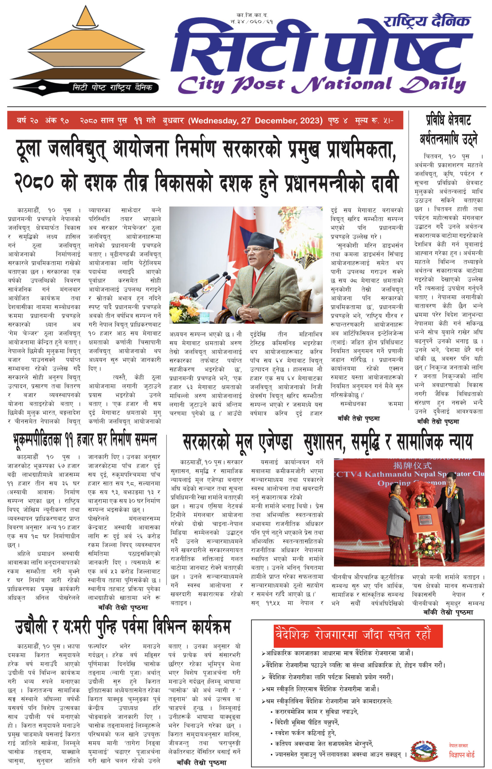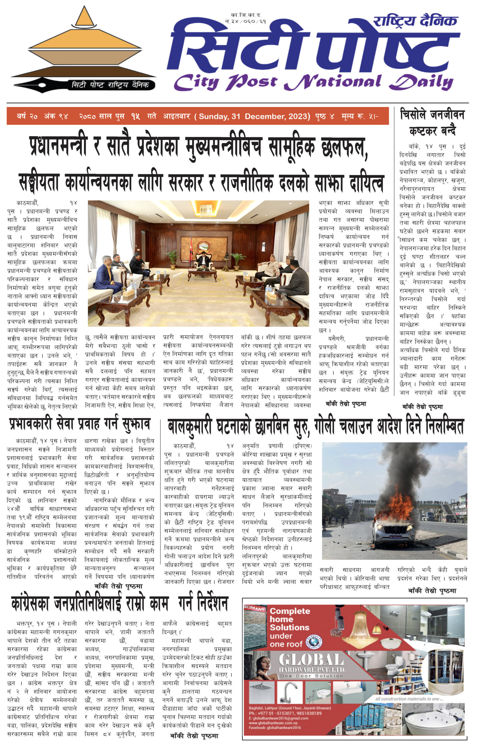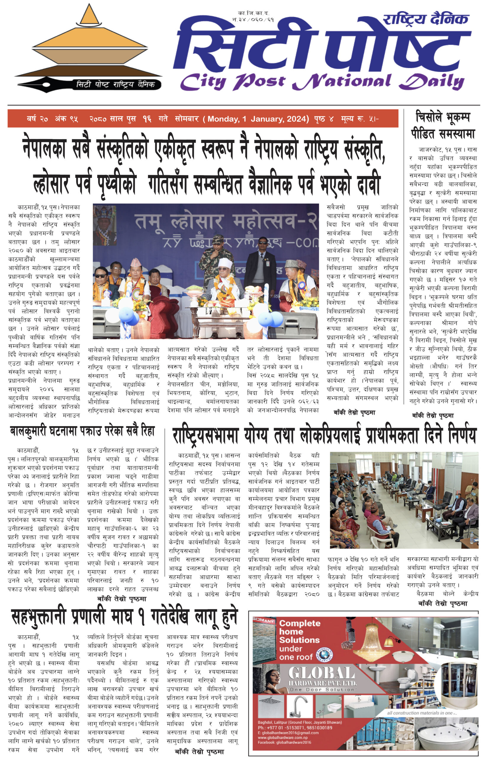 सिटीपोष्ट राष्ट्रिय दैनिक २०८० पुस १९