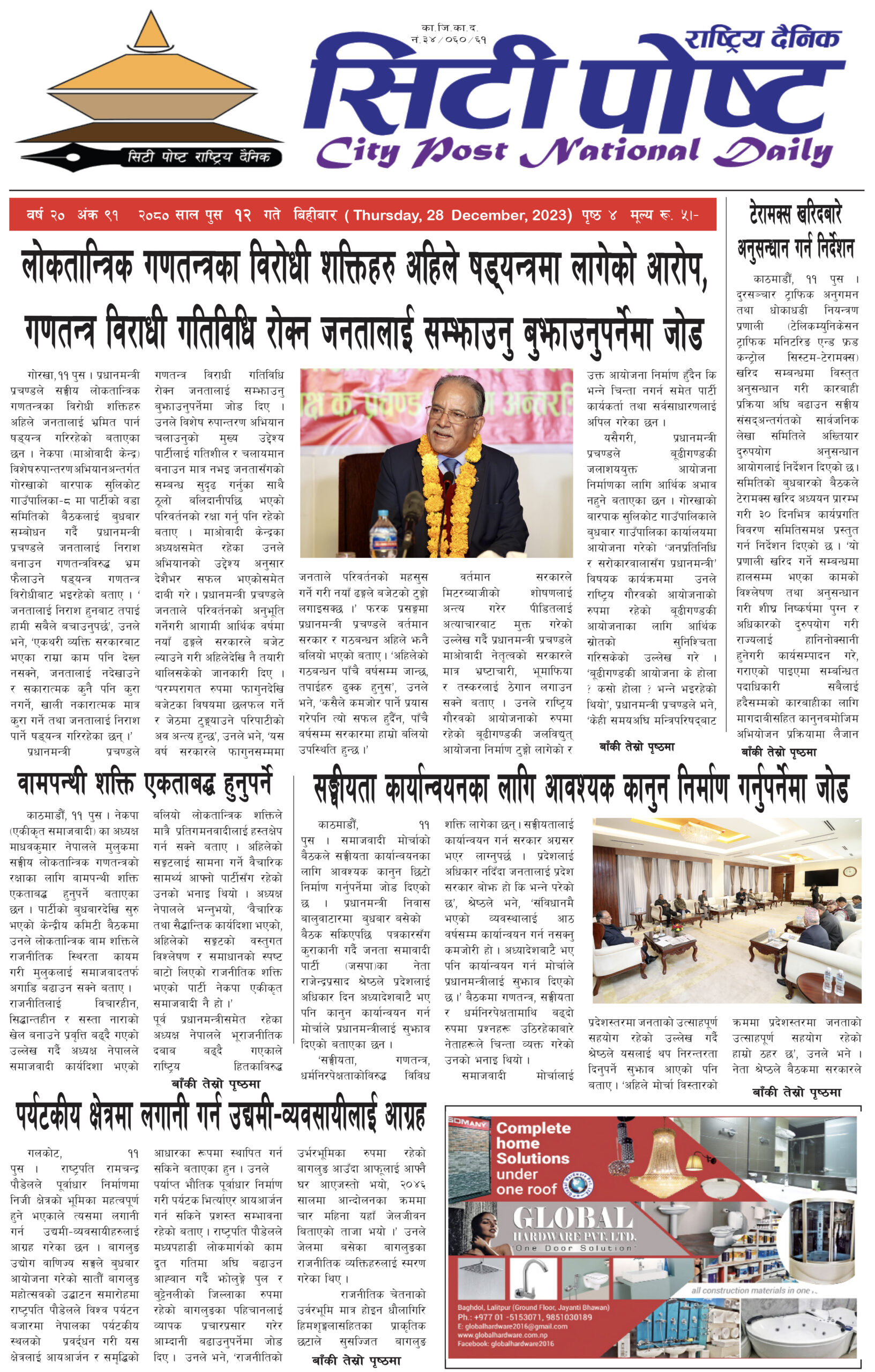 सिटीपोष्ट राष्ट्रिय दैनिक २०८० पुस २०