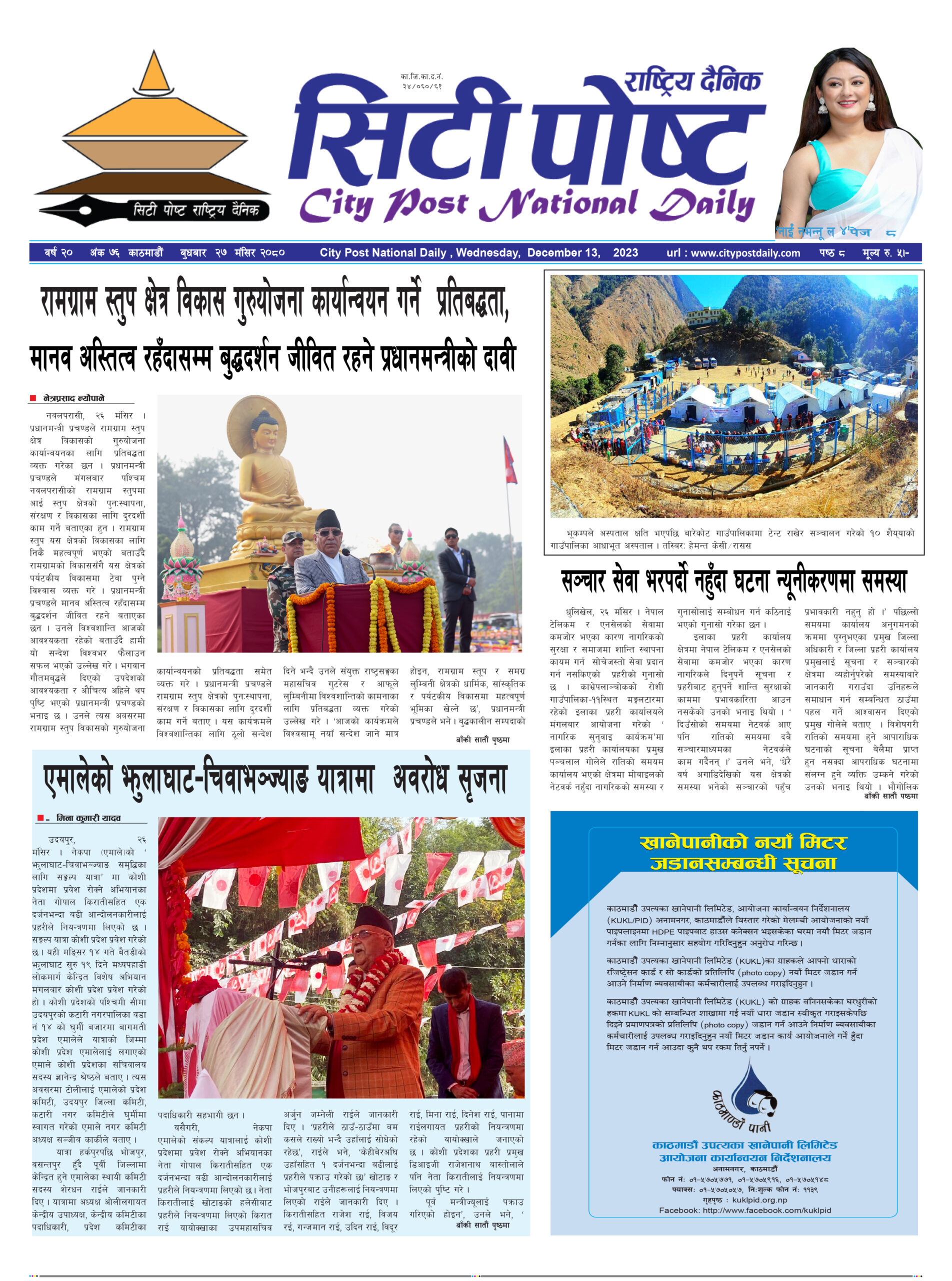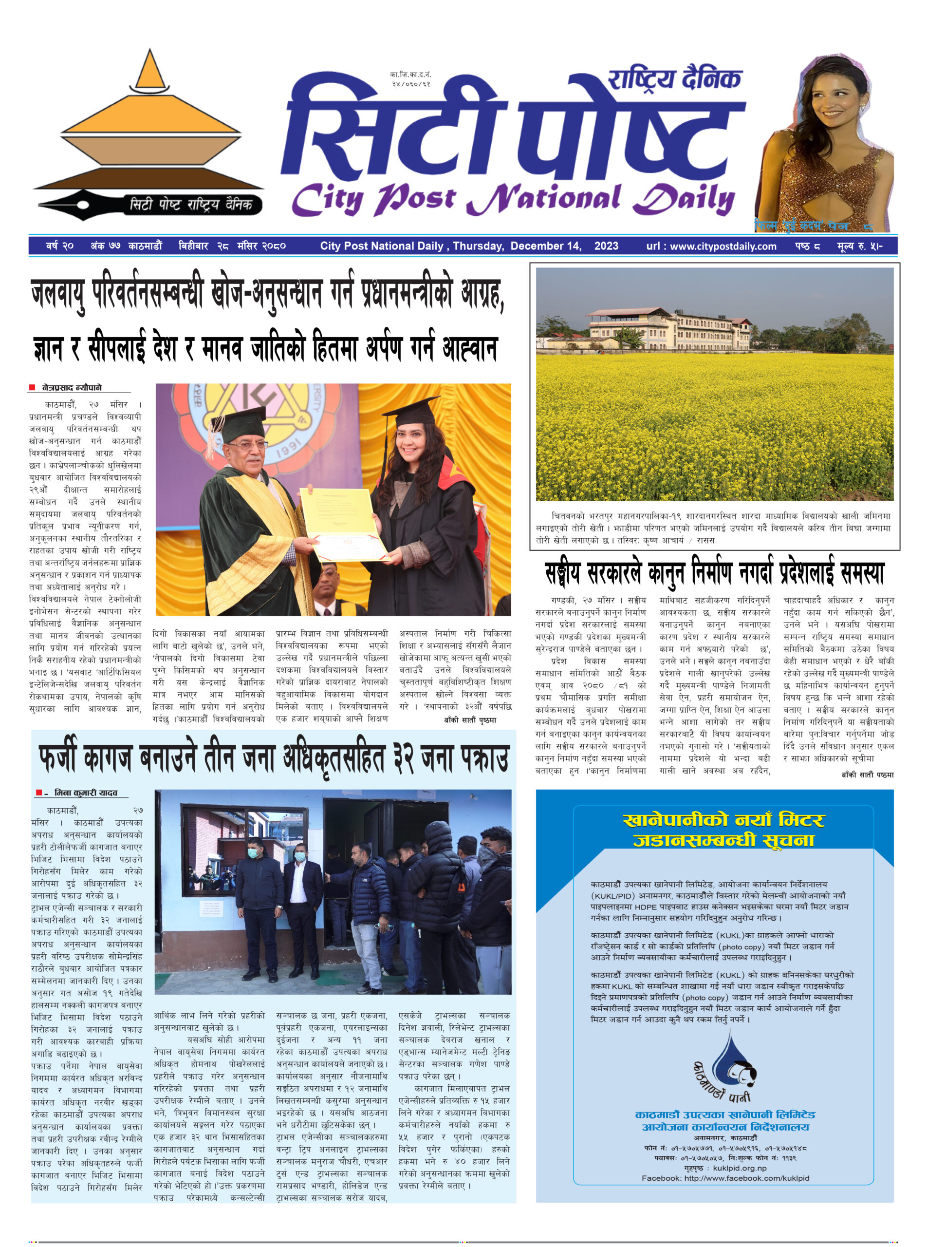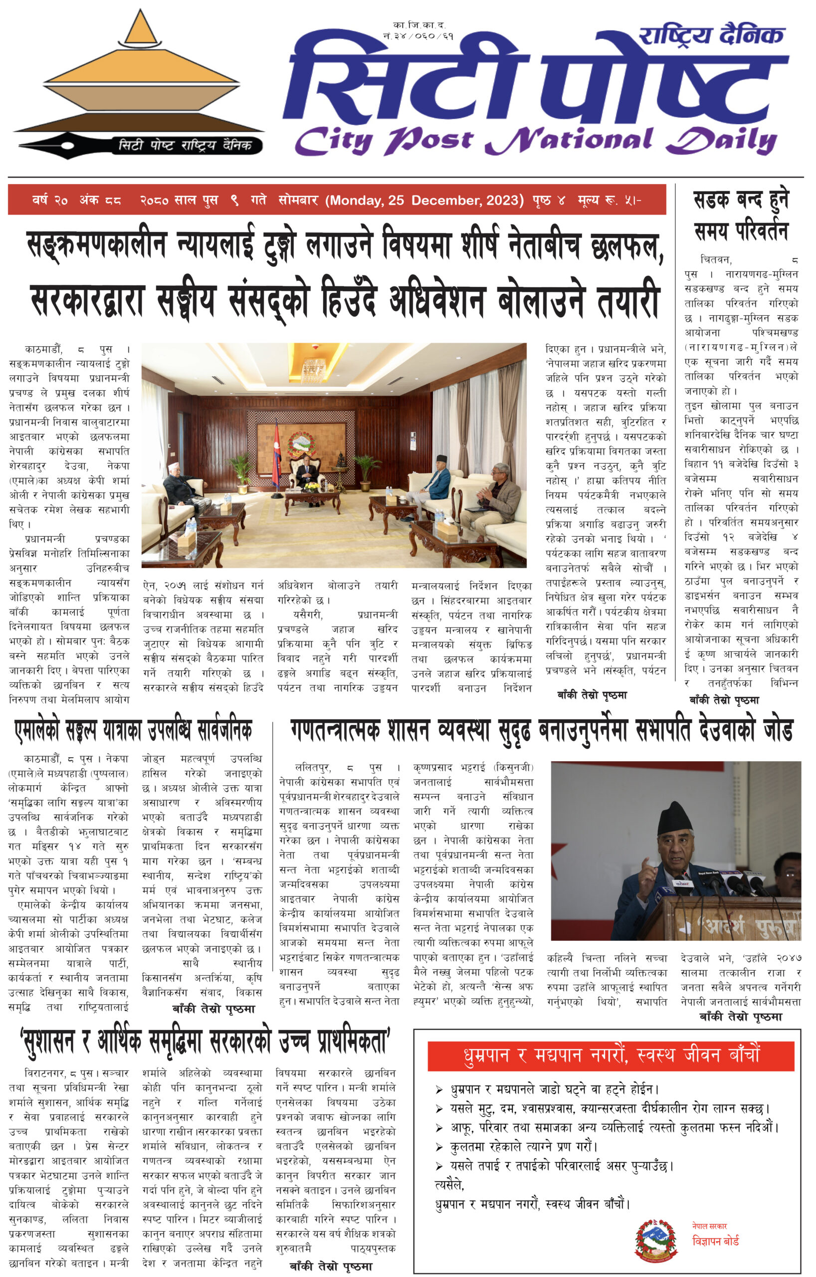सिटीपोष्ट राष्ट्रिय दैनिक २०८० मंसिर २८
