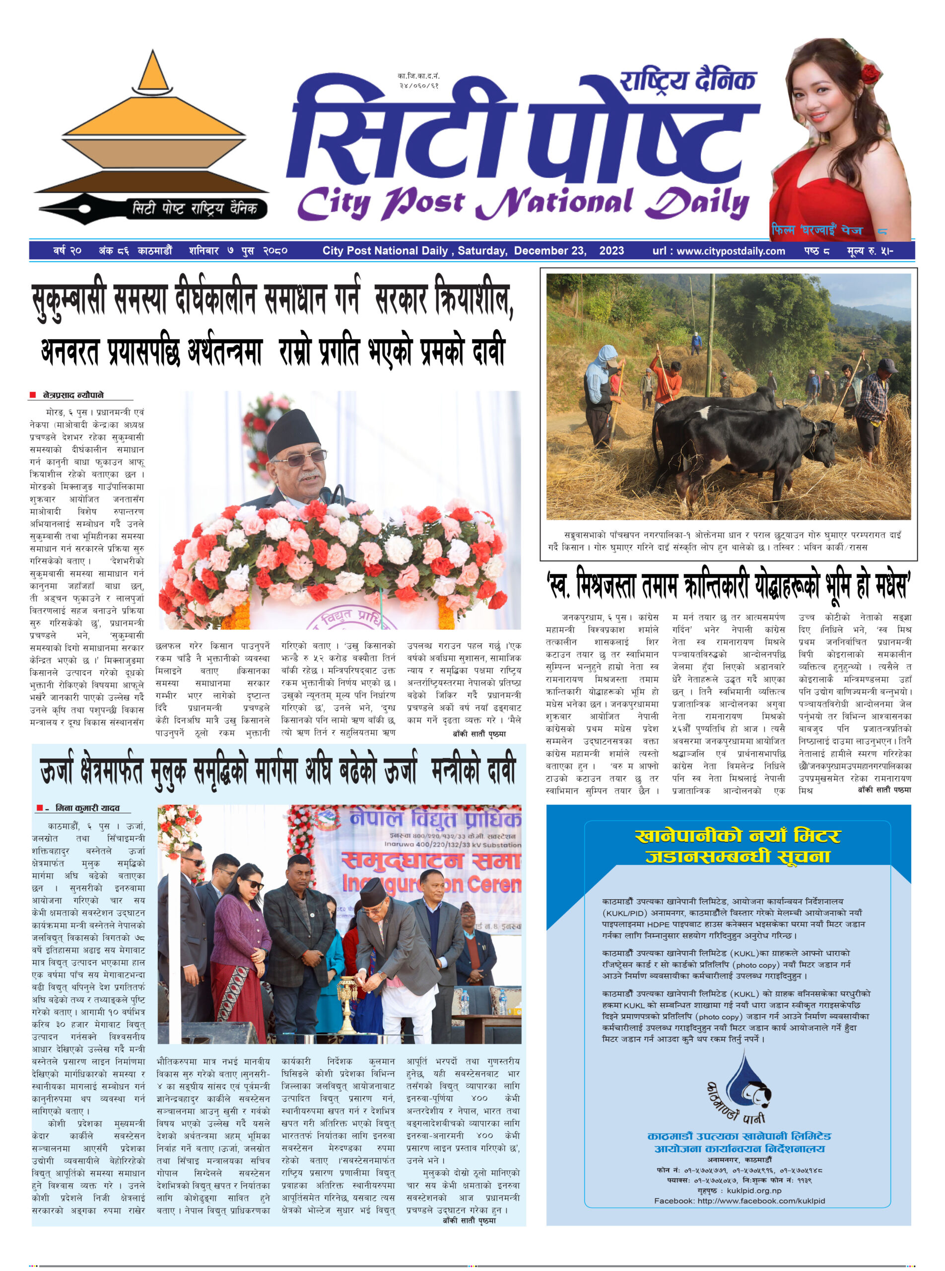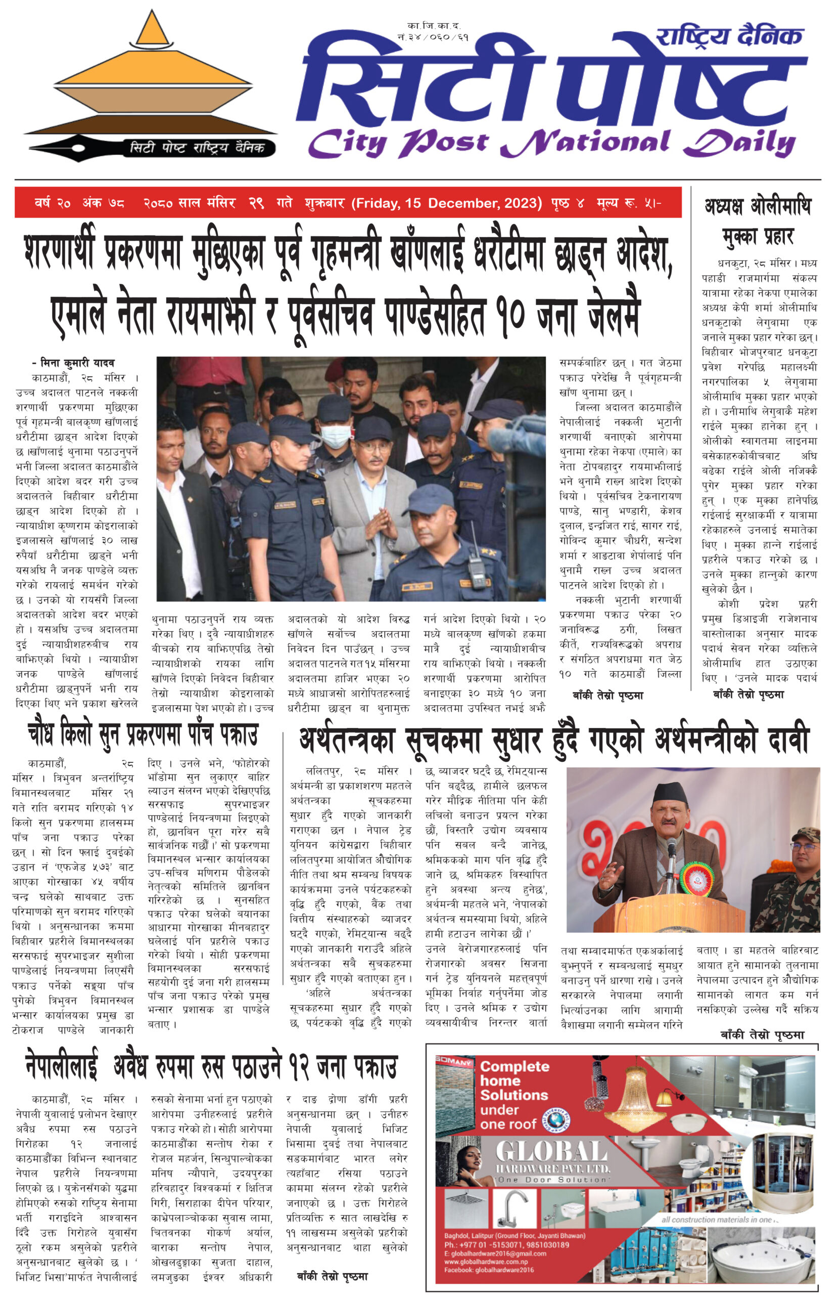 सिटीपोष्ट राष्टिय दैनिक २०८० मंसिर २९