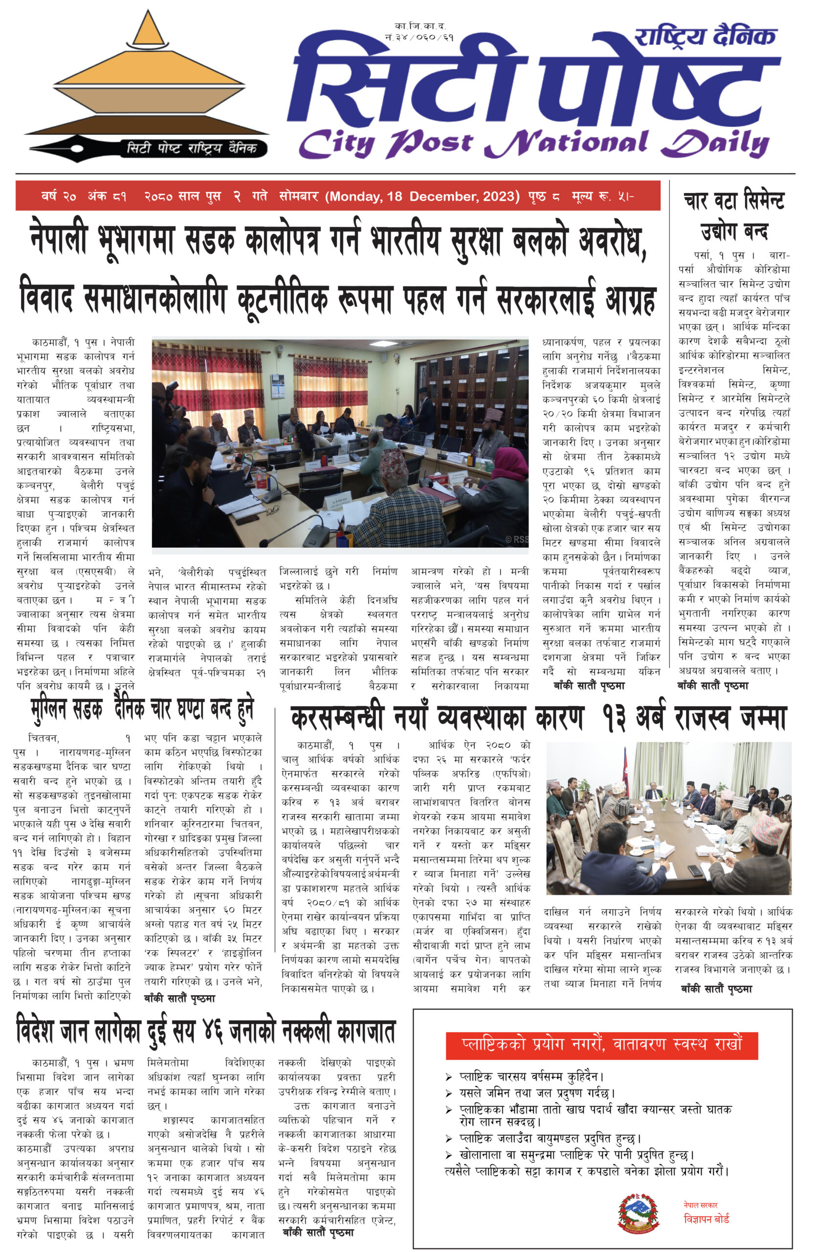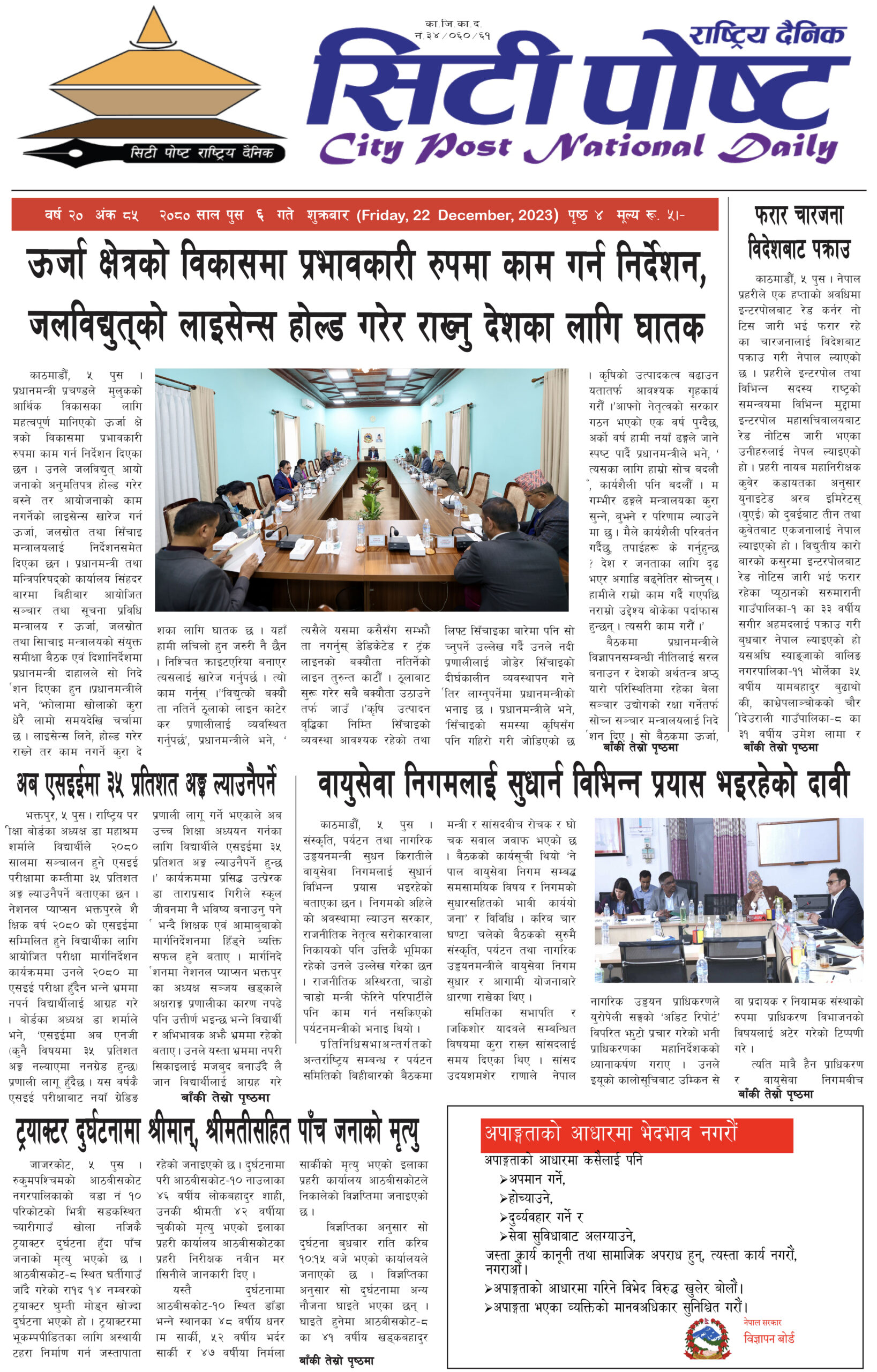 सिटीपोष्ट राष्ट्रिय दैनिक २०८० पुस ६
