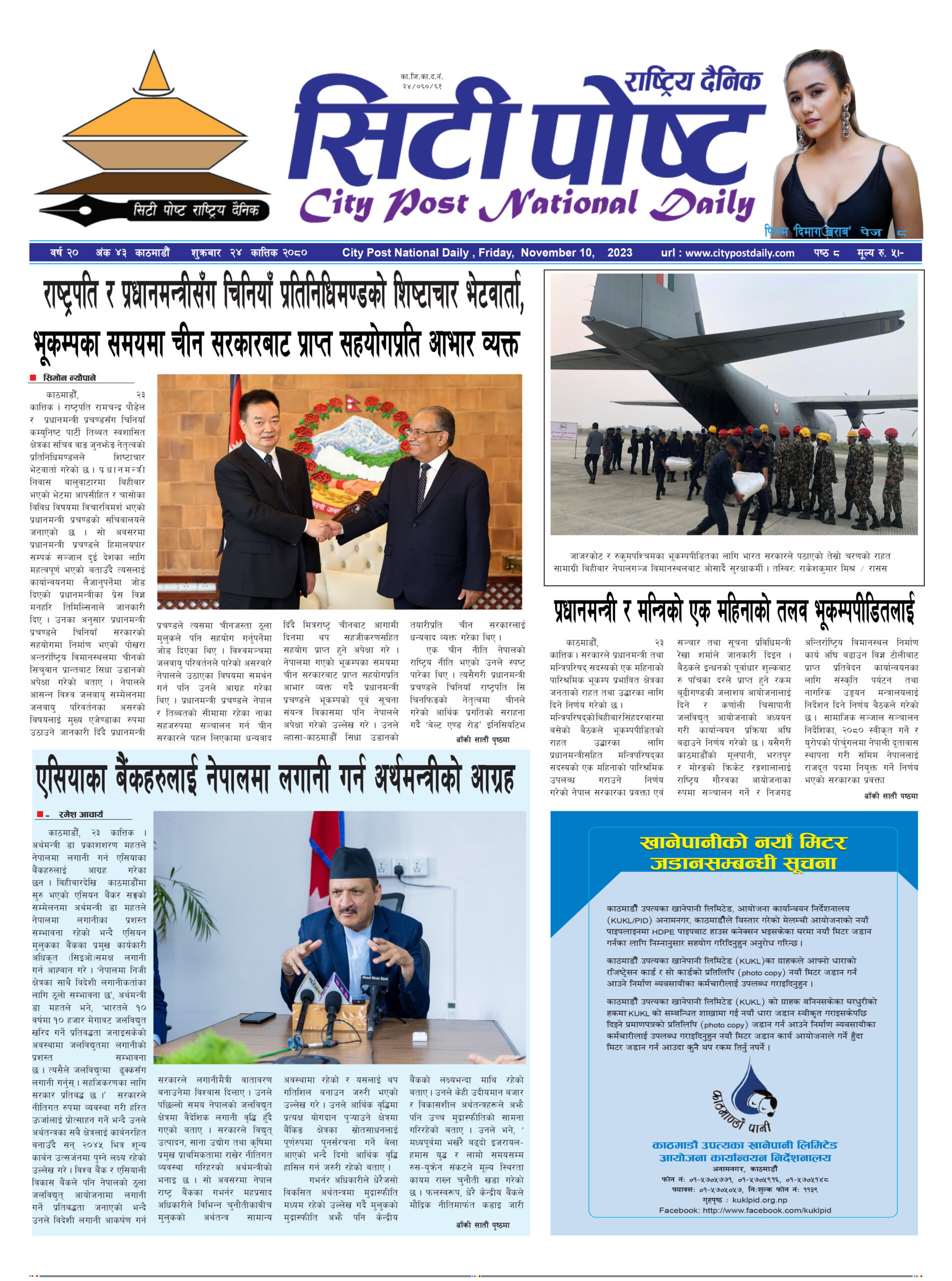 सिटी पोष्ट राष्ट्रिय दैनिक २०८० कात्तिक २४