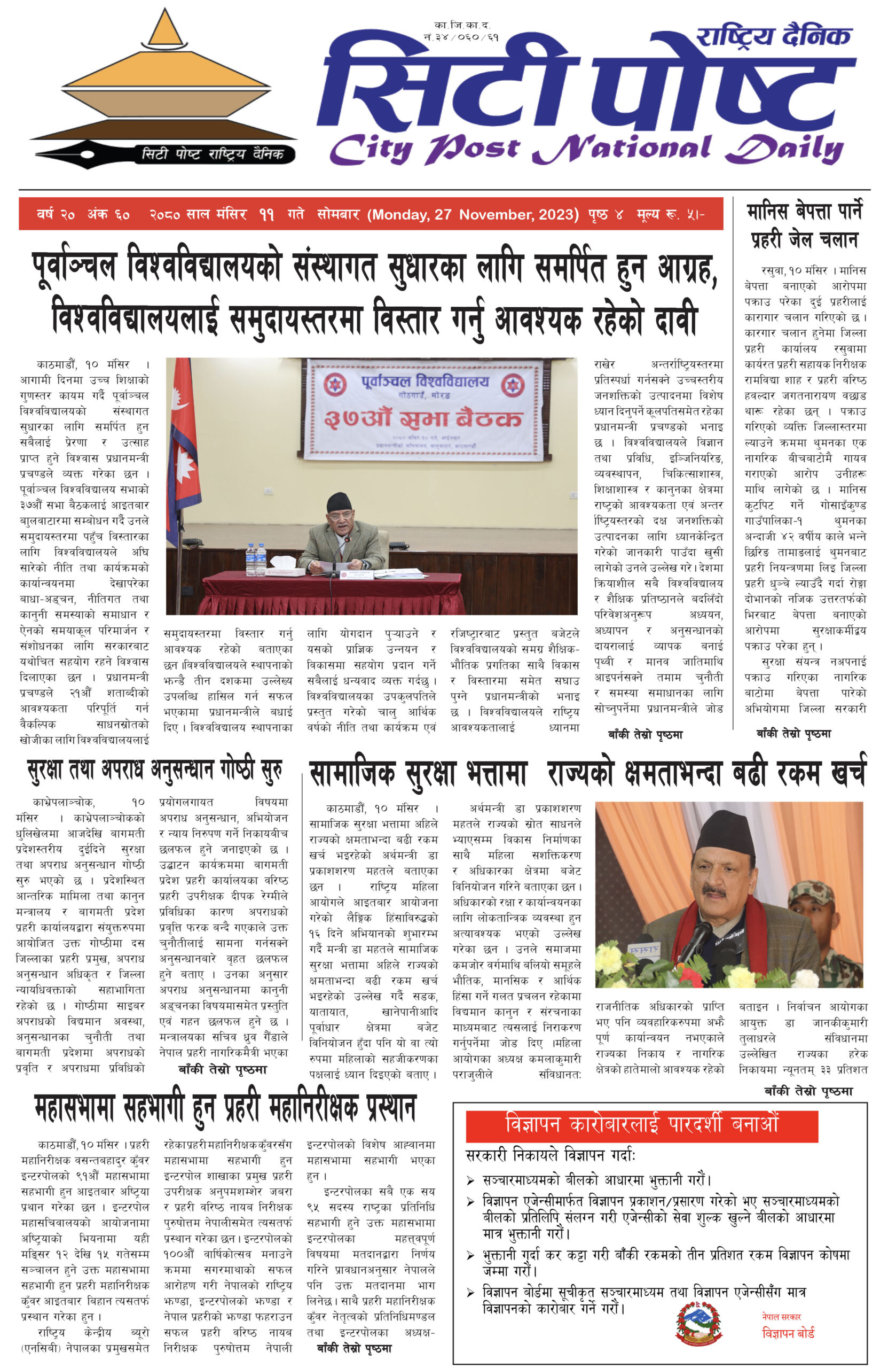 सिटीपोष्ट राष्ट्रिय दैनिक २०८० मंसिर ११