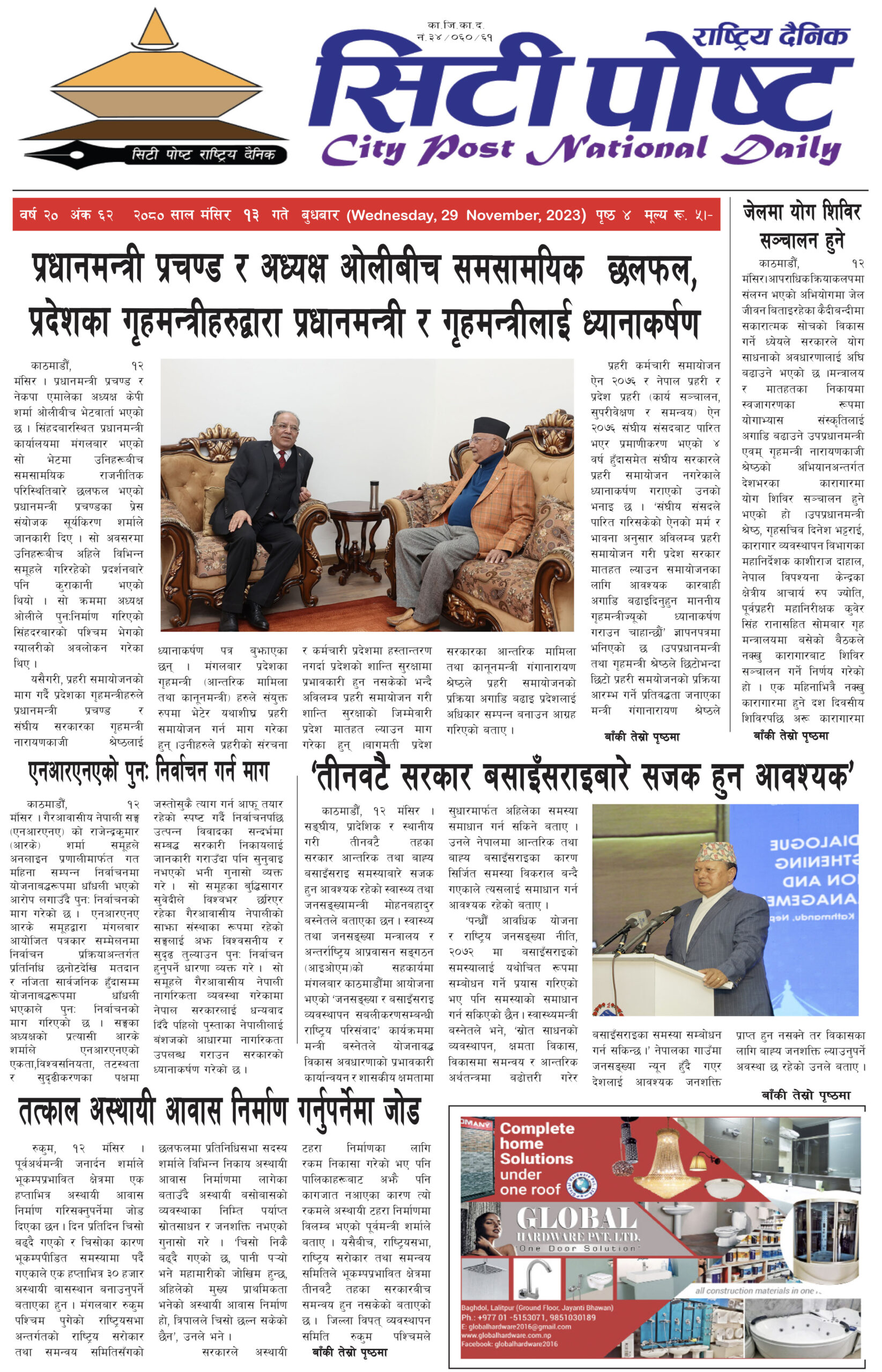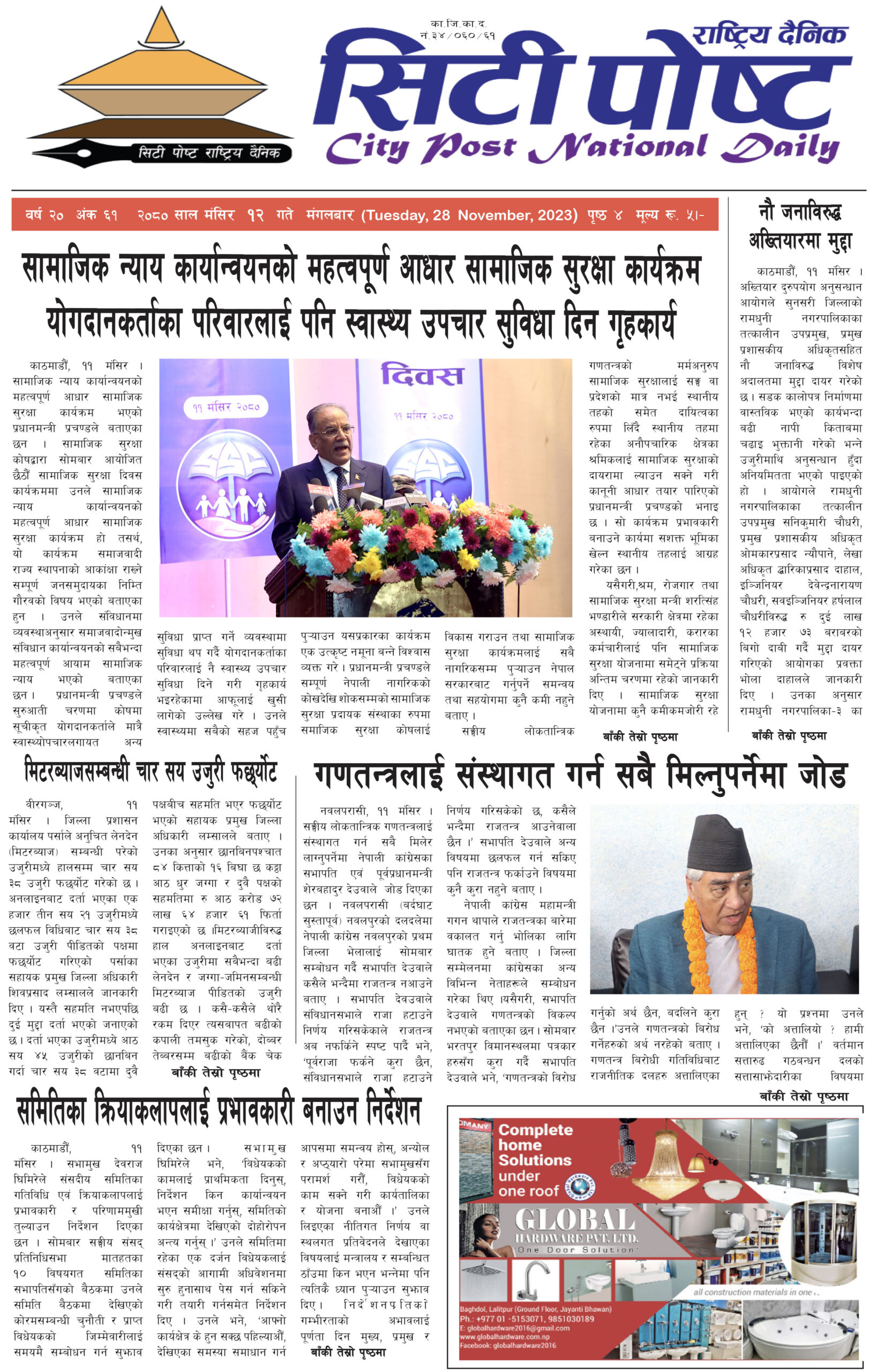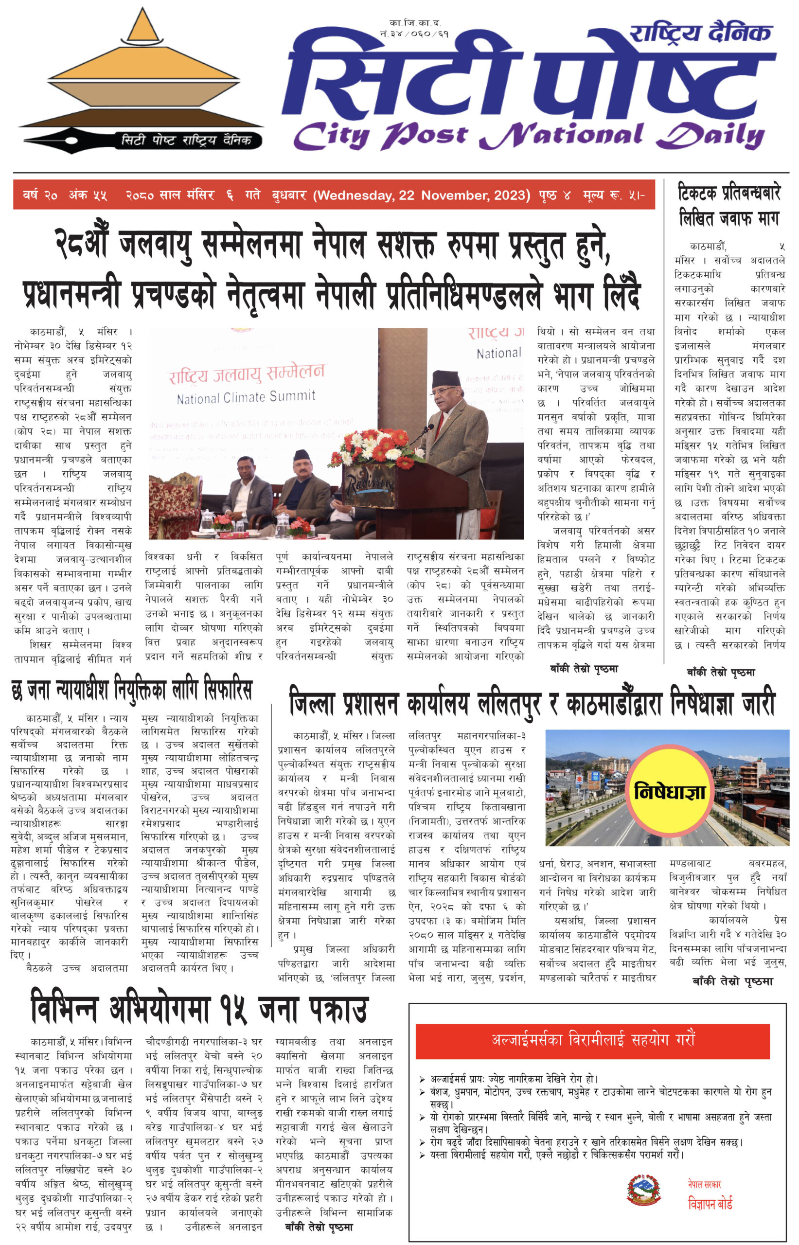 सिटीपोष्ट राष्ट्रिय दैनिक २०८० मंसिर ४
