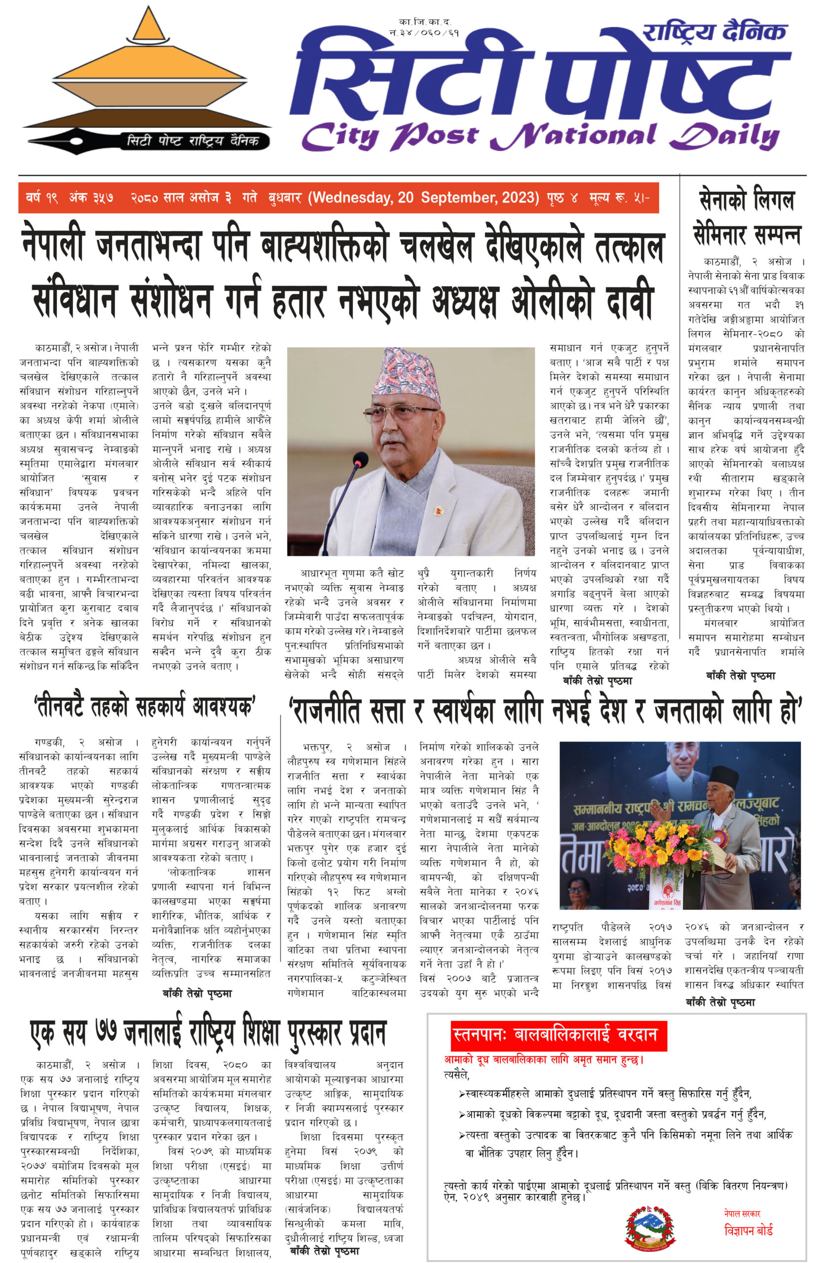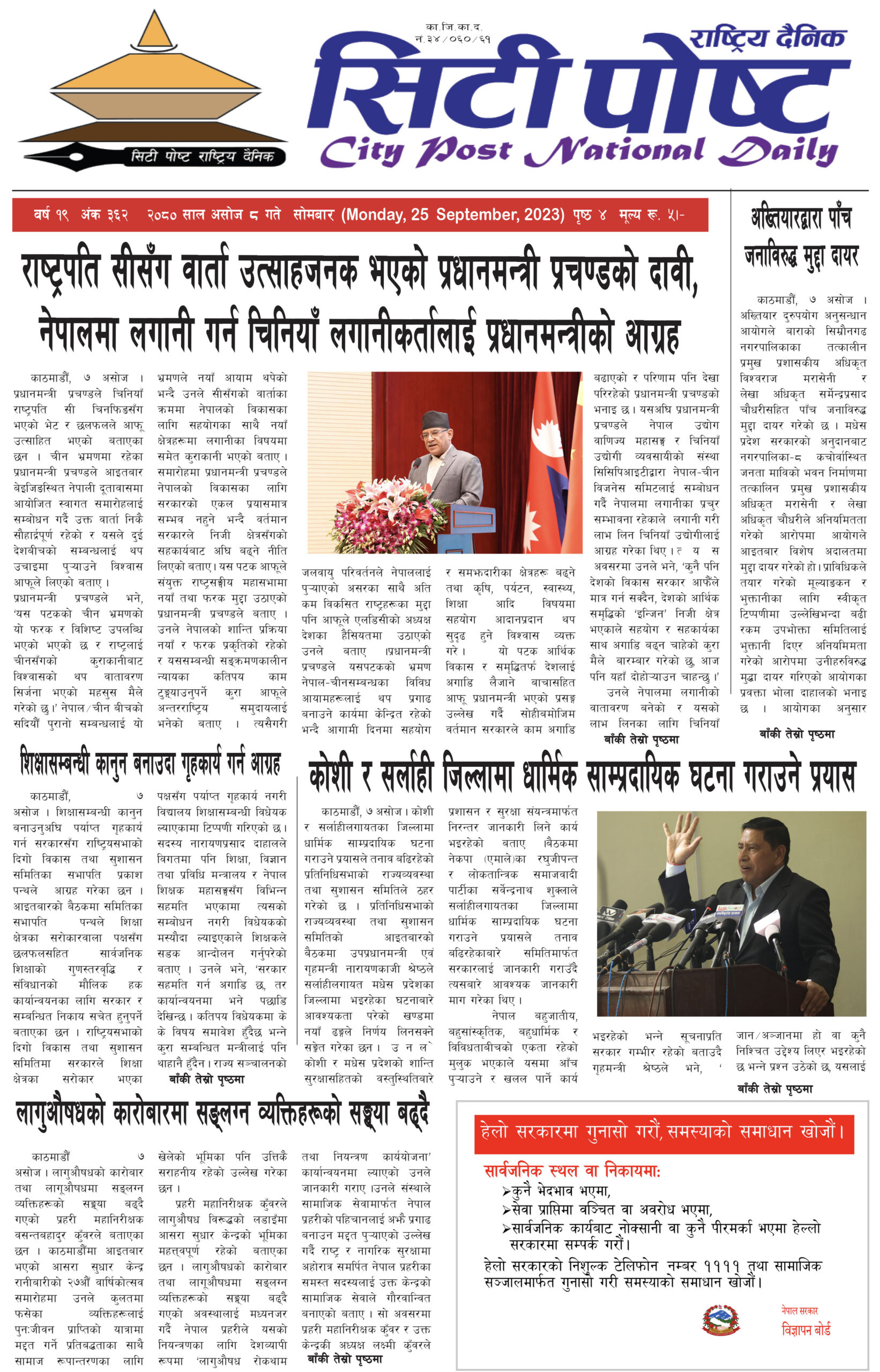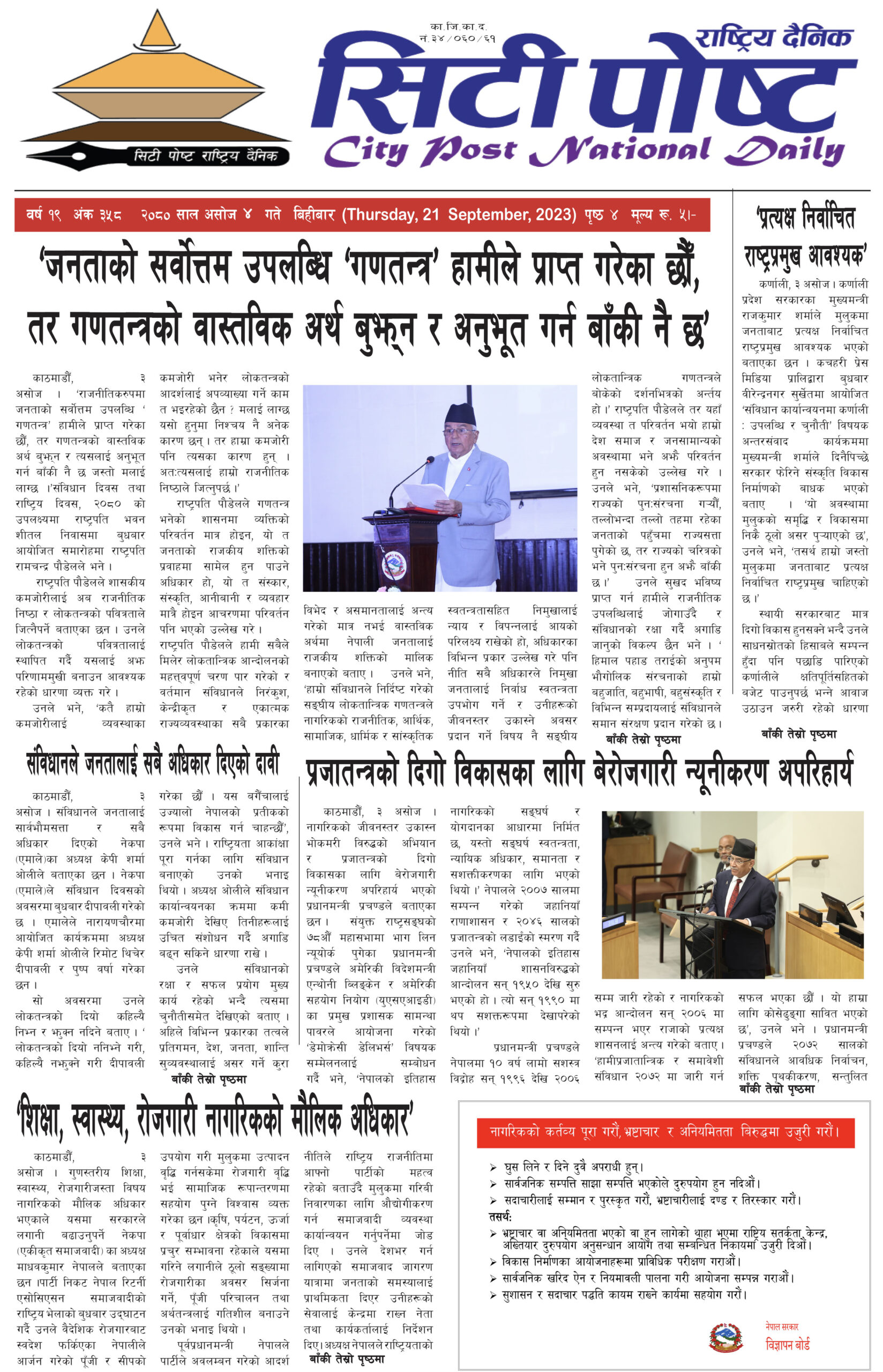 सिटी पोष्ट राष्ट्रिय दैनिक २०८० भदौ २६