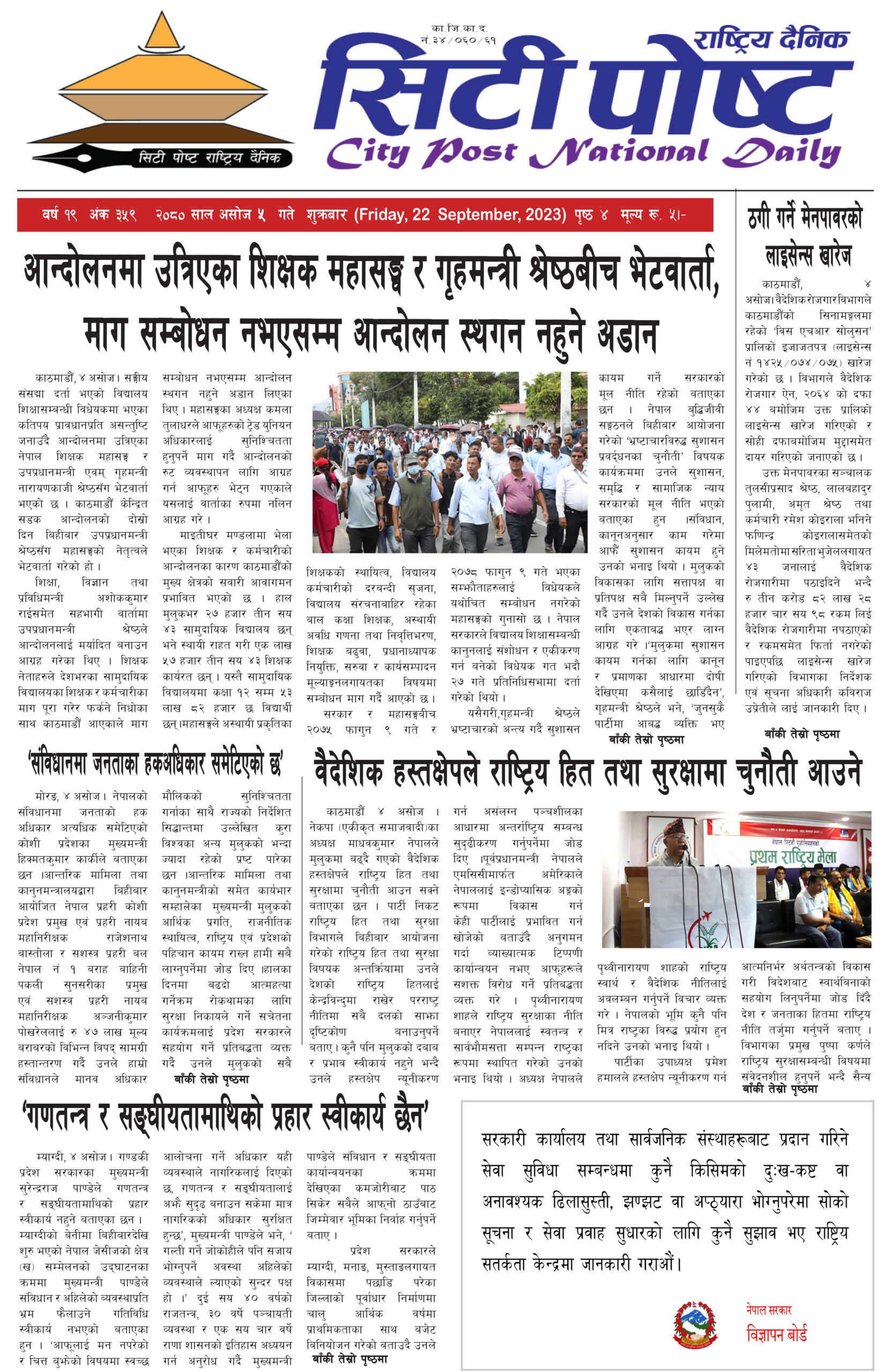 सिटी पोष्ट राष्ट्रिय दैनिक २०८० असोज ९
