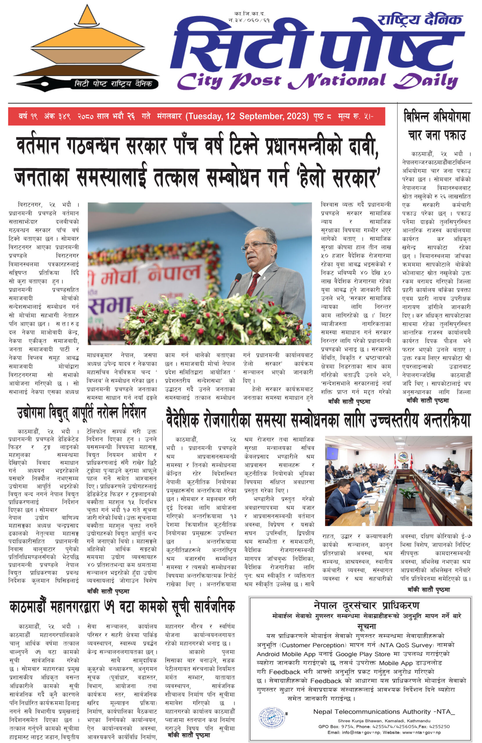 सिटी पोष्ट राष्ट्रिय दैनिक २०८० असोज ५