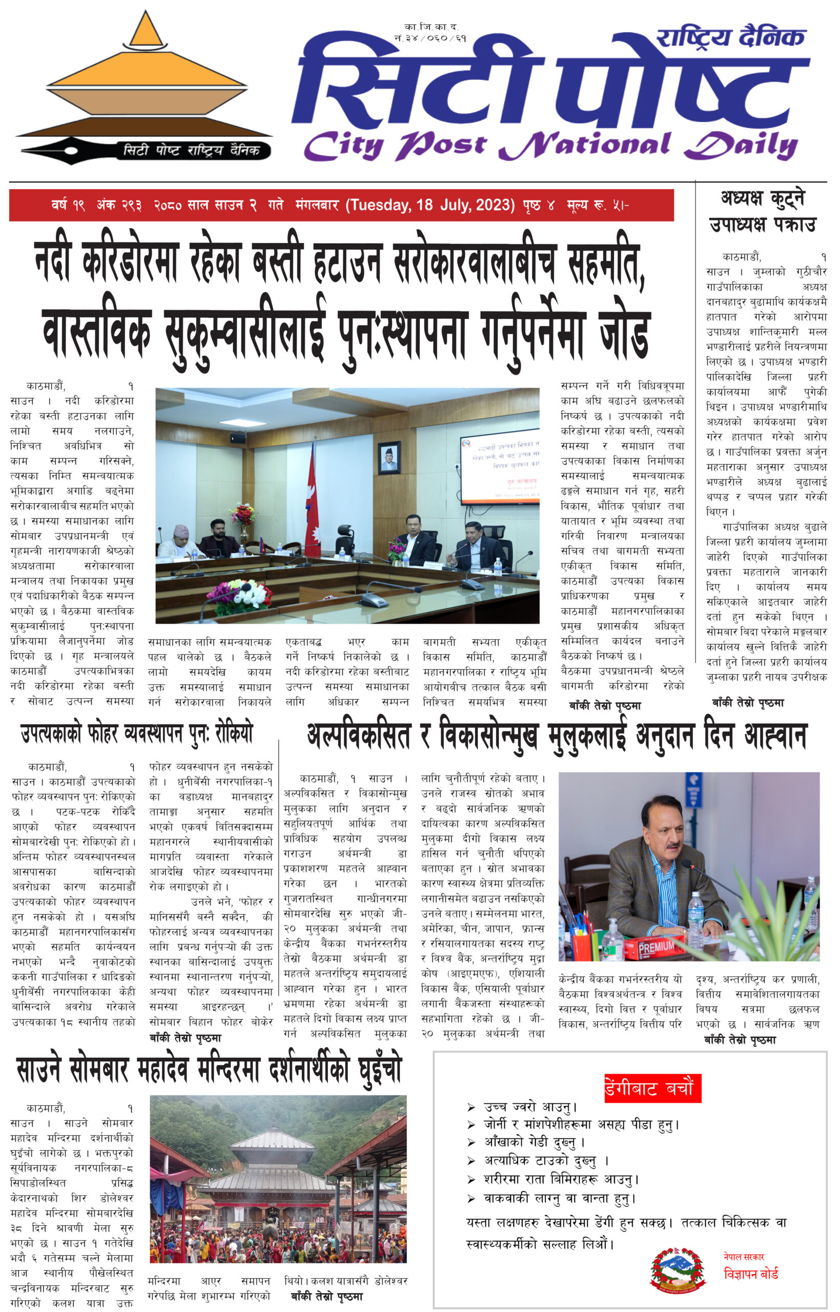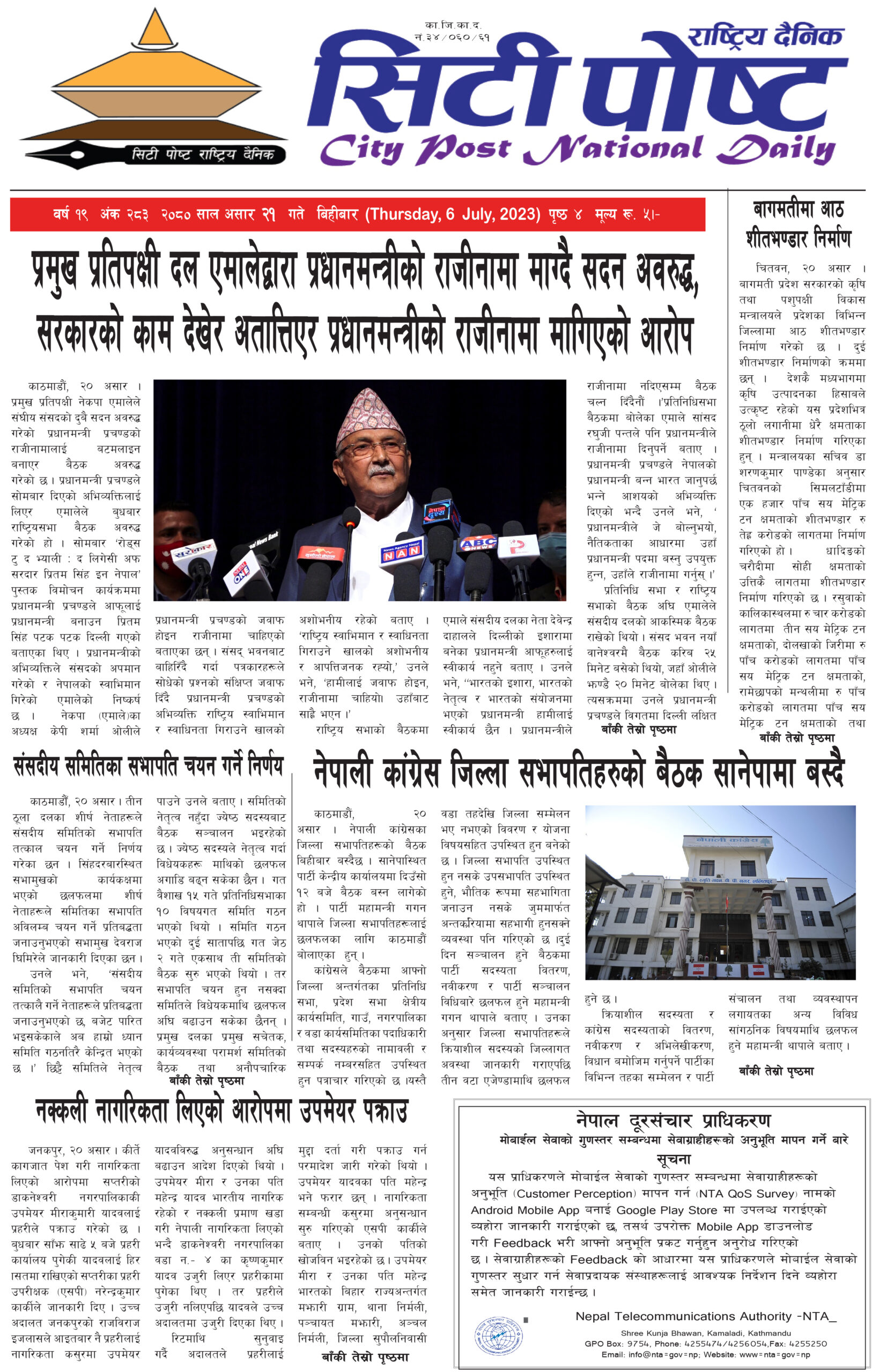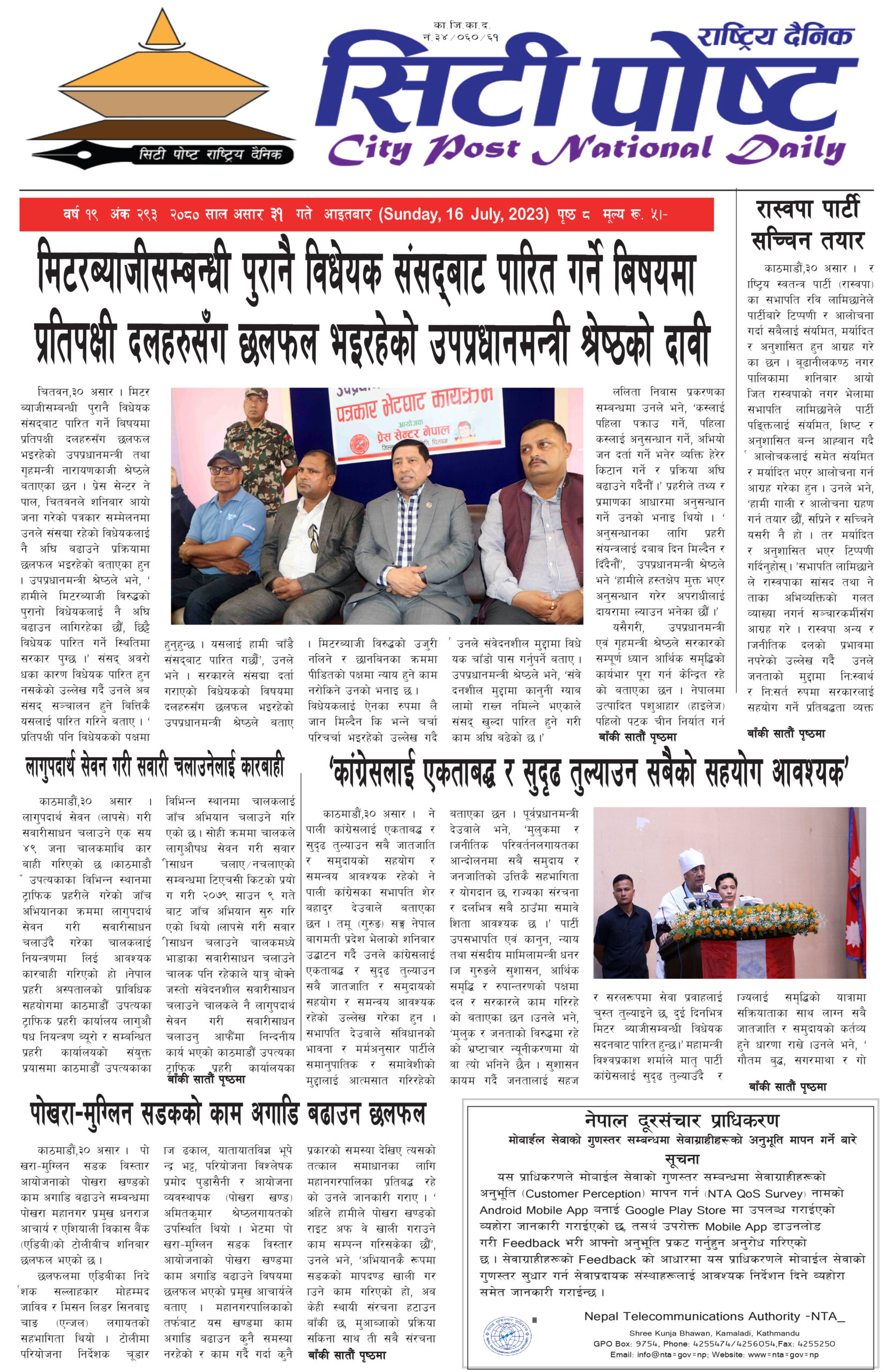सिटी पोष्ट राष्ट्रिय दैनीक २०८० साउन ३