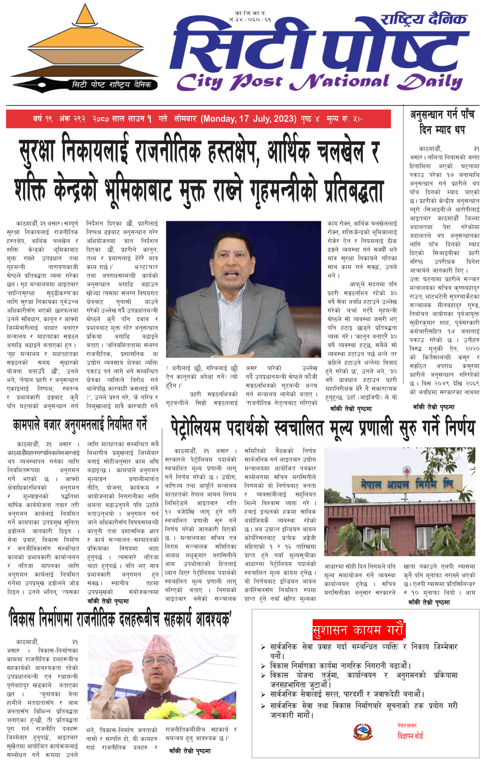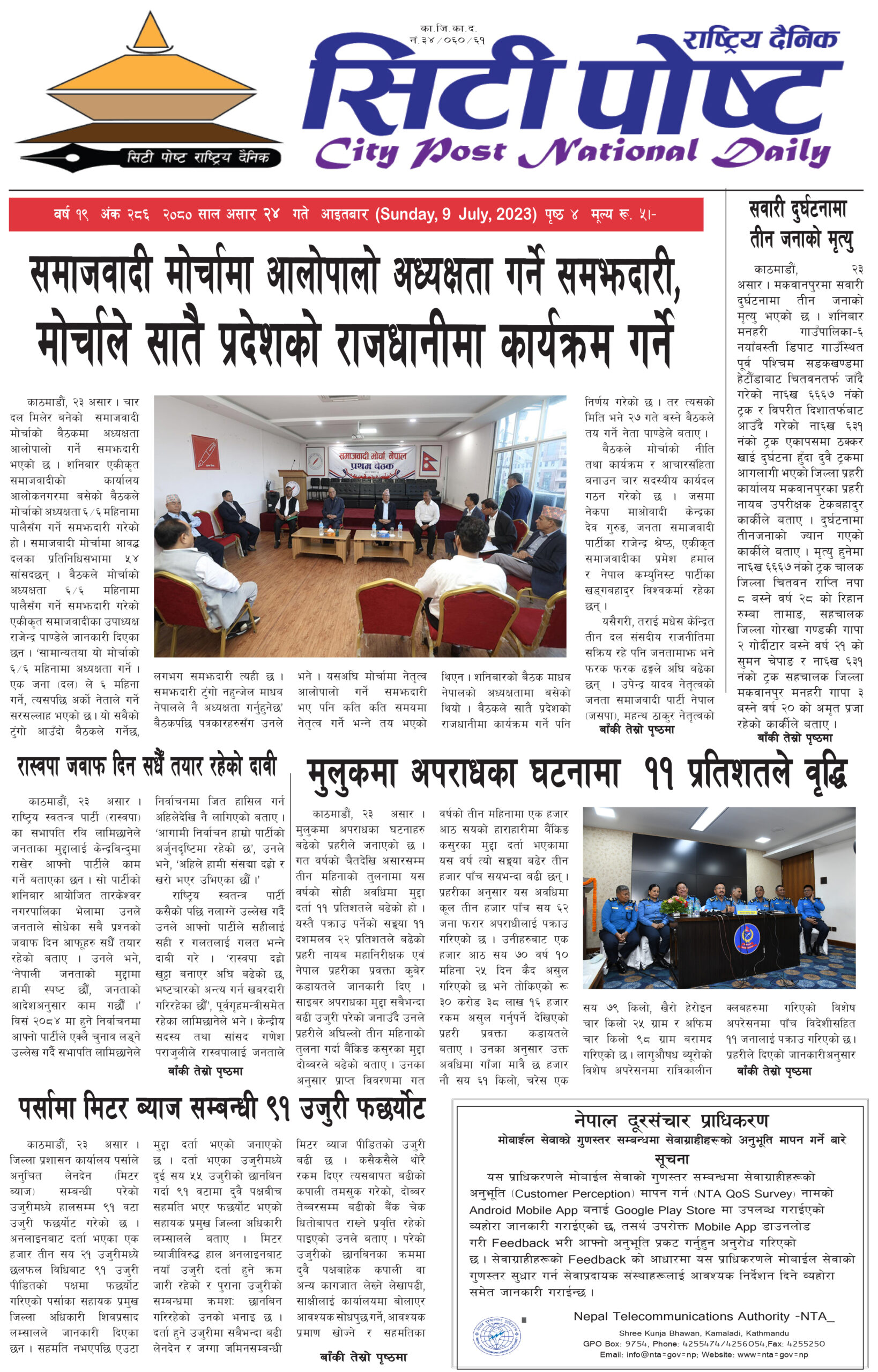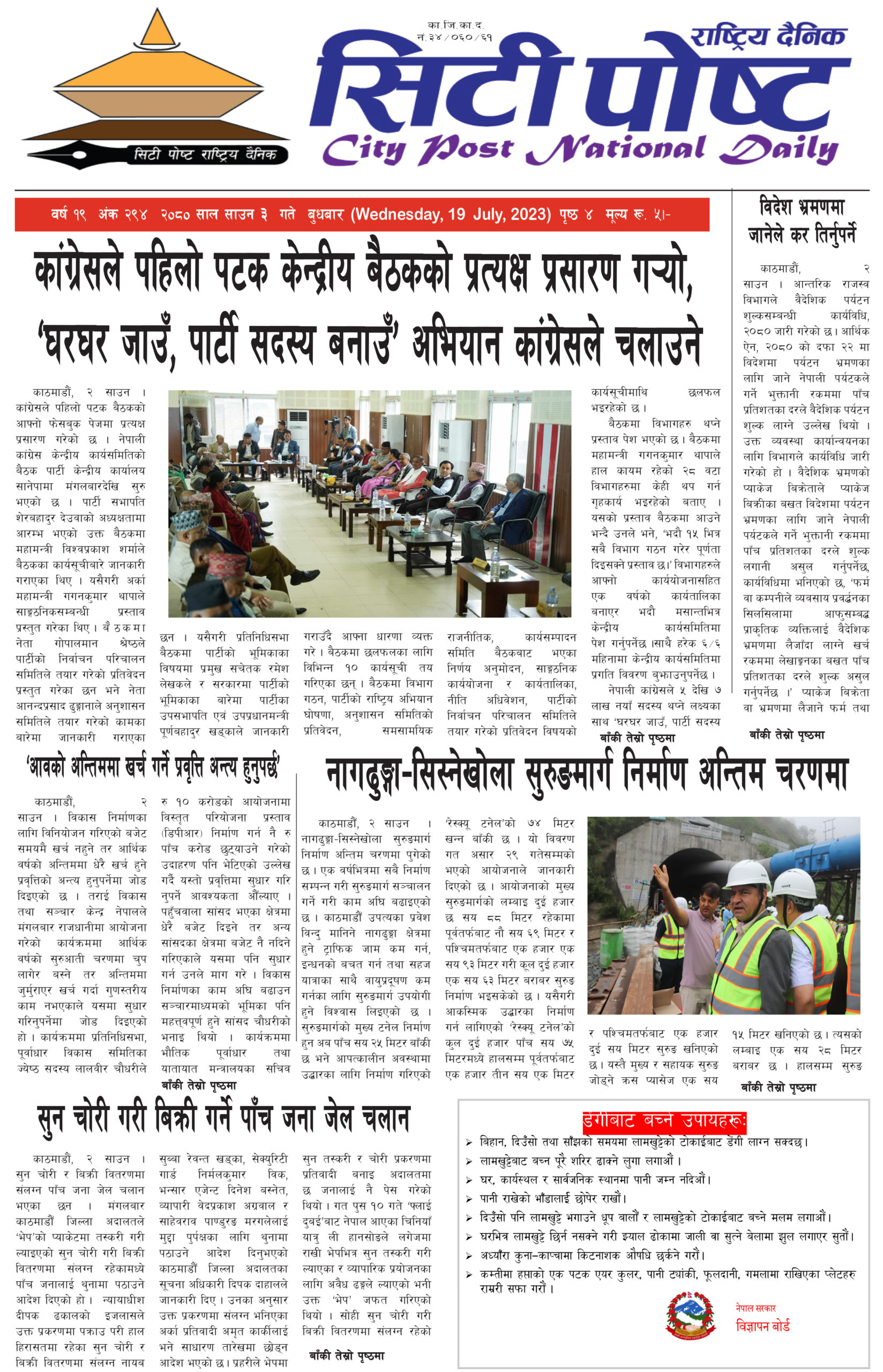 सिटी पोष्ट राष्ट्रिय दैनीक २०८० साउन ३