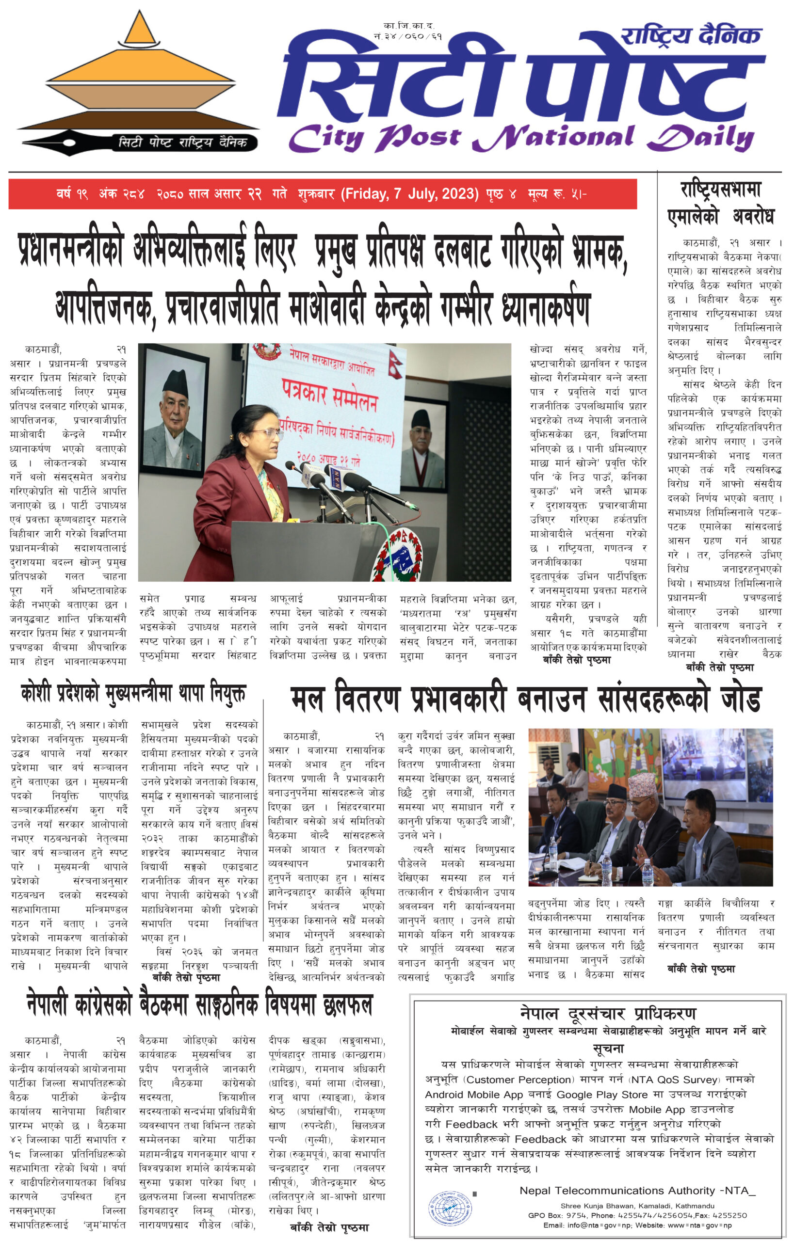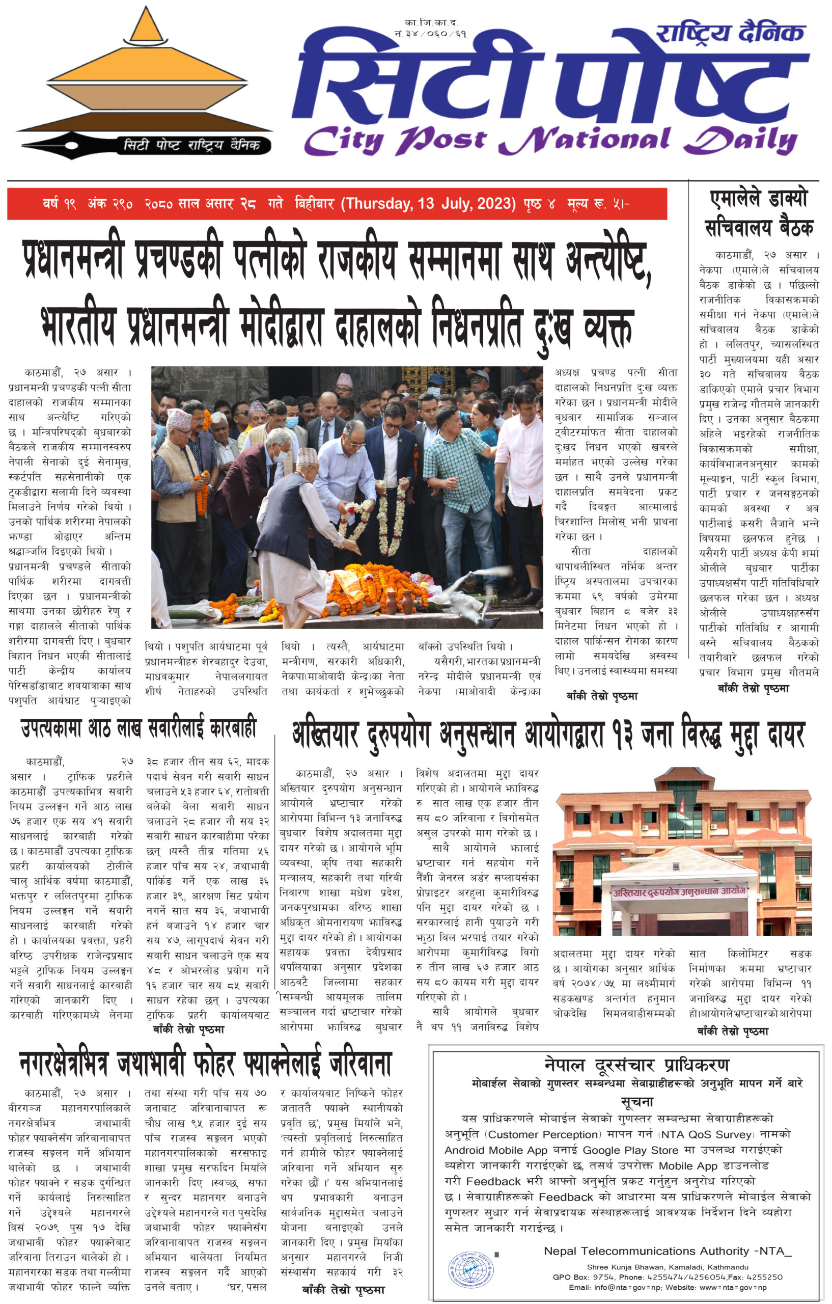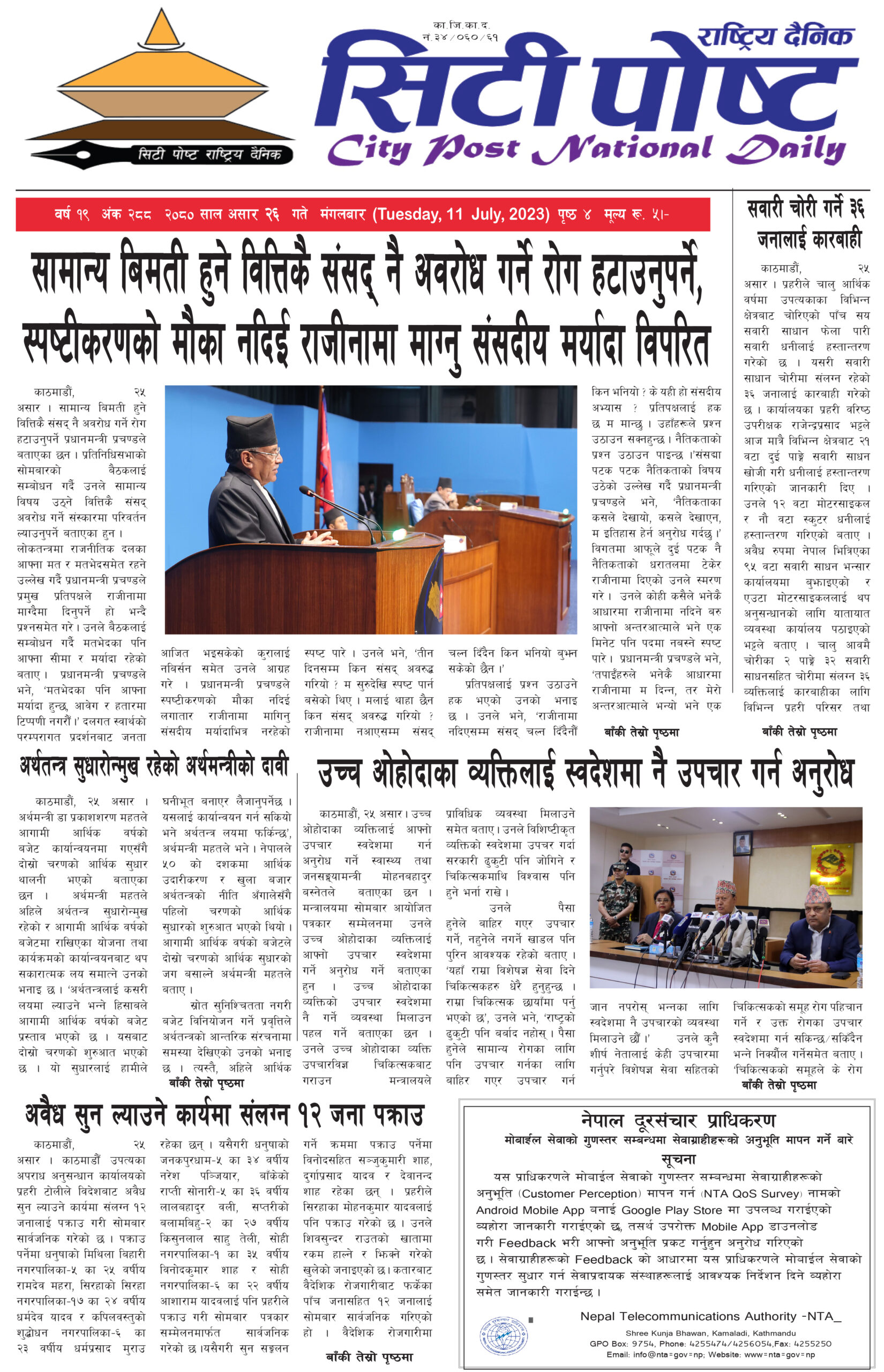 सिटी पोष्ट राष्ट्रिय दैनिक २०८० असार २६