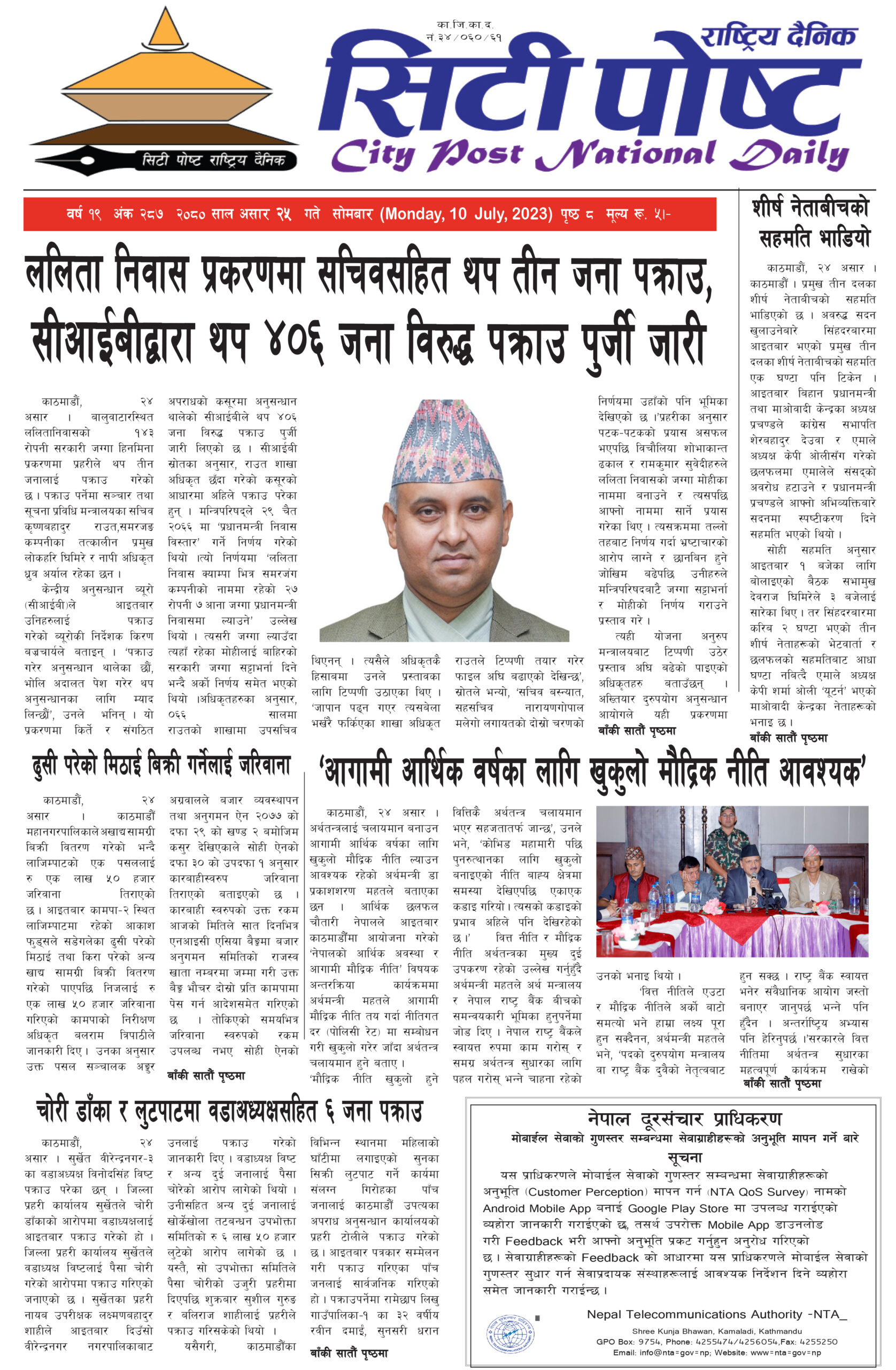 सिटी पोष्ट राष्ट्रिय दैनीक २०८० साउन २