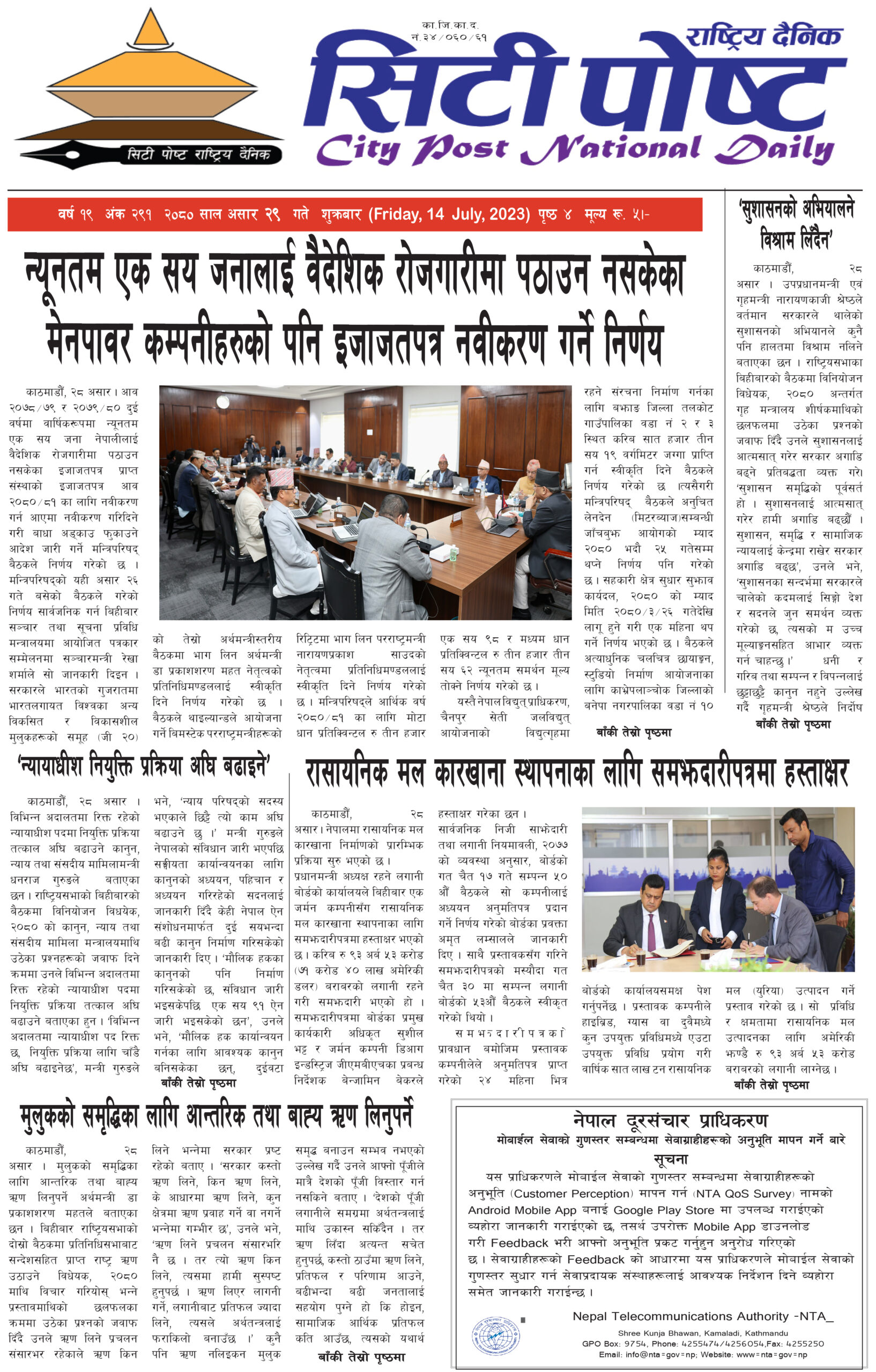 सिटी पोष्ट राष्ट्रिय दैनिक २०८० असार २९