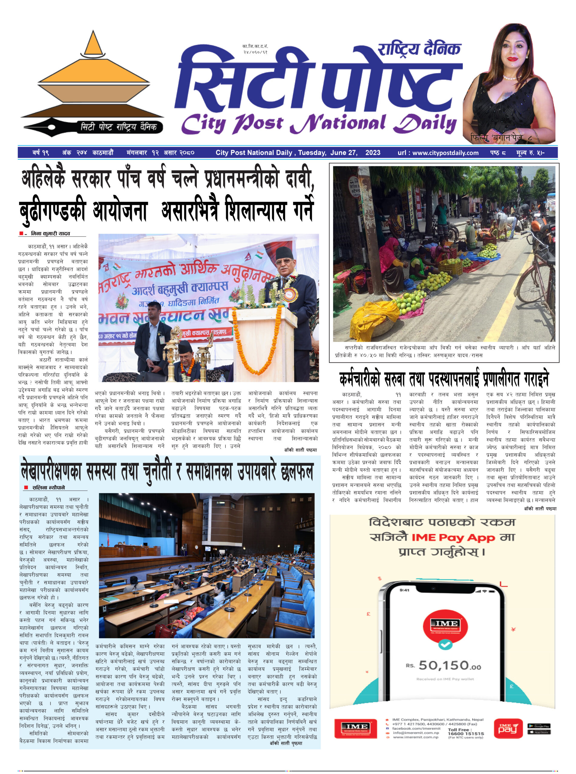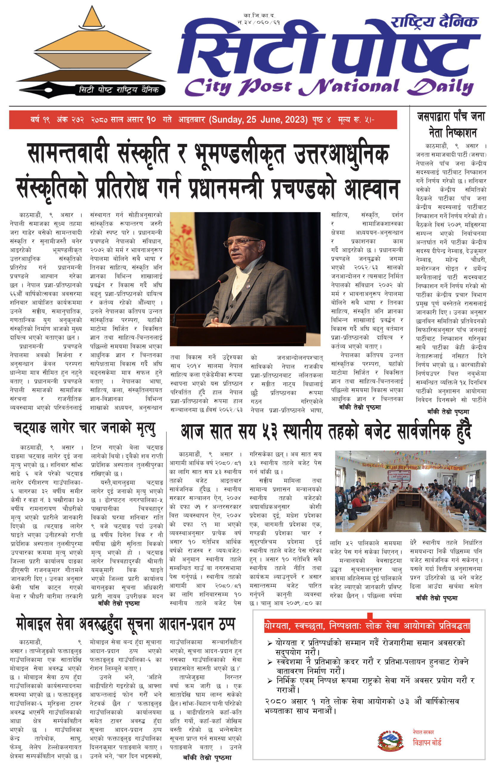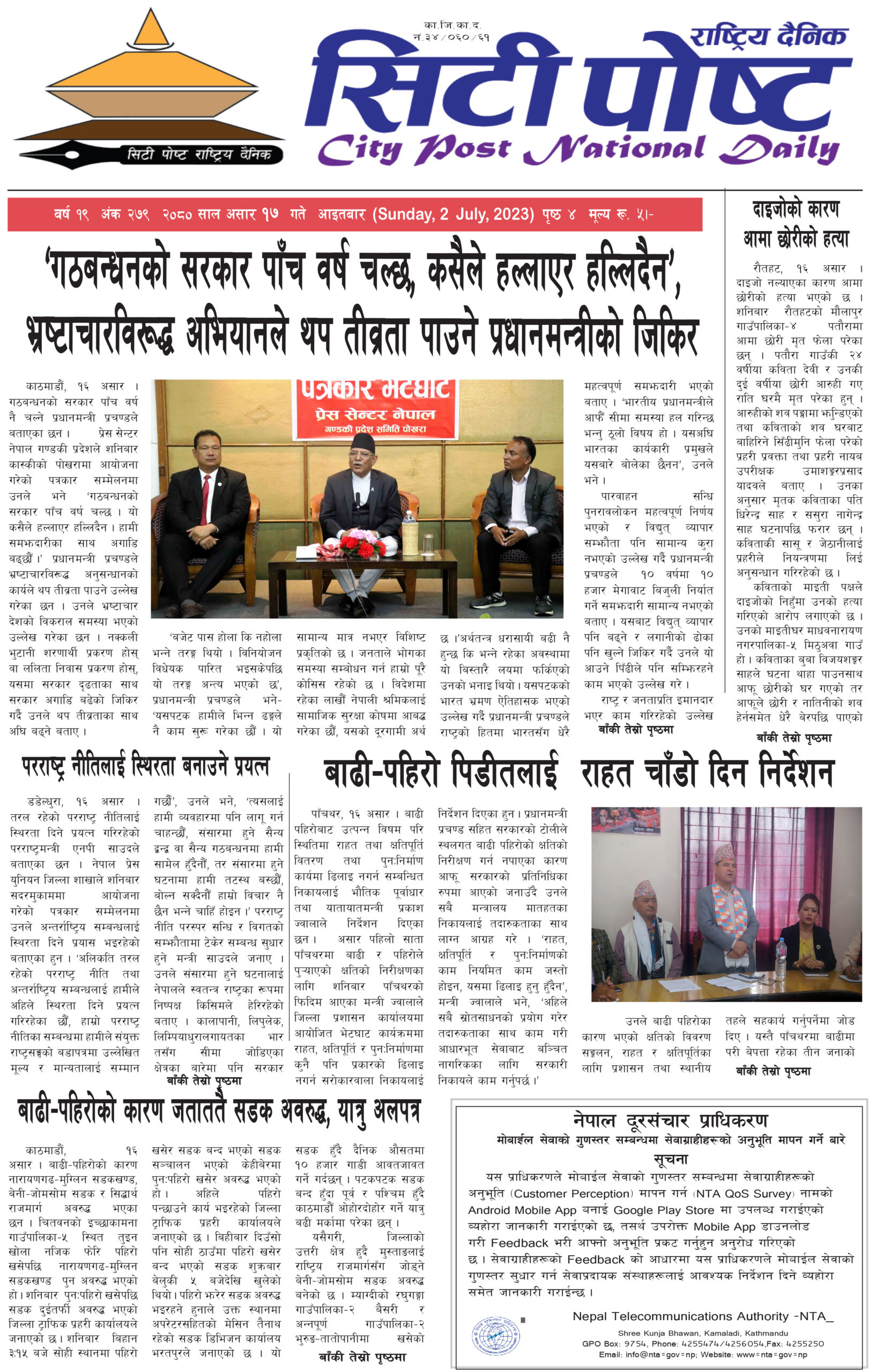 सिटी पोष्ट राष्ट्रिय दैनिक २०८० असार १९