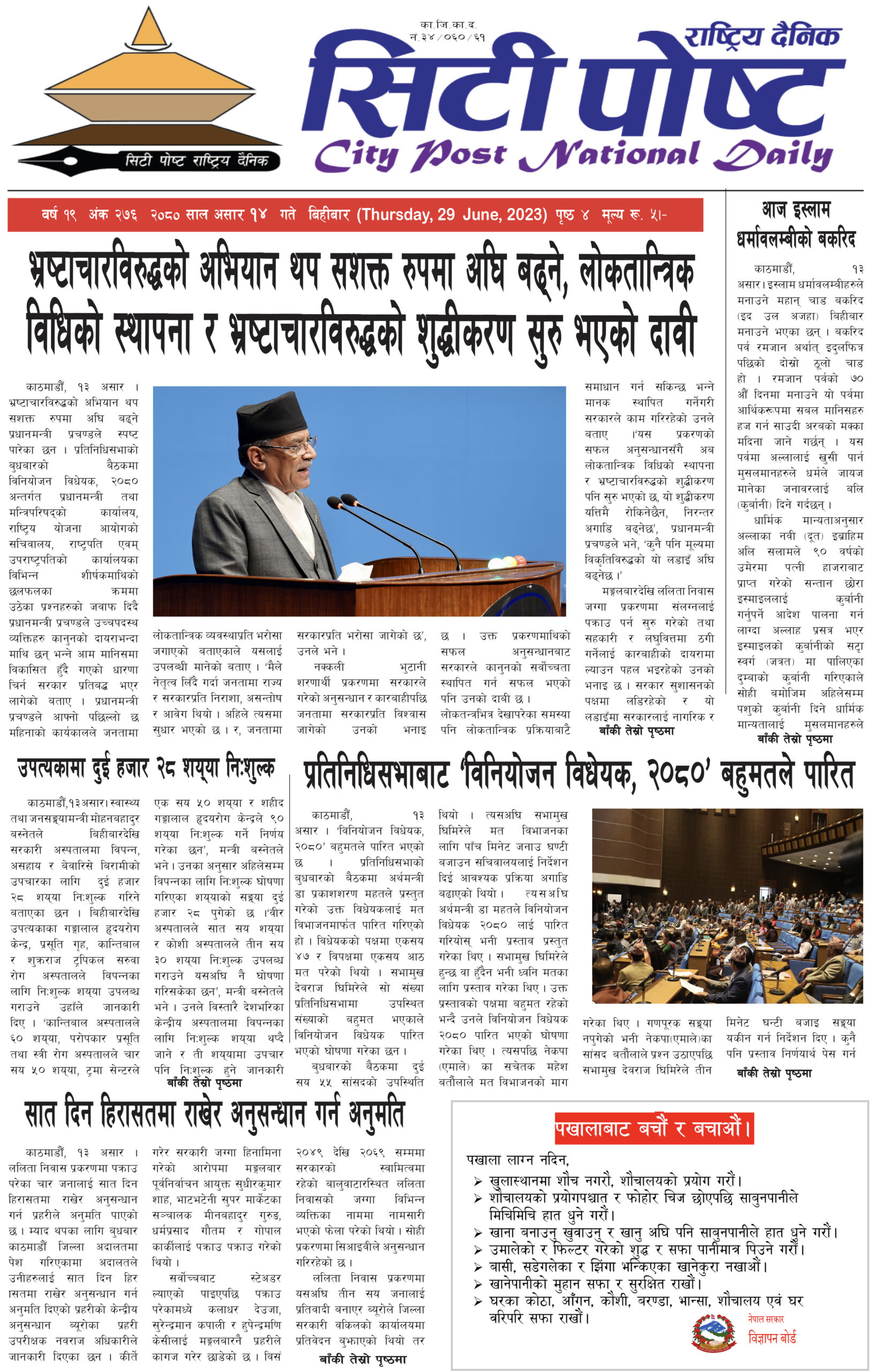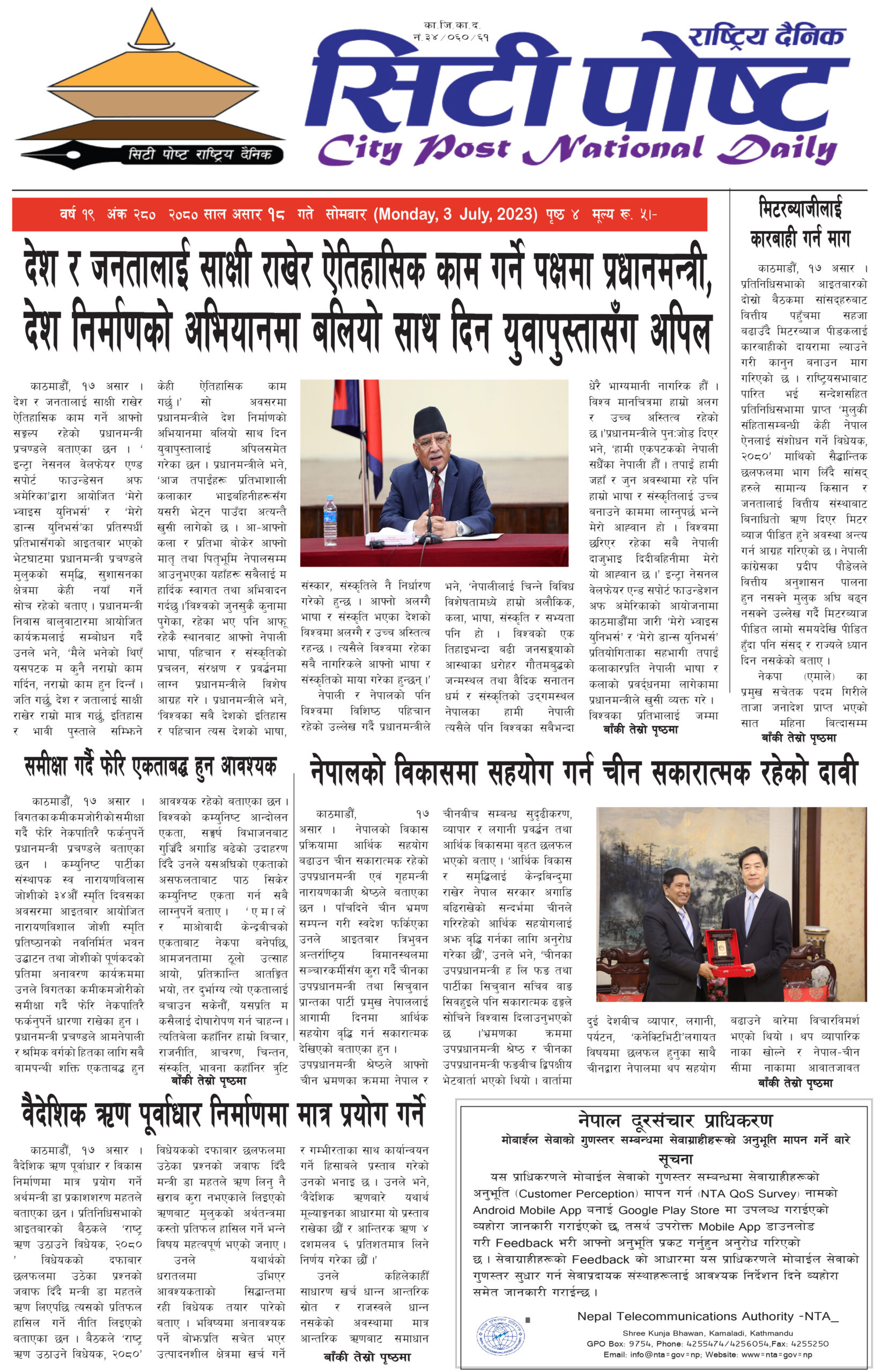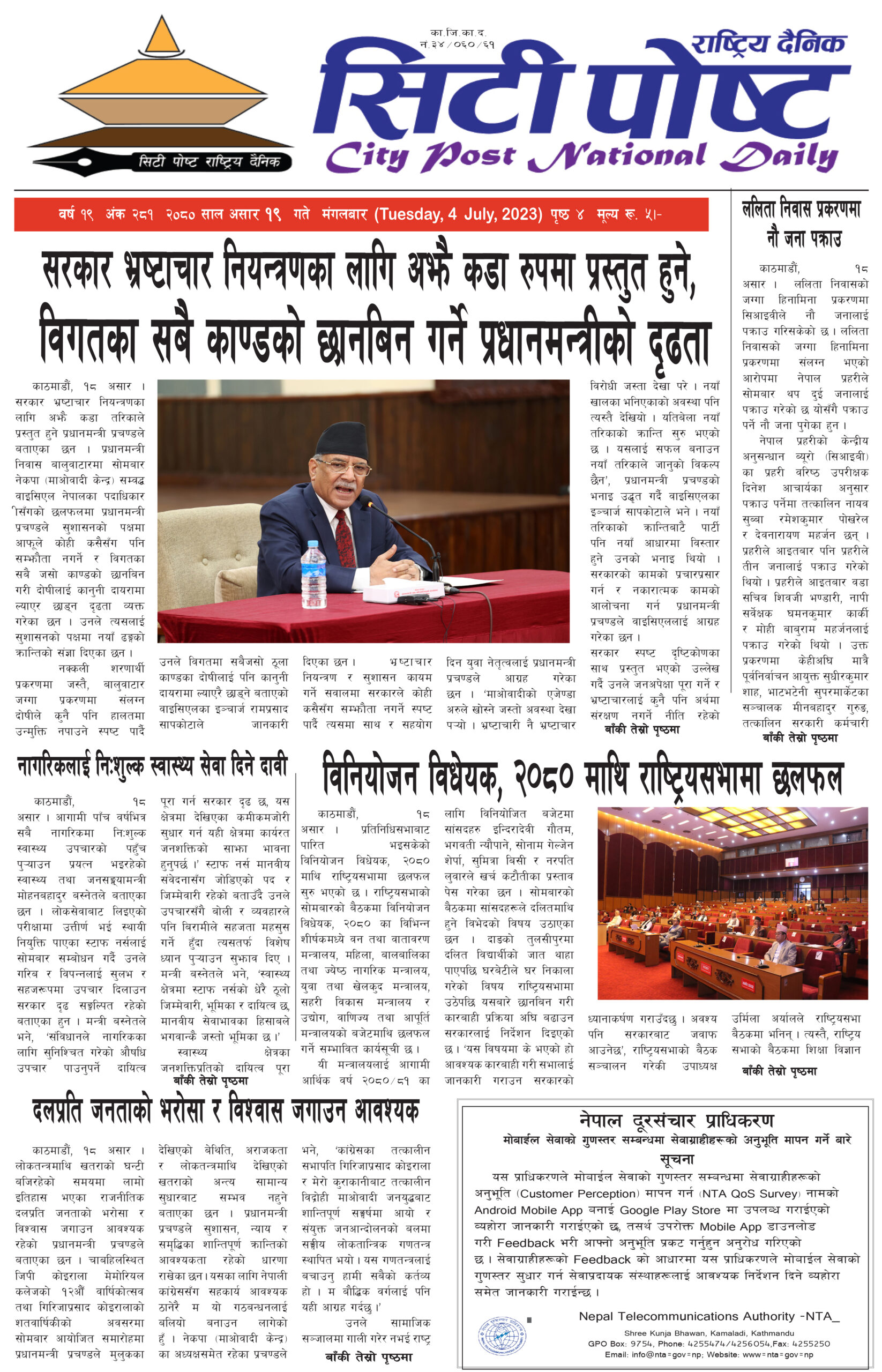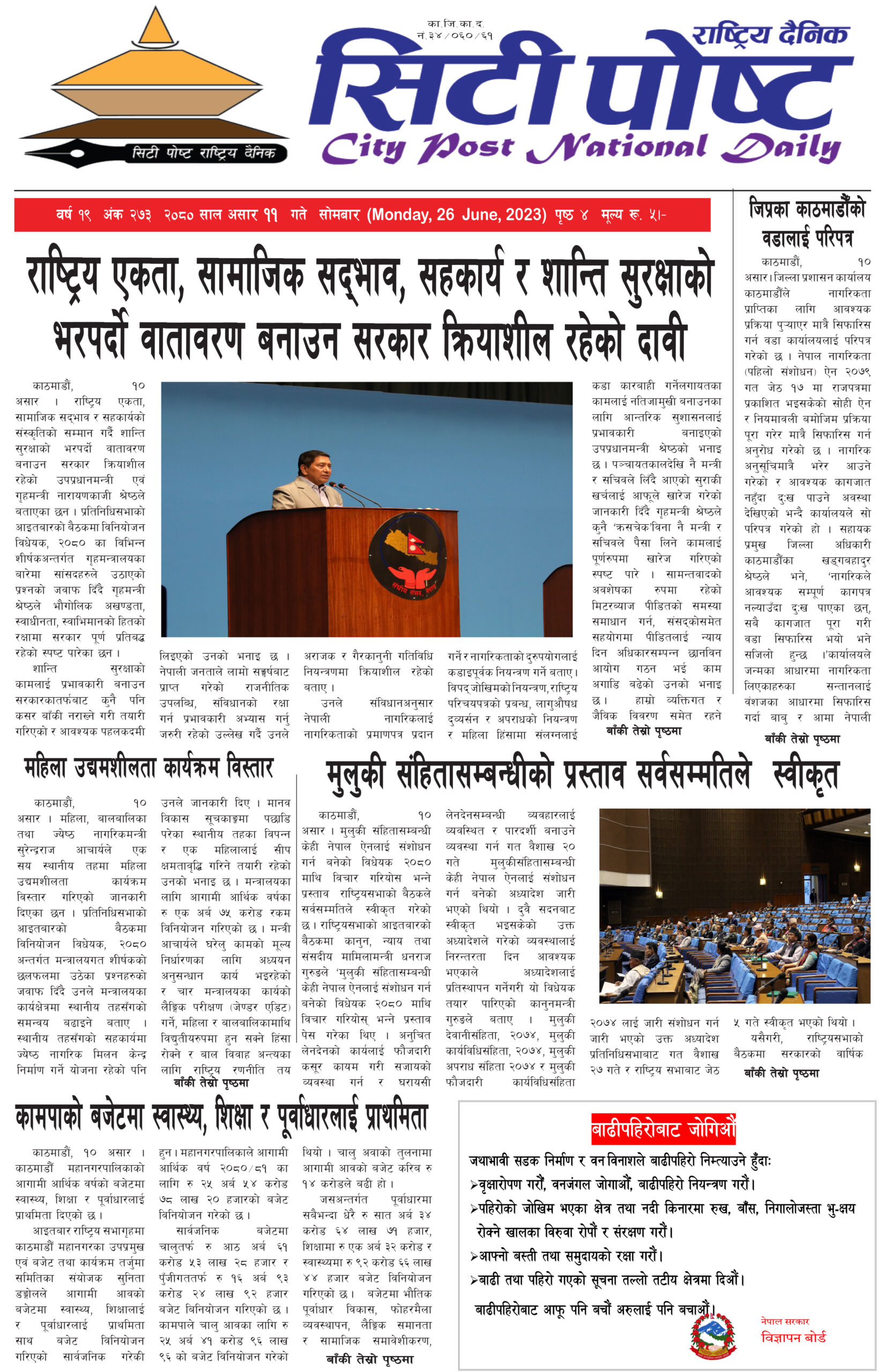 सिटी पोष्ट राष्ट्रिय दैनिक २०८० असार १९