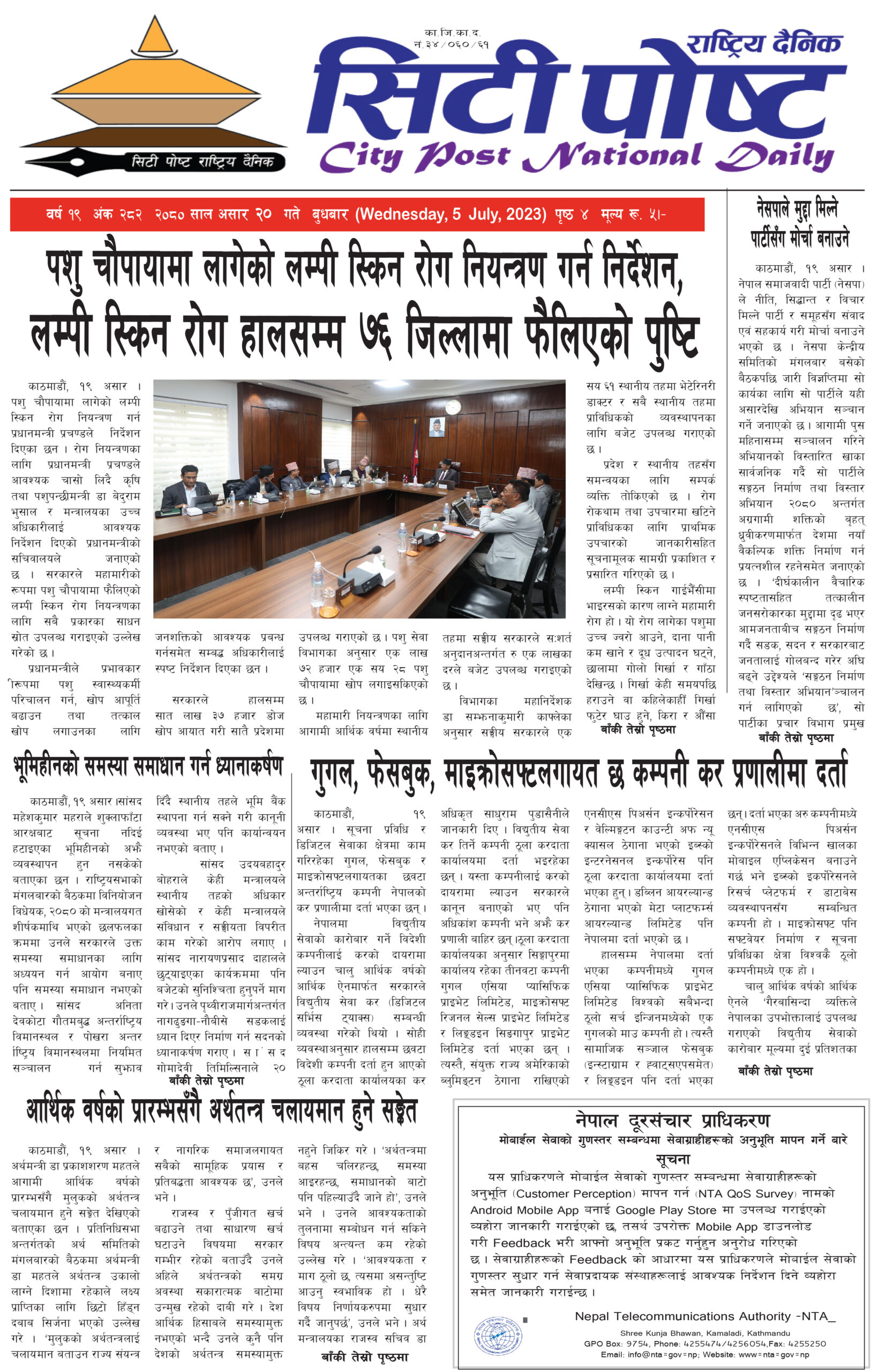 सिटी पोष्ट राष्ट्रिय दैनिक २०८० असार २०