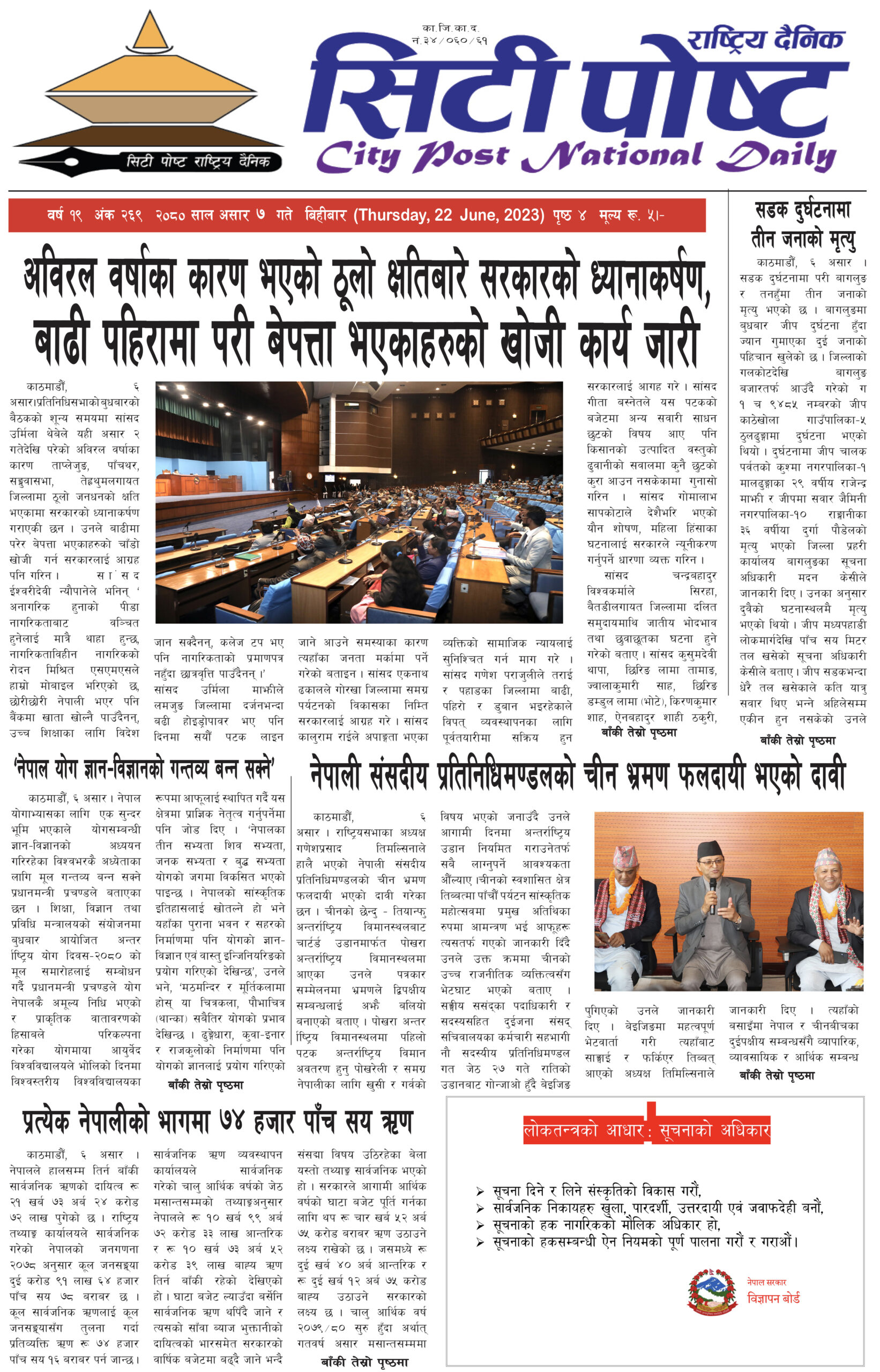 सिटी पोष्ट राष्ट्रिय दैनिक २०८० असार ६