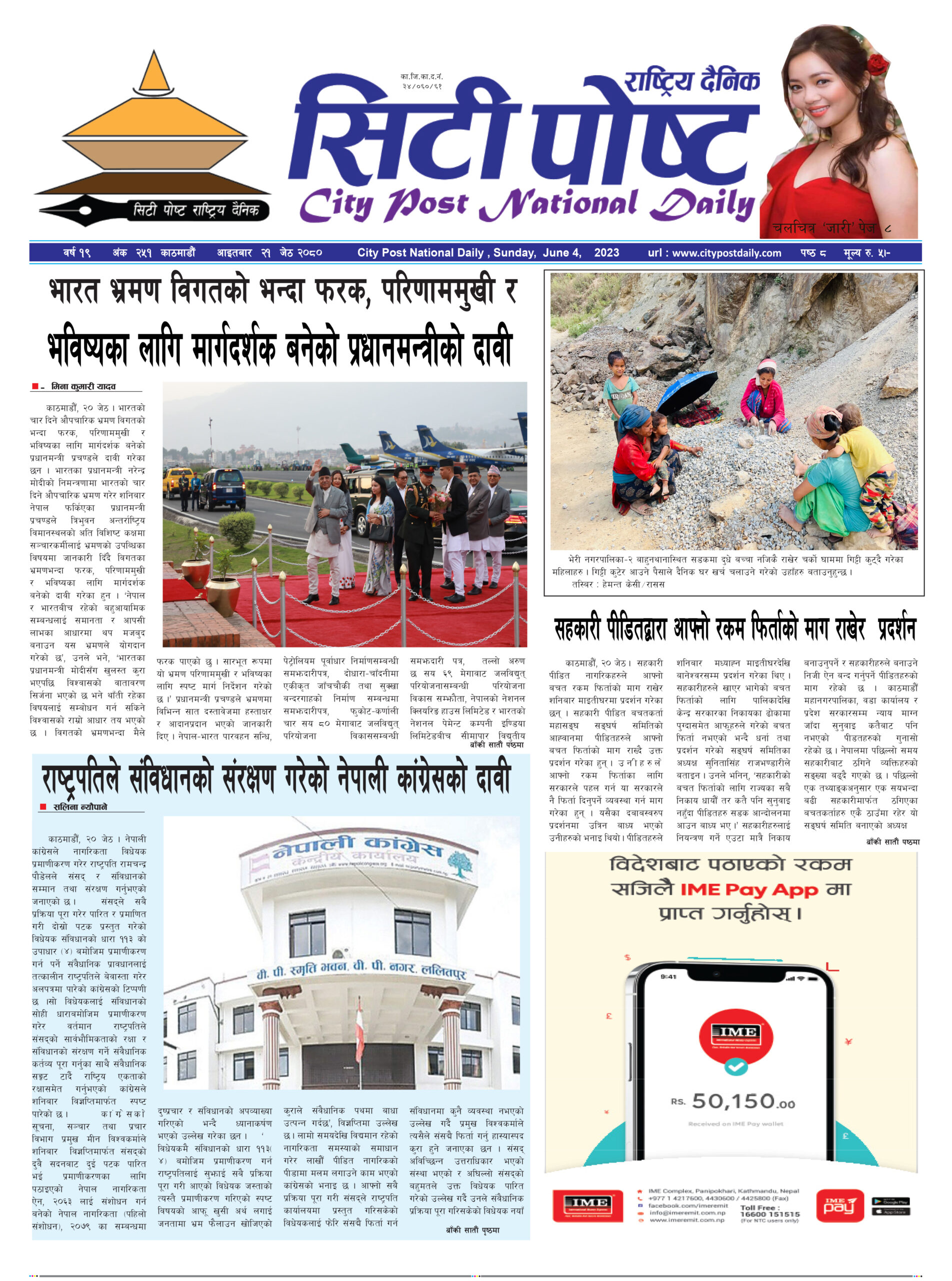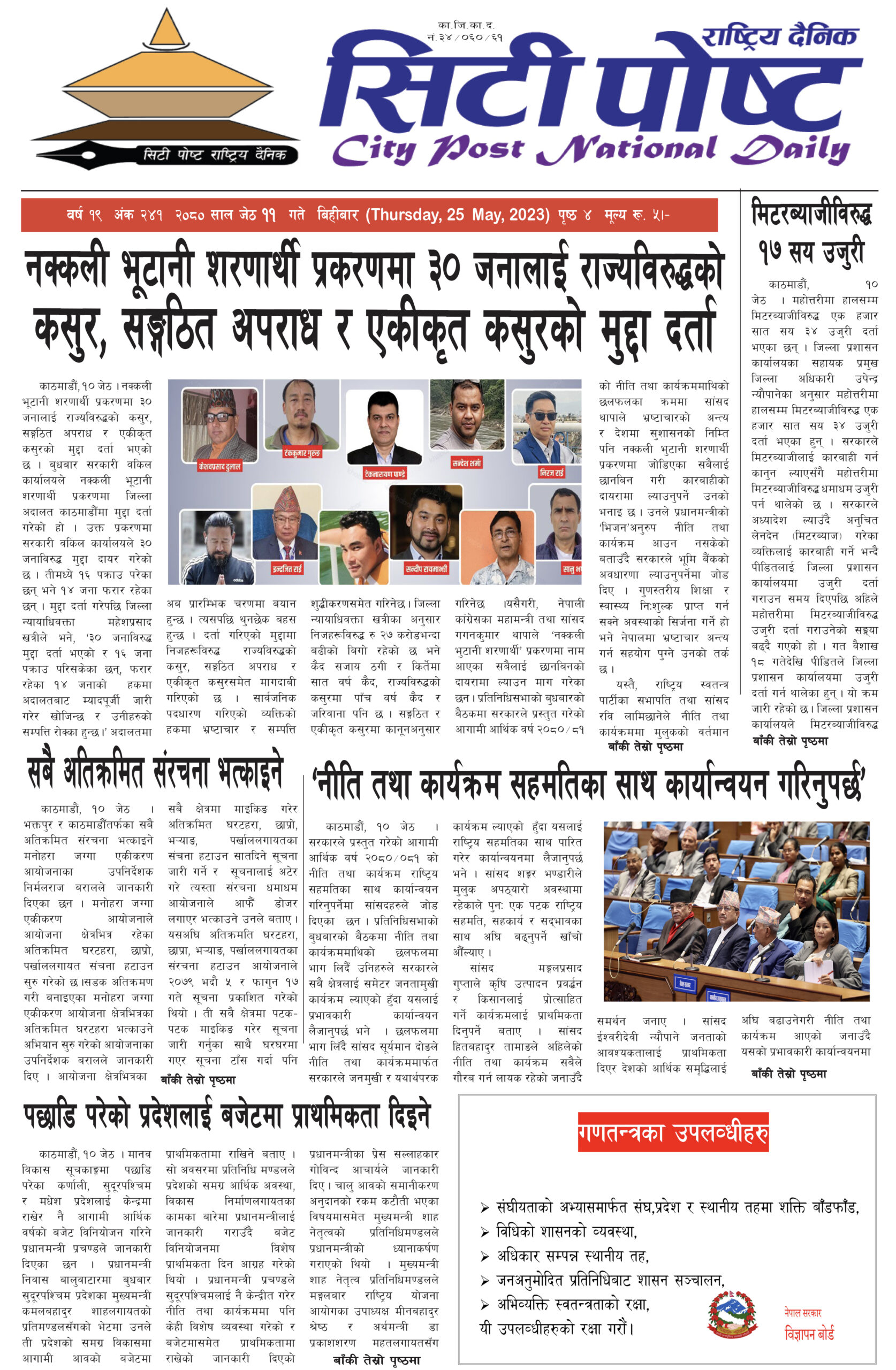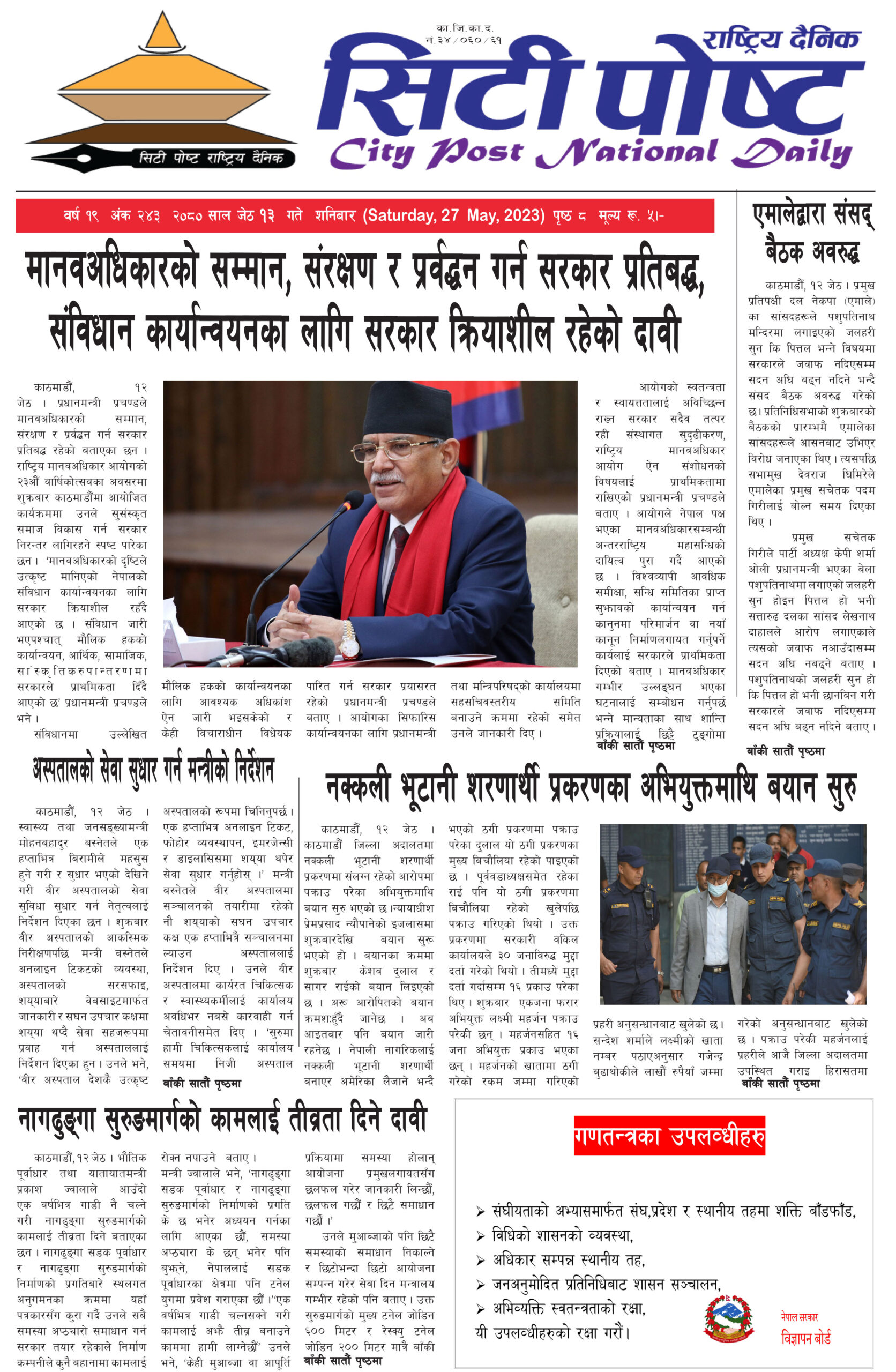 सिटी पोष्ट राष्ट्रिय दैनिक २०८० जेठ १९
