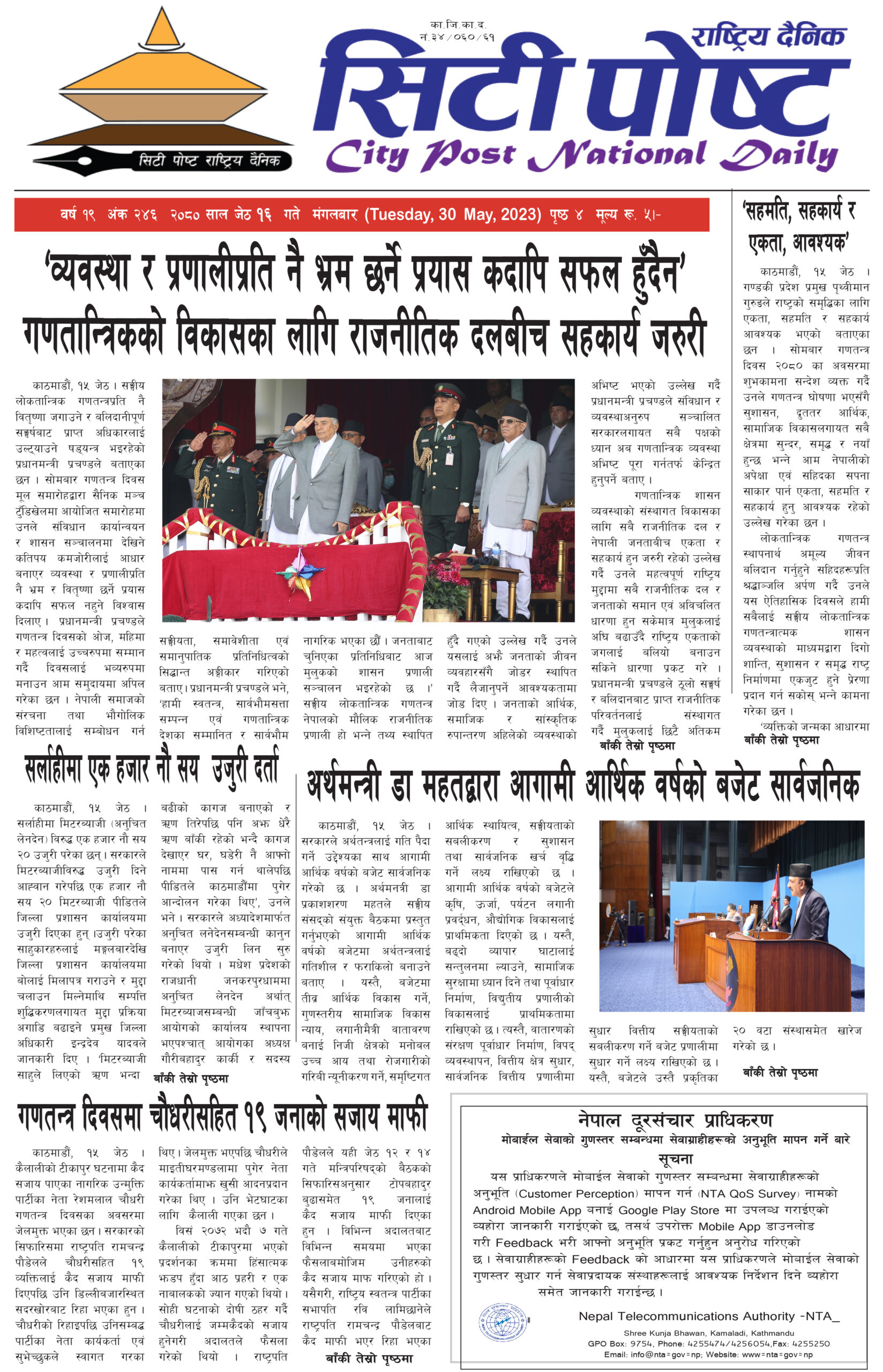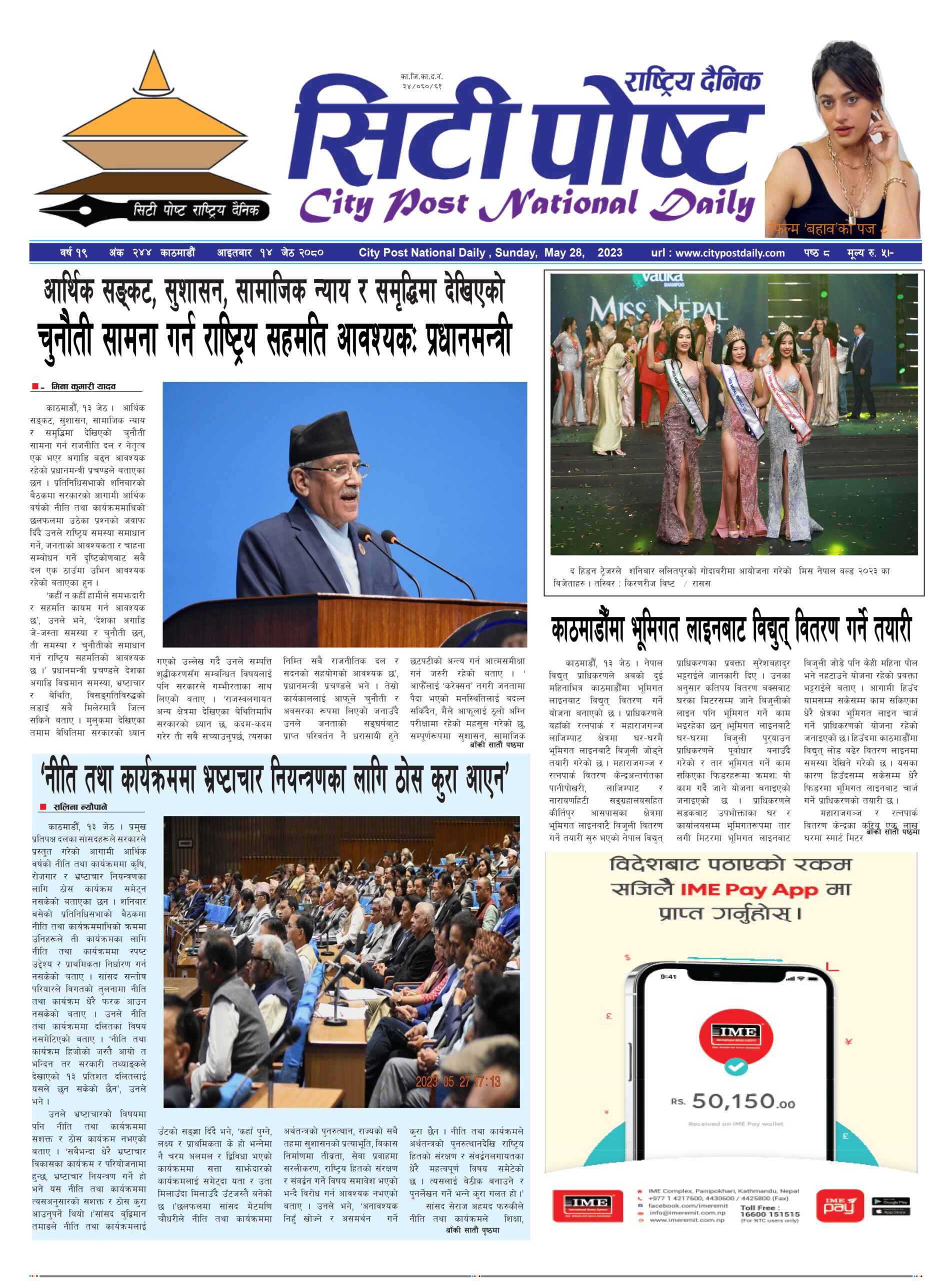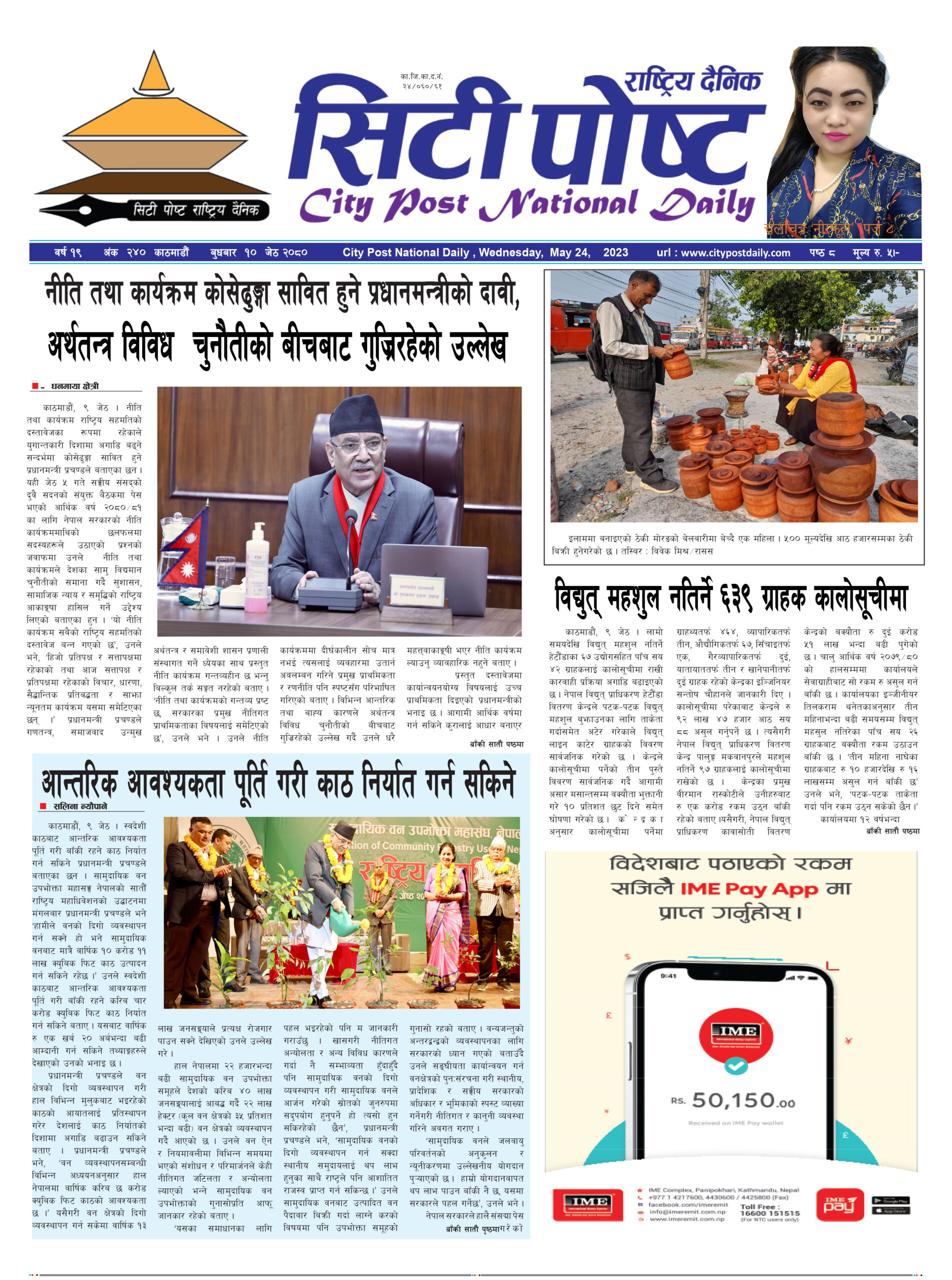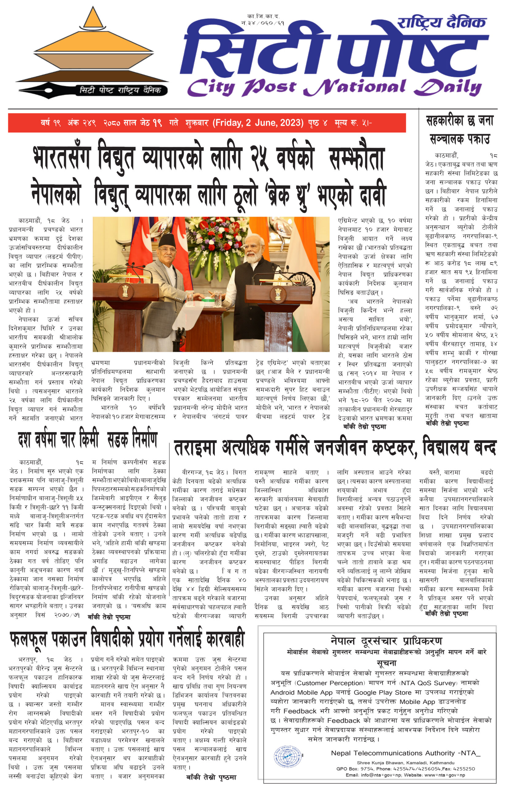 सिटी पोष्ट राष्ट्रिय दैनिक २०८० जेठ १९