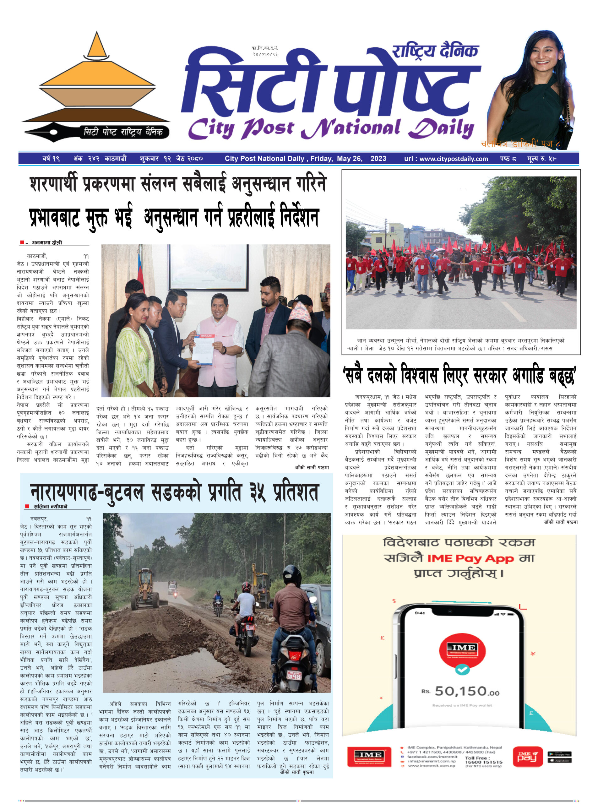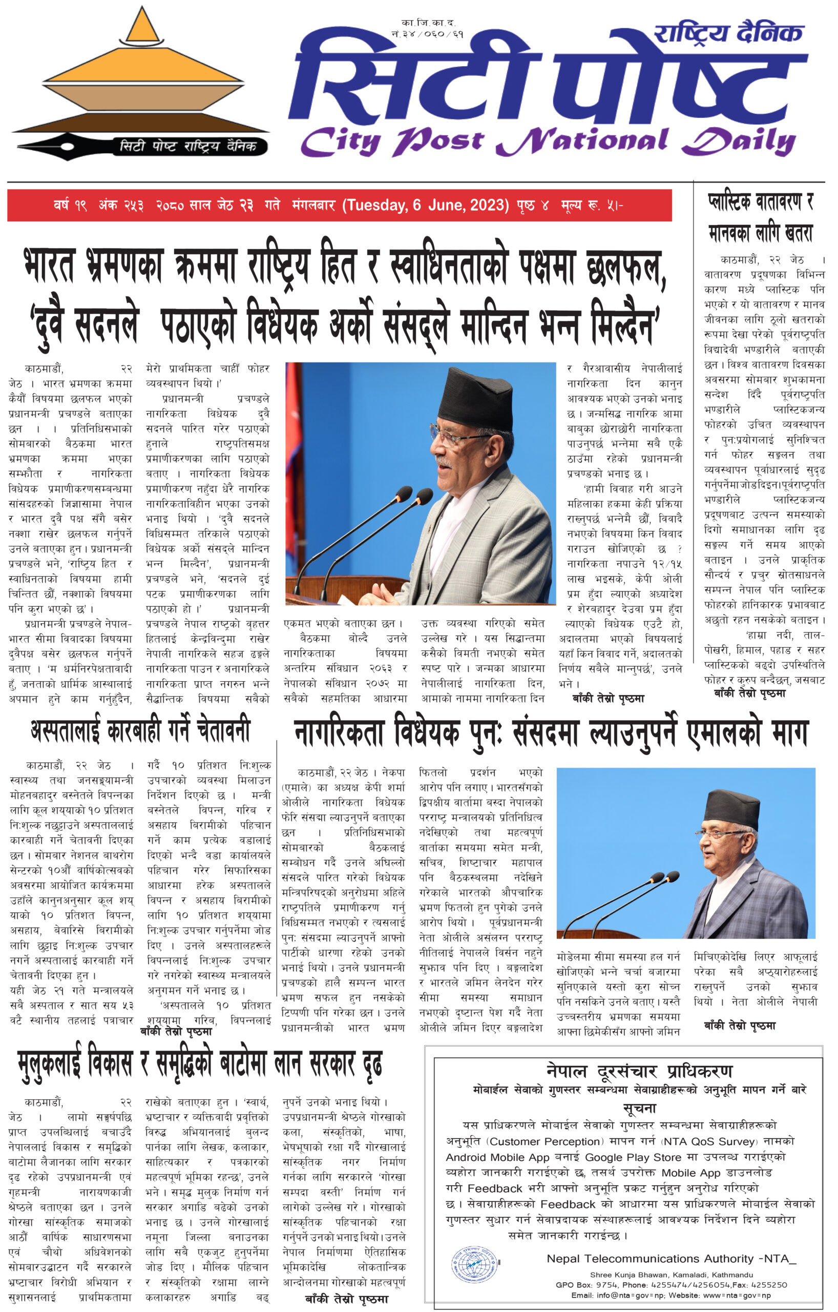 सिटी पोष्ट राष्ट्रिय दैनिक २०८० जेठ २३