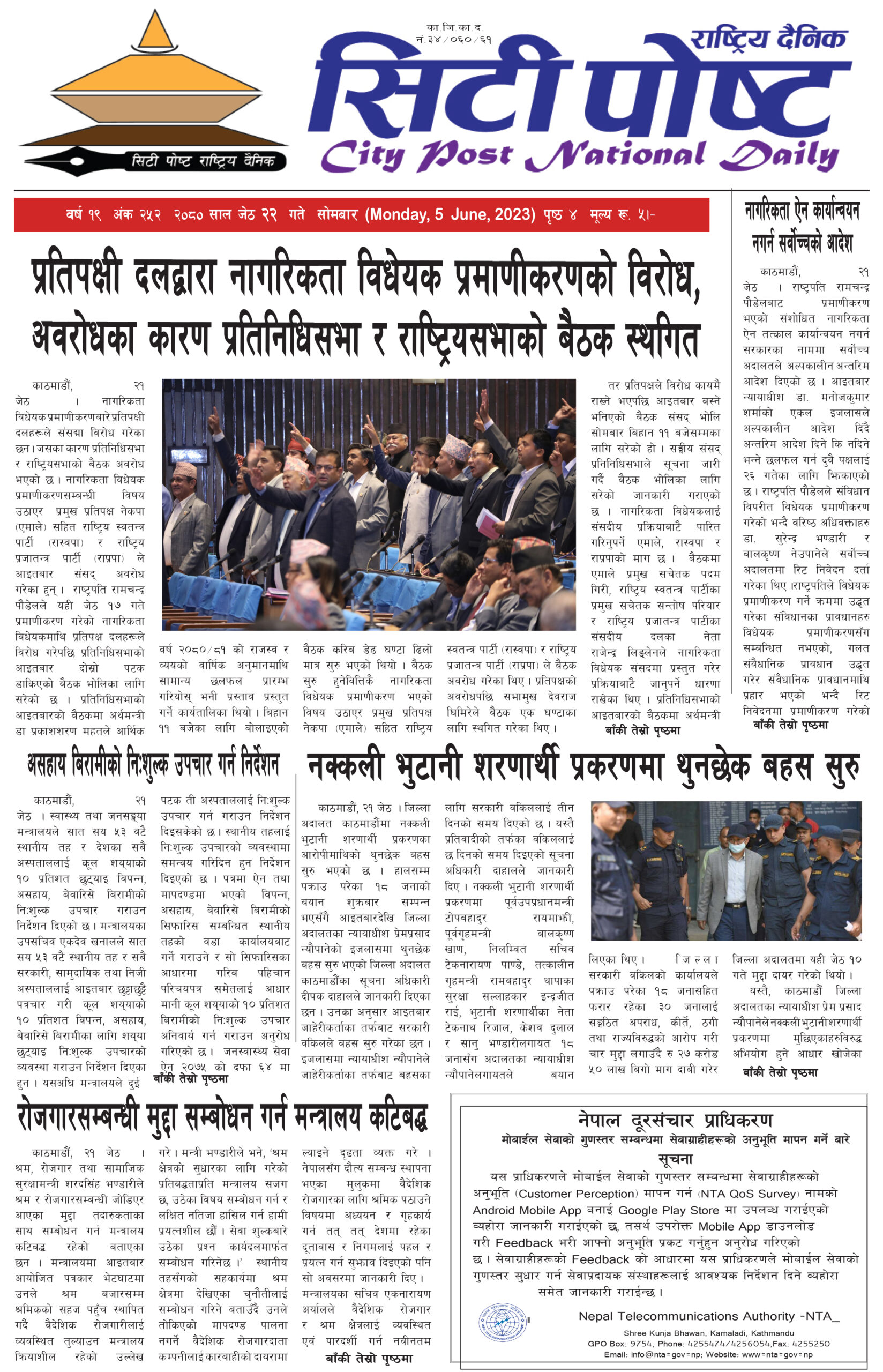 सिटी पोष्ट राष्ट्रिय दैनिक २०८० जेठ २२