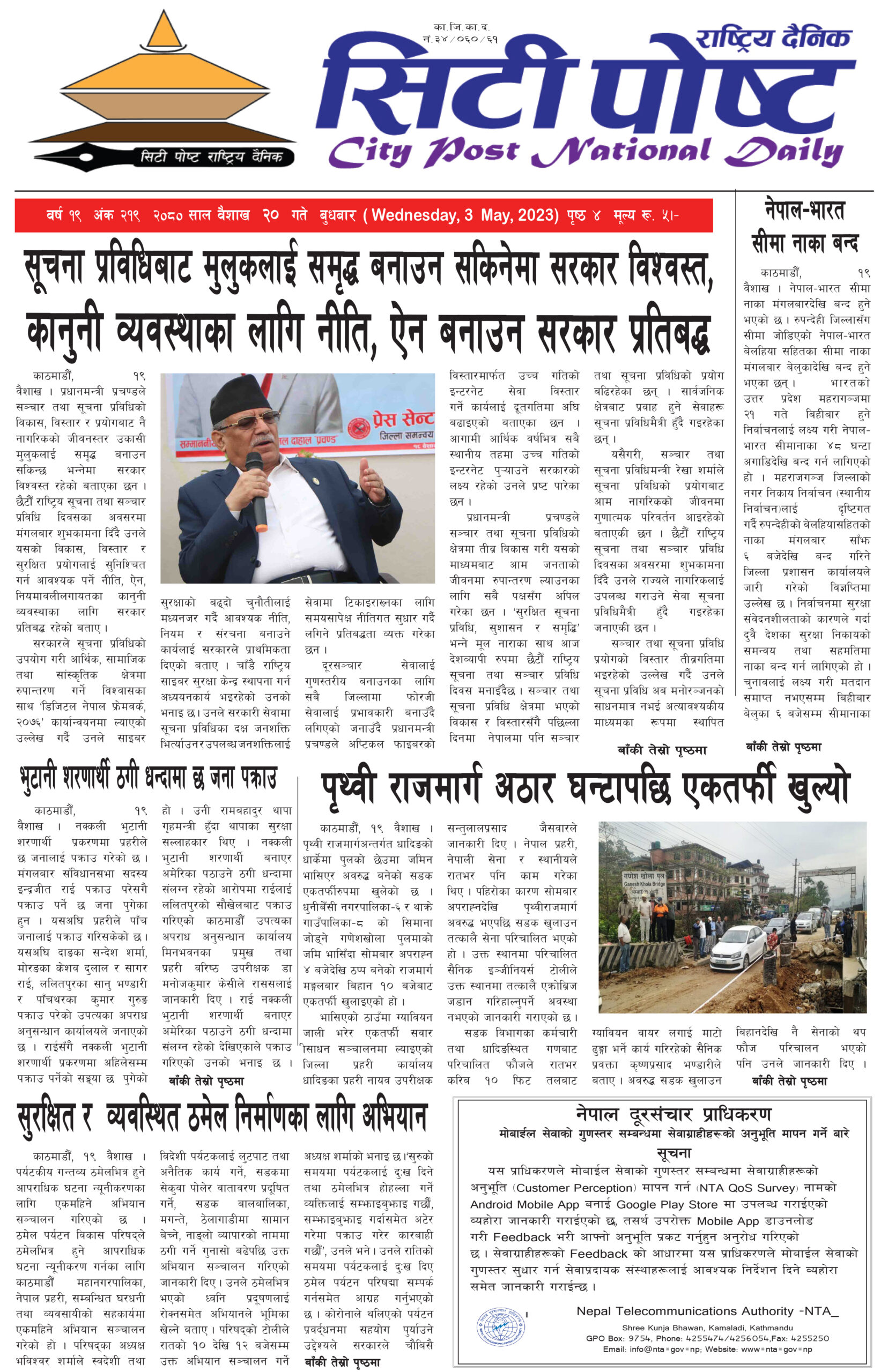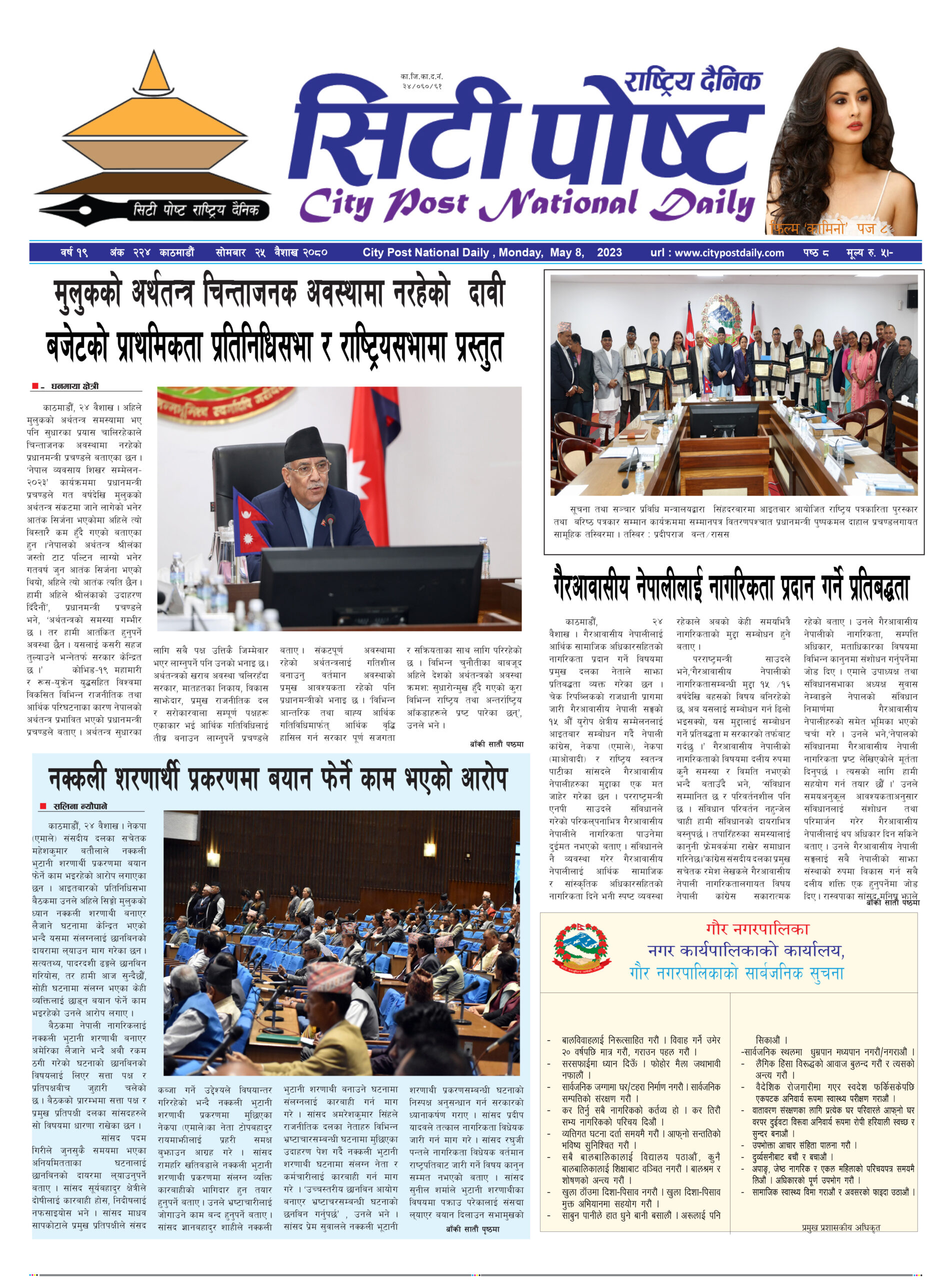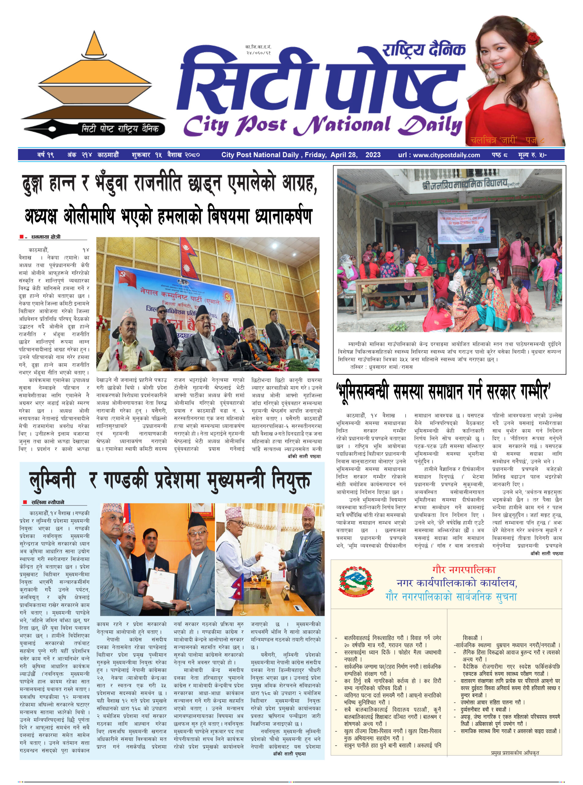 सिटी पोष्ट राष्ट्रिय दैनिक –२०८० बैशाख १९