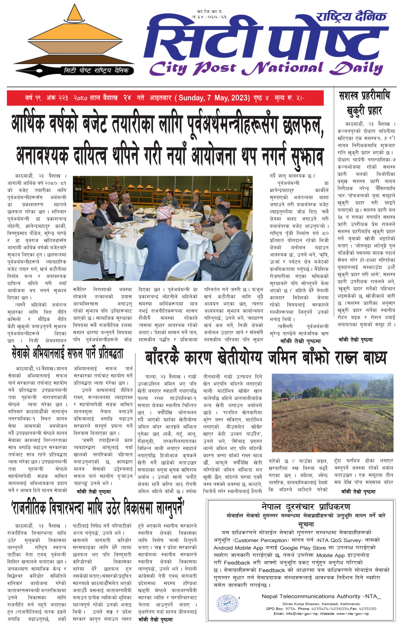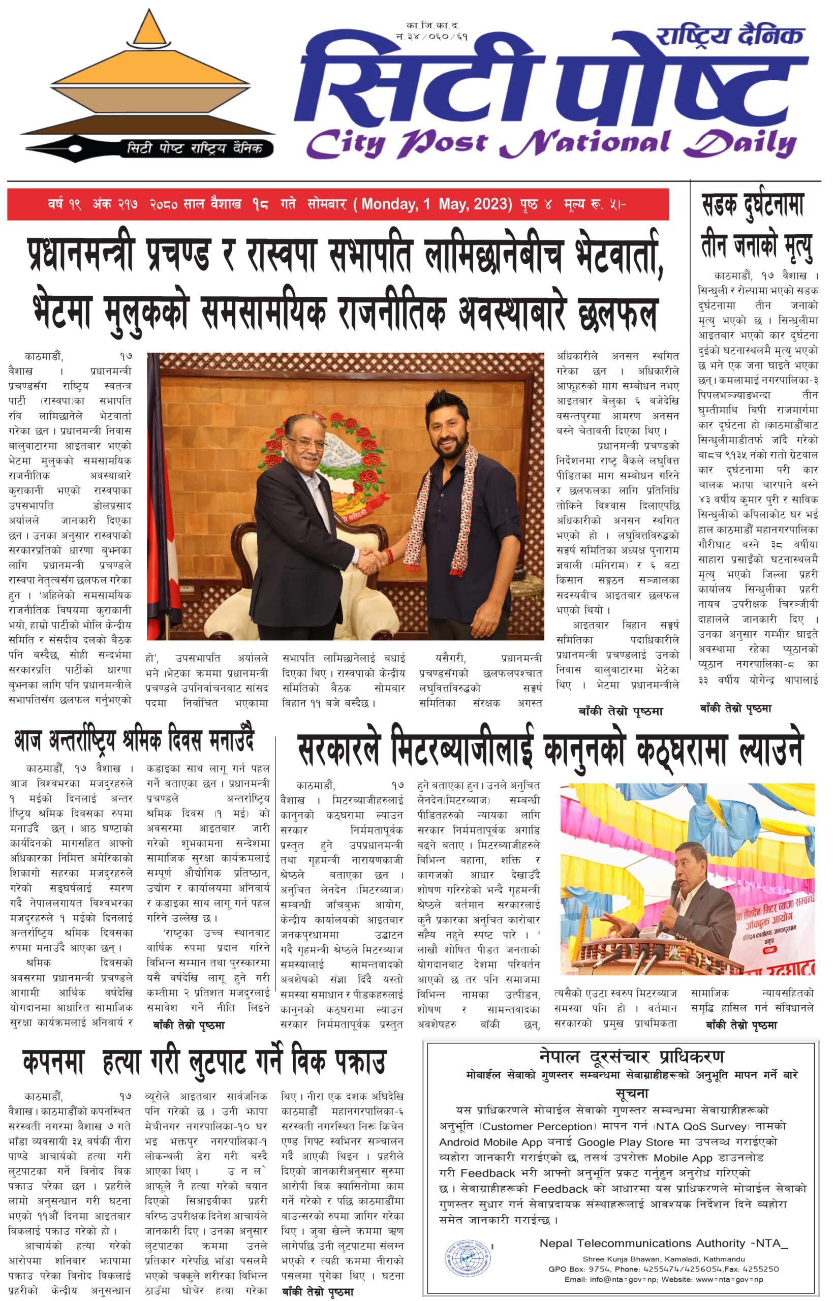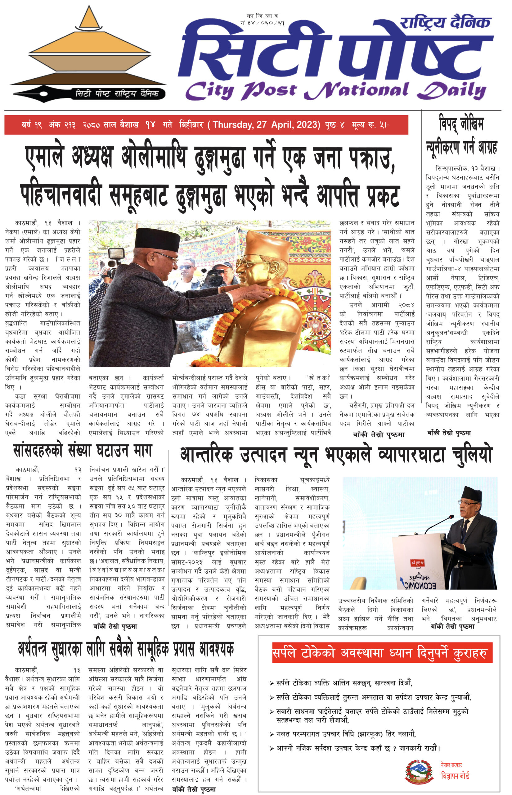 सिटी पोष्ट राष्ट्रिय दैनिक –२०८० बैशाख १९