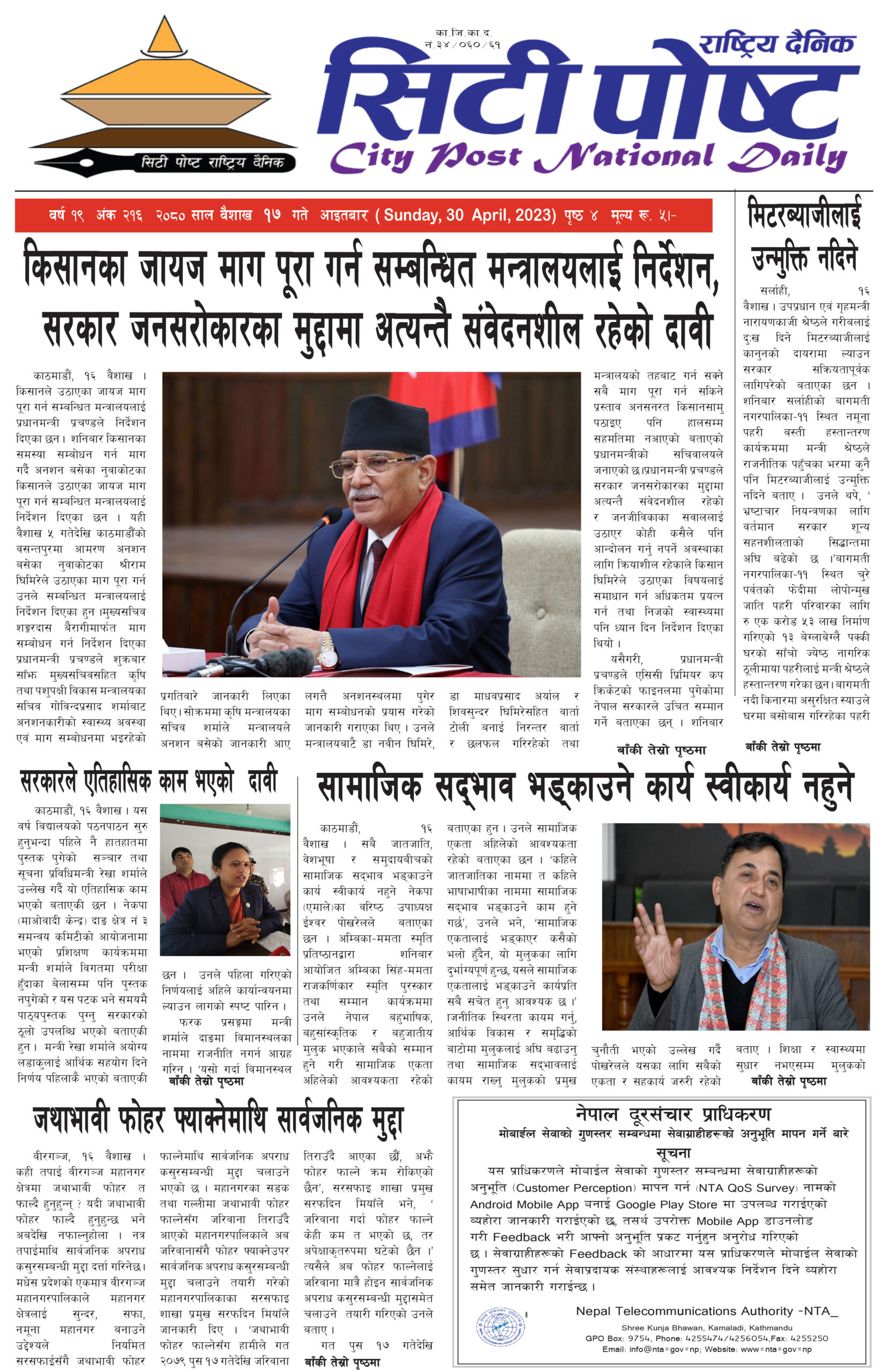 सिटी पोष्ट राष्ट्रिय दैनिक –२०८० बैशाख १६