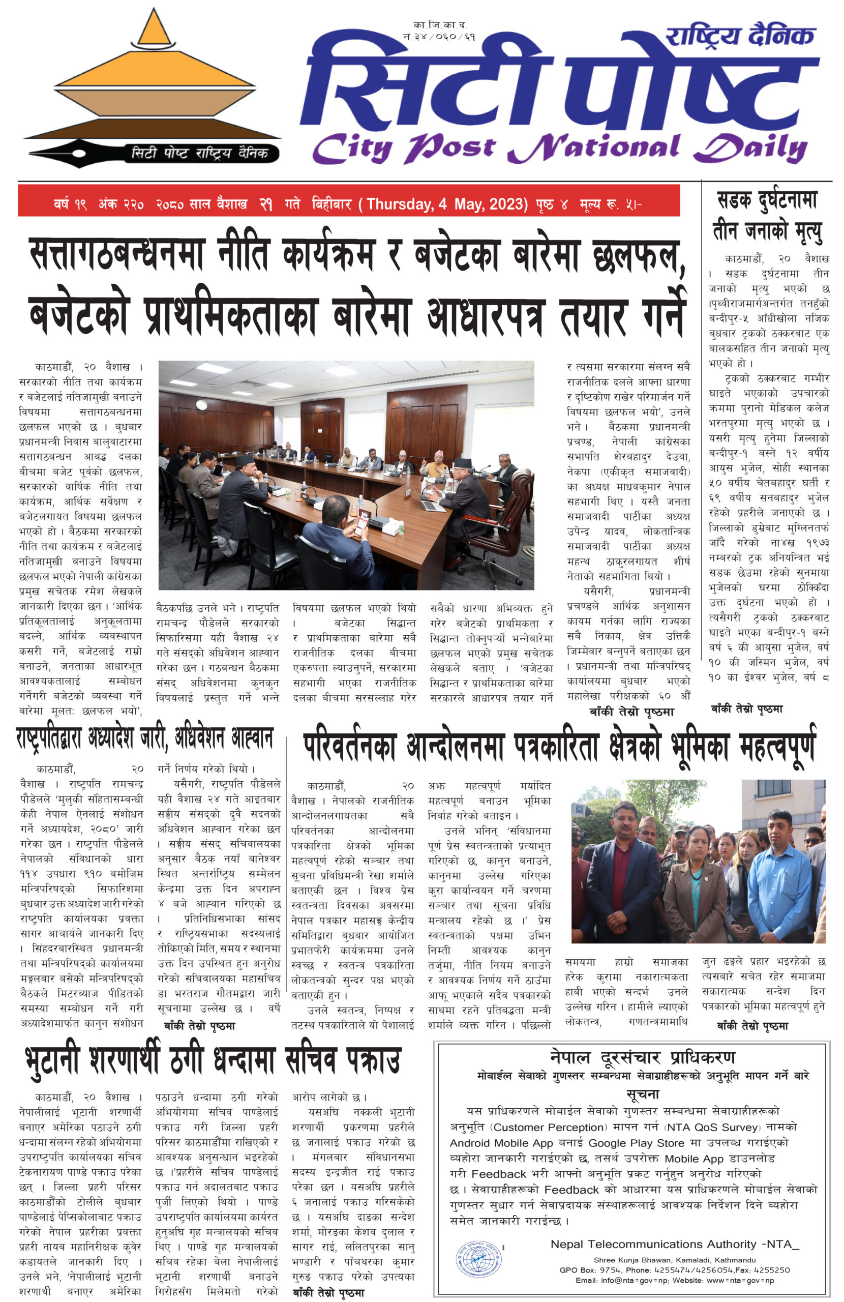 सिटी पोष्ट राष्ट्रिय दैनिक –२०८० बैशाख १८