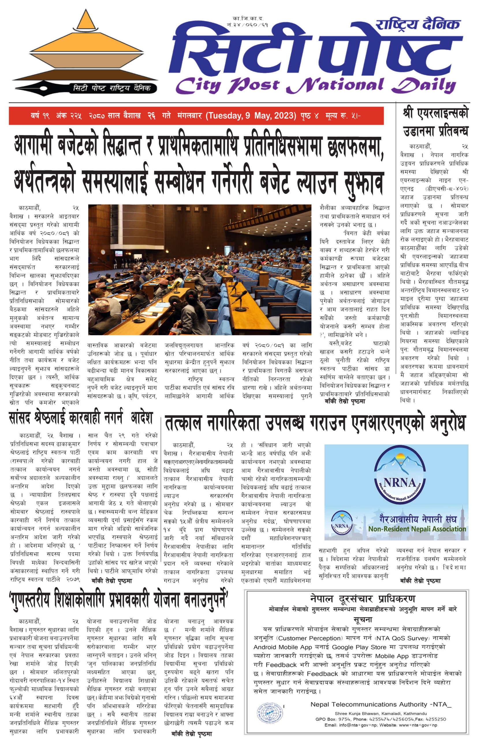 सिटी पोष्ट राष्ट्रिय दैनिक –२०८० बैशाख २६