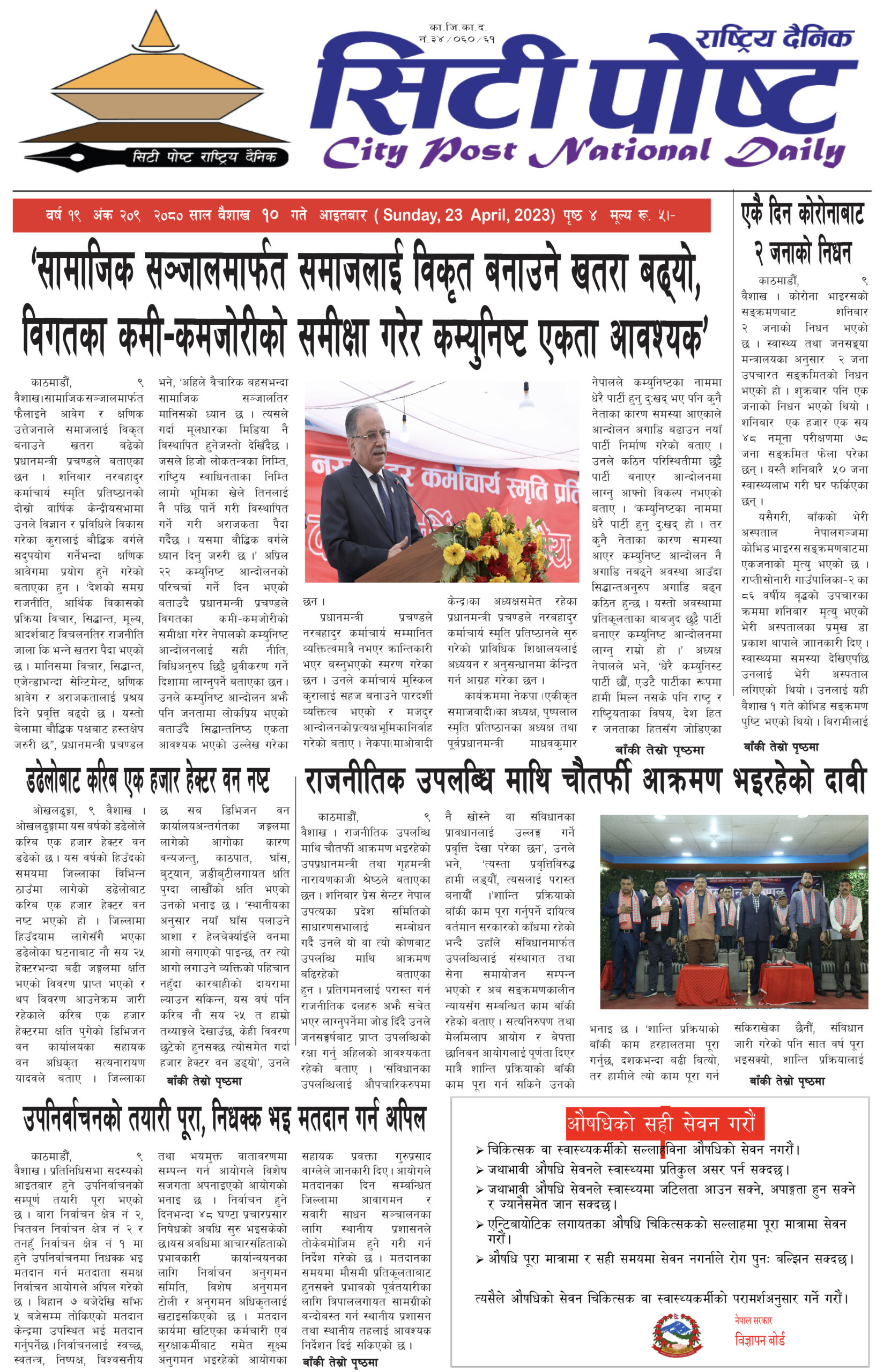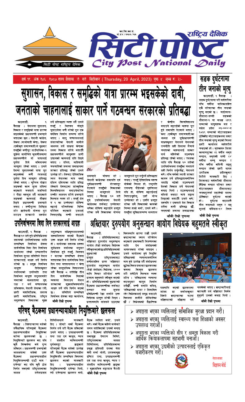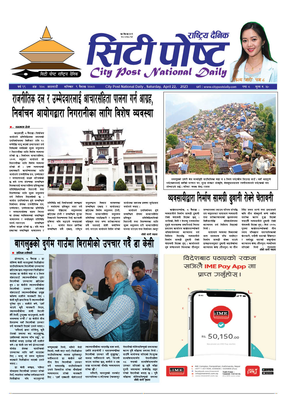 सिटी पोष्ट राष्ट्रिय दैनिक –२०८० बैशाख ४