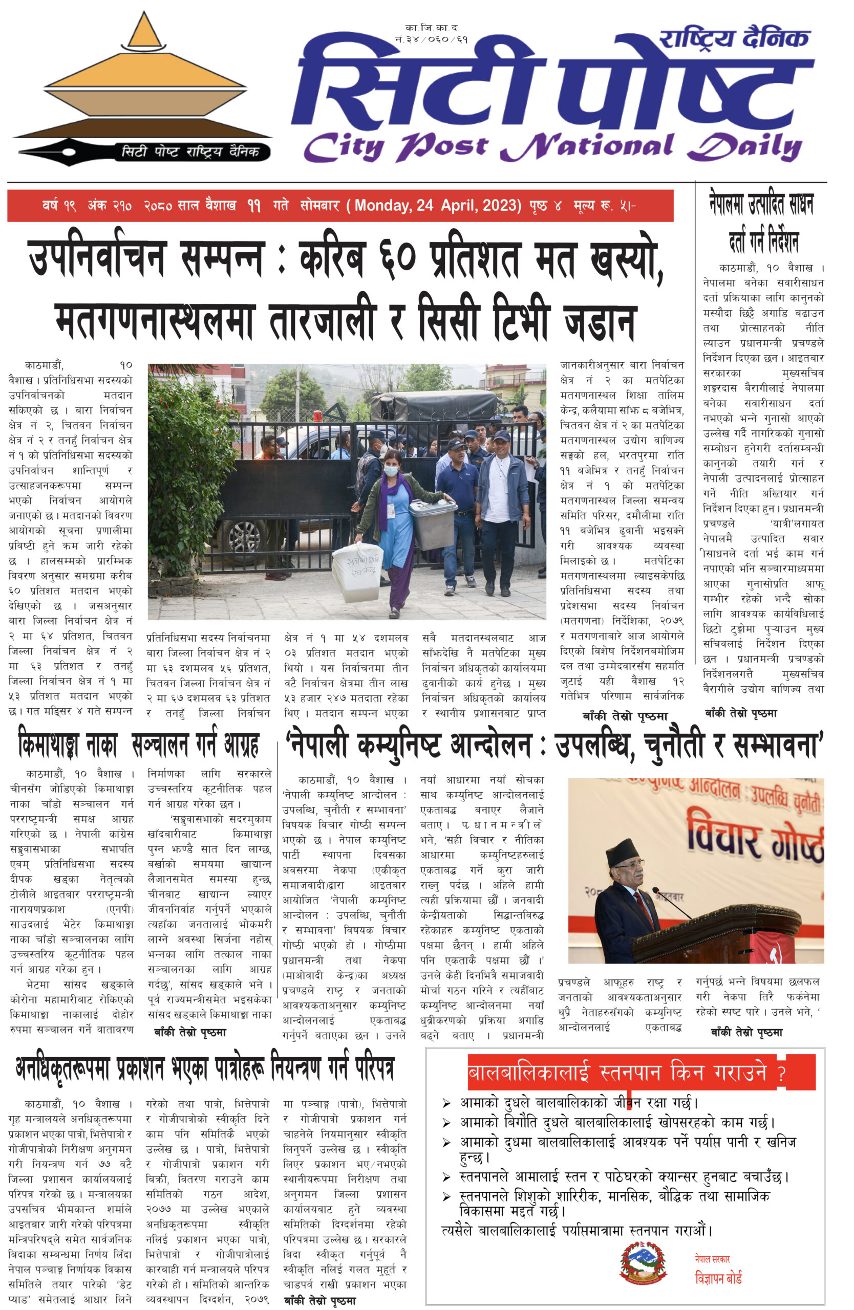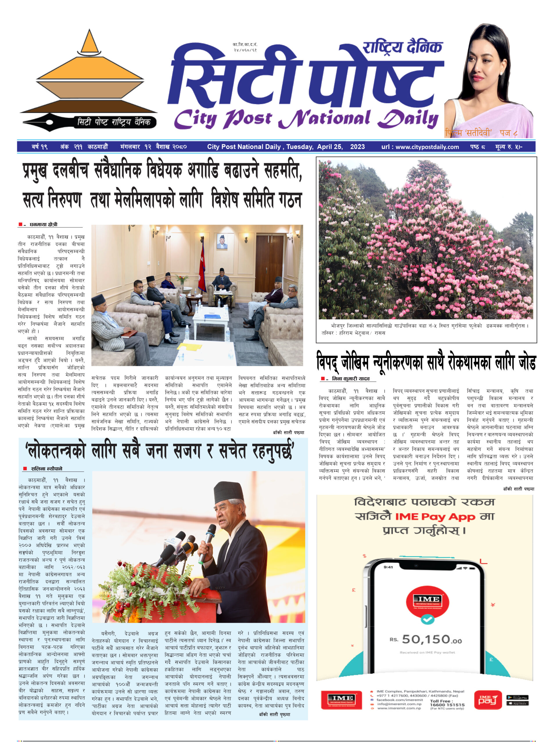 सिटी पोष्ट राष्ट्रिय दैनिक –२०८० बैशाख ११