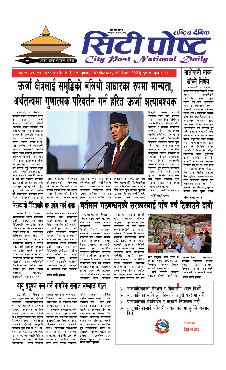 सिटी पोष्ट राष्ट्रिय दैनिक –२०८० बैशाख ६