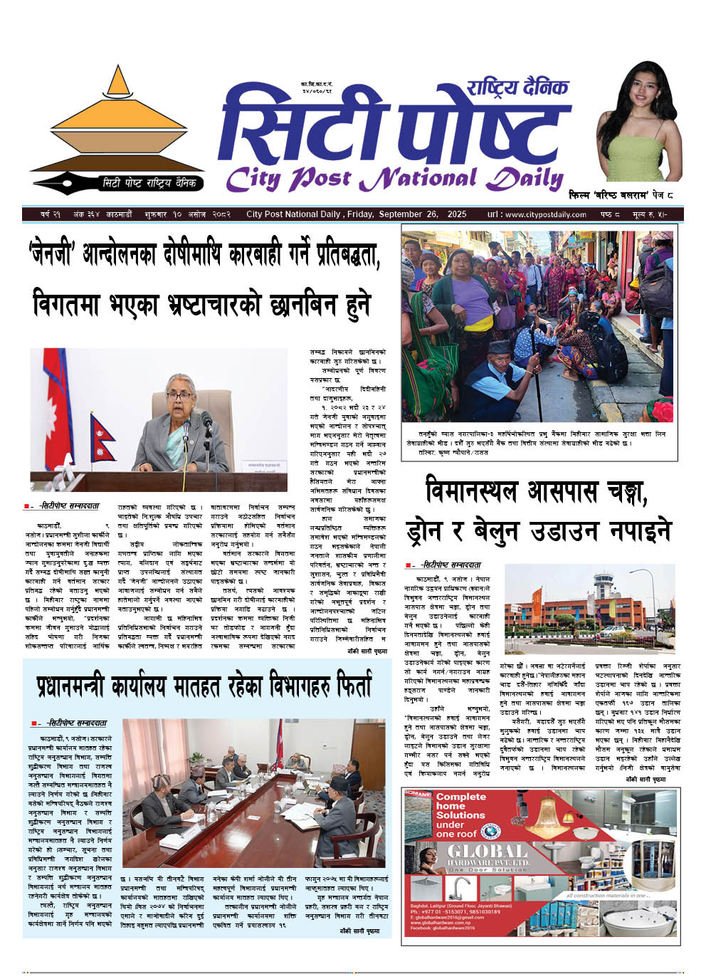 सिटीपोष्ट राष्ट्रिय दैनिक २०८२ असोज ९
