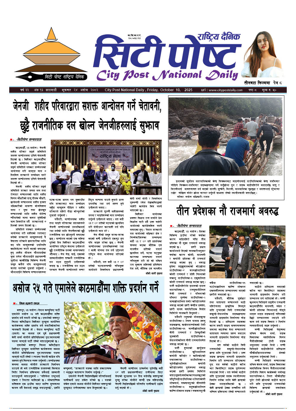 सिटीपोष्ट राष्ट्रिय दैनिक २०८२ असोज १०